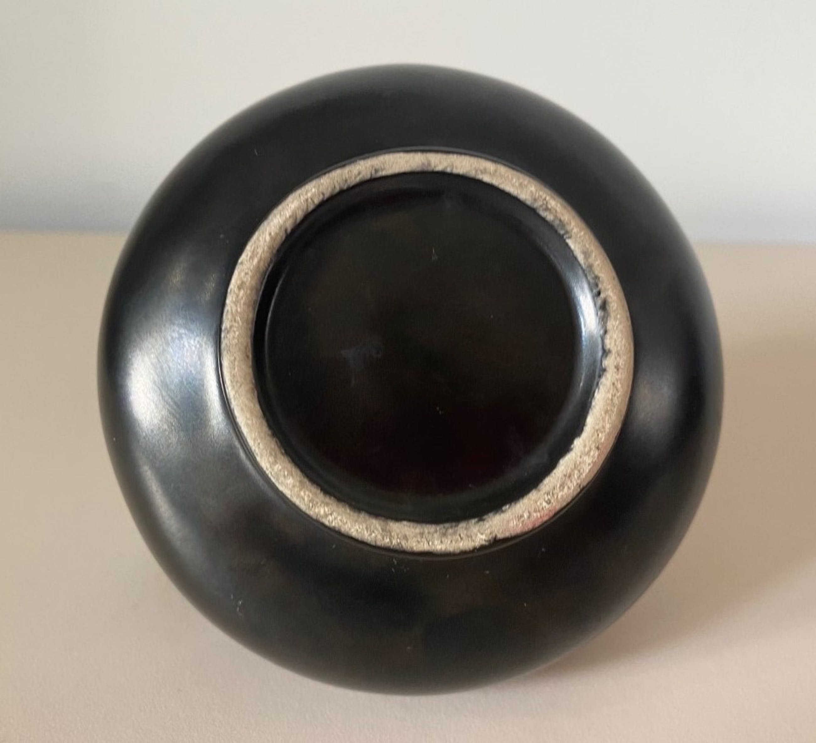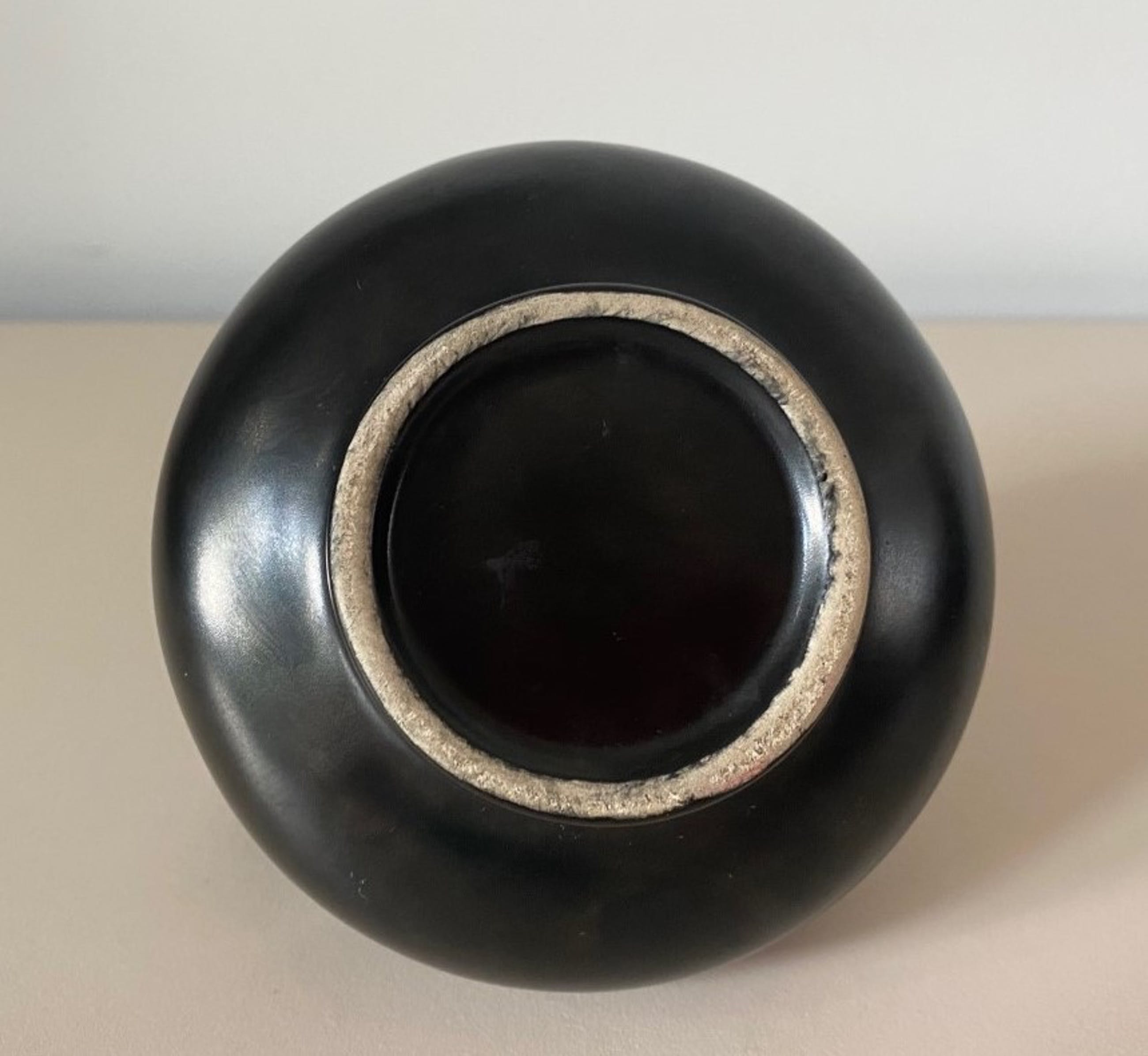 Mat zwart platelen kannetje of vaasje model 133 van plateelbakkerij Zenith uit Gouda. In perfecte conditie, maar niet gemerkt.