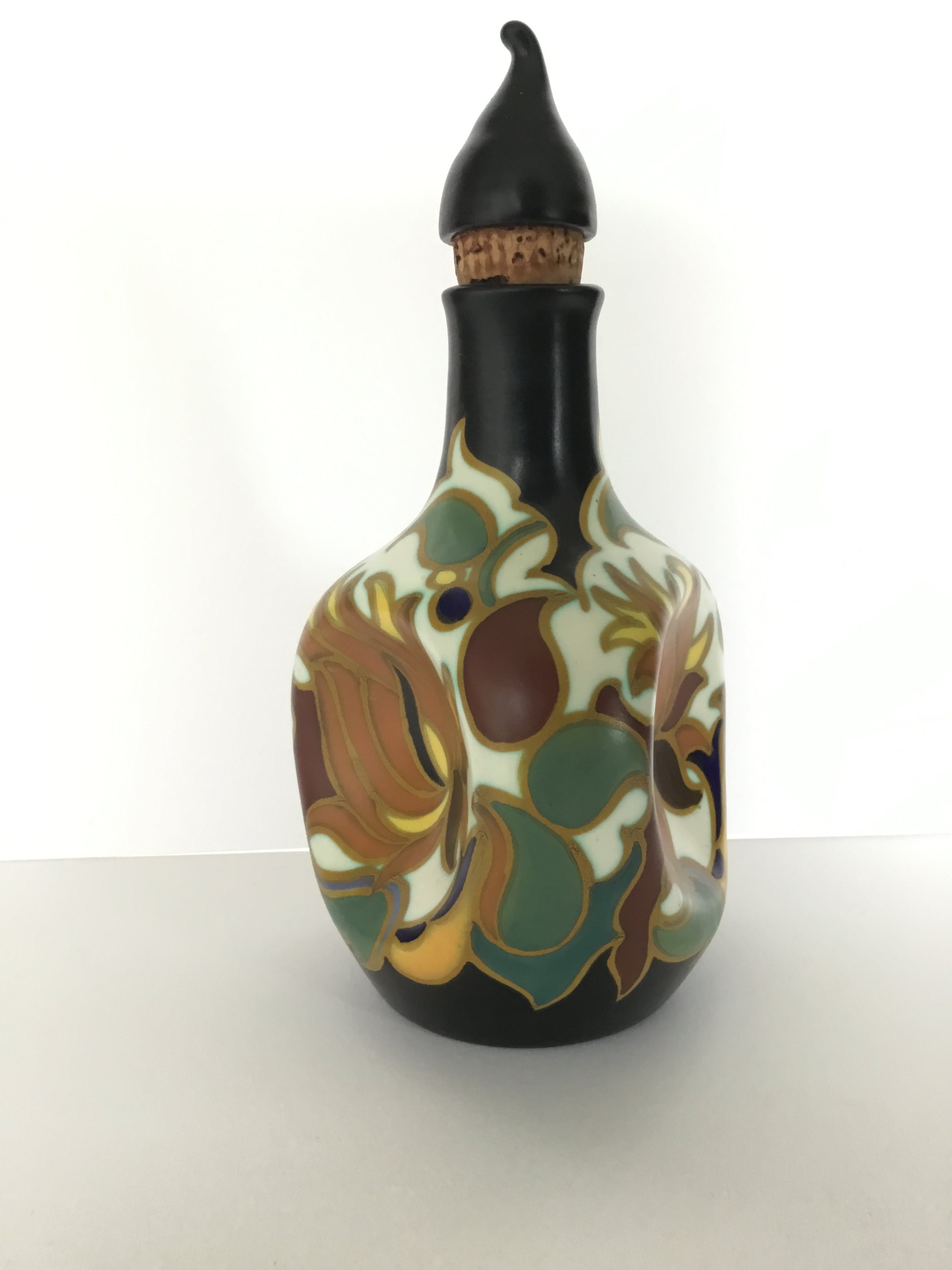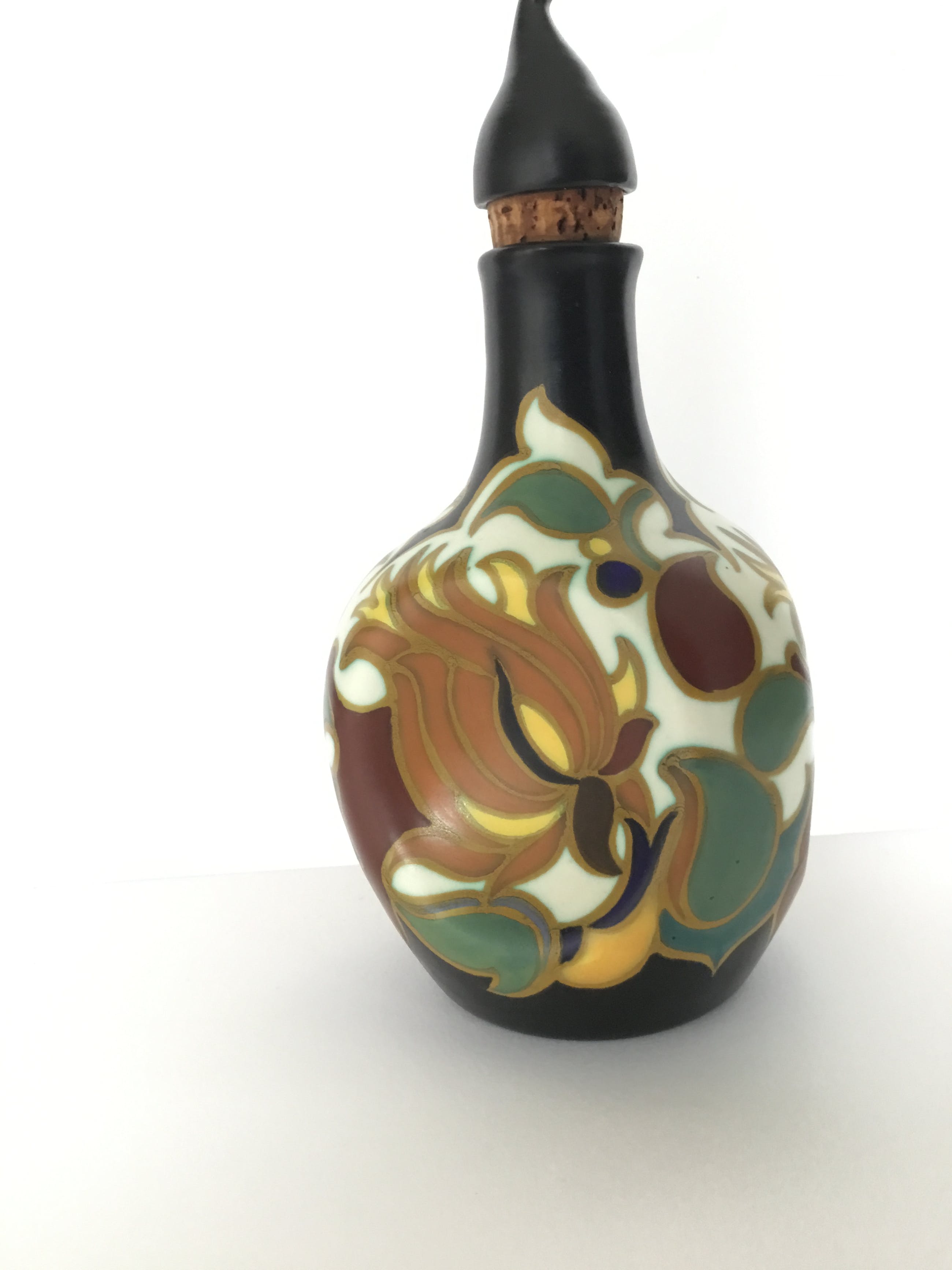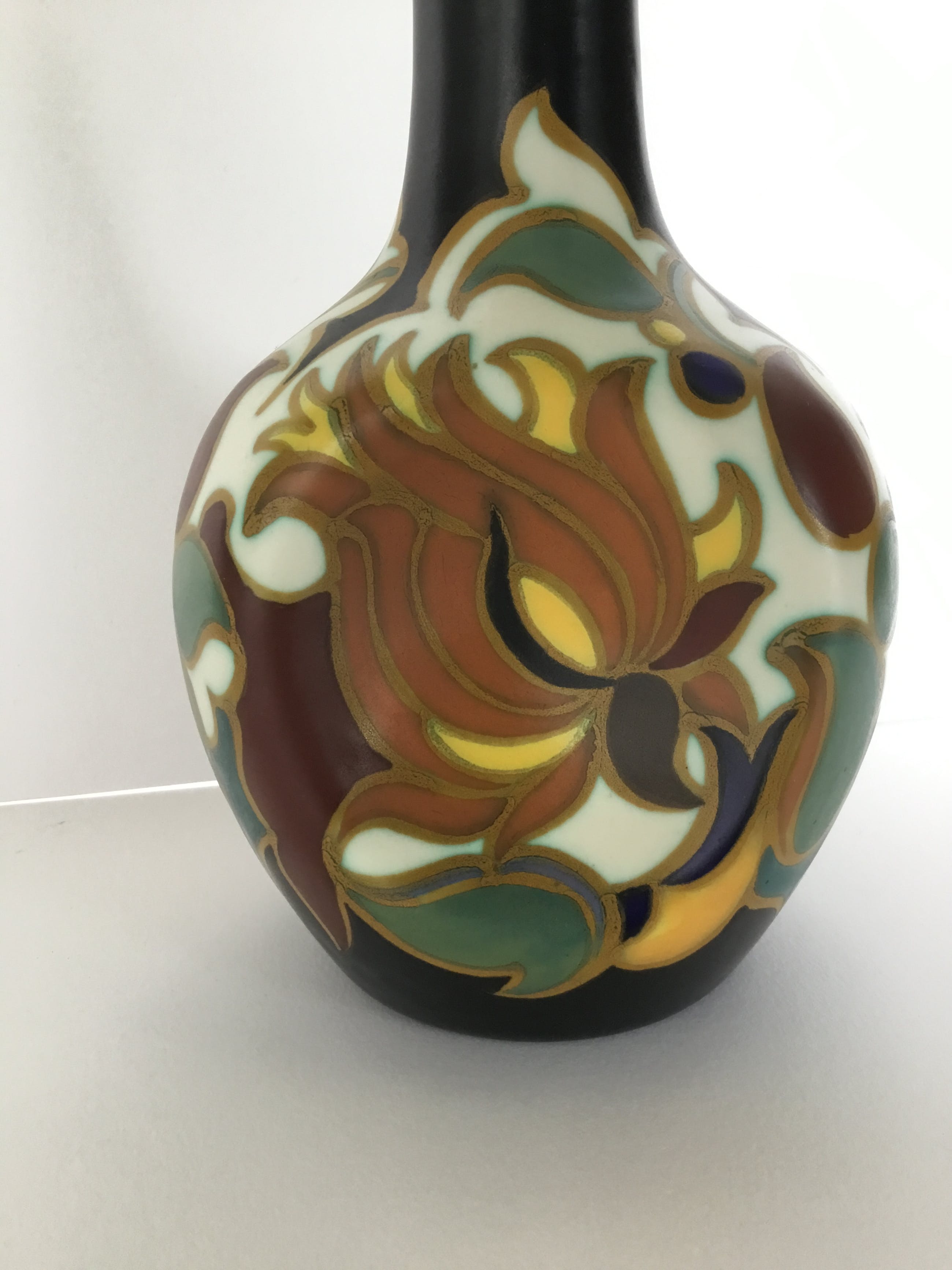 Mooi gevormde en beschilderde vaas van Zenith, uit Gouda. Het is beschilderd met bloemen en abstract geometrische vormen.