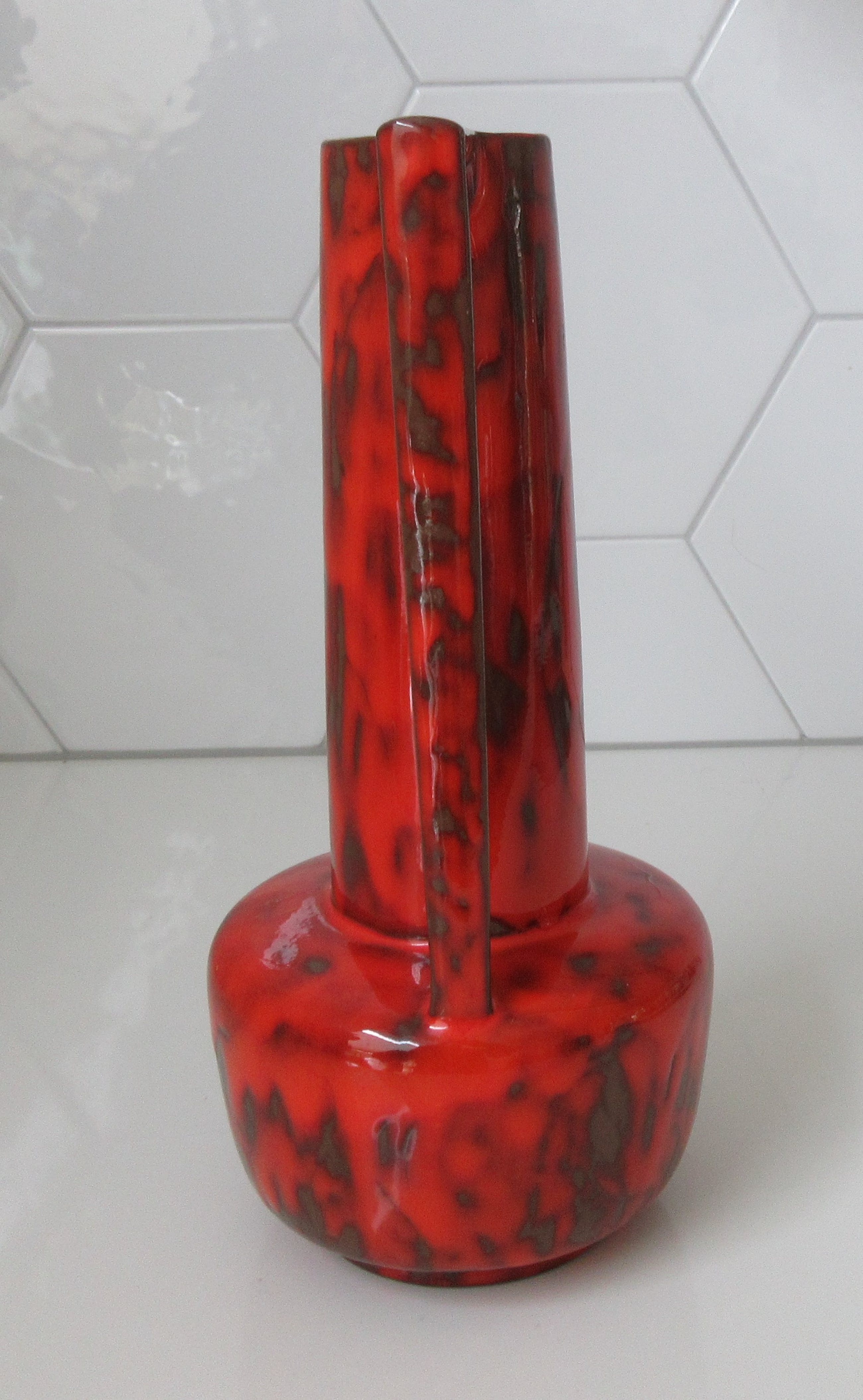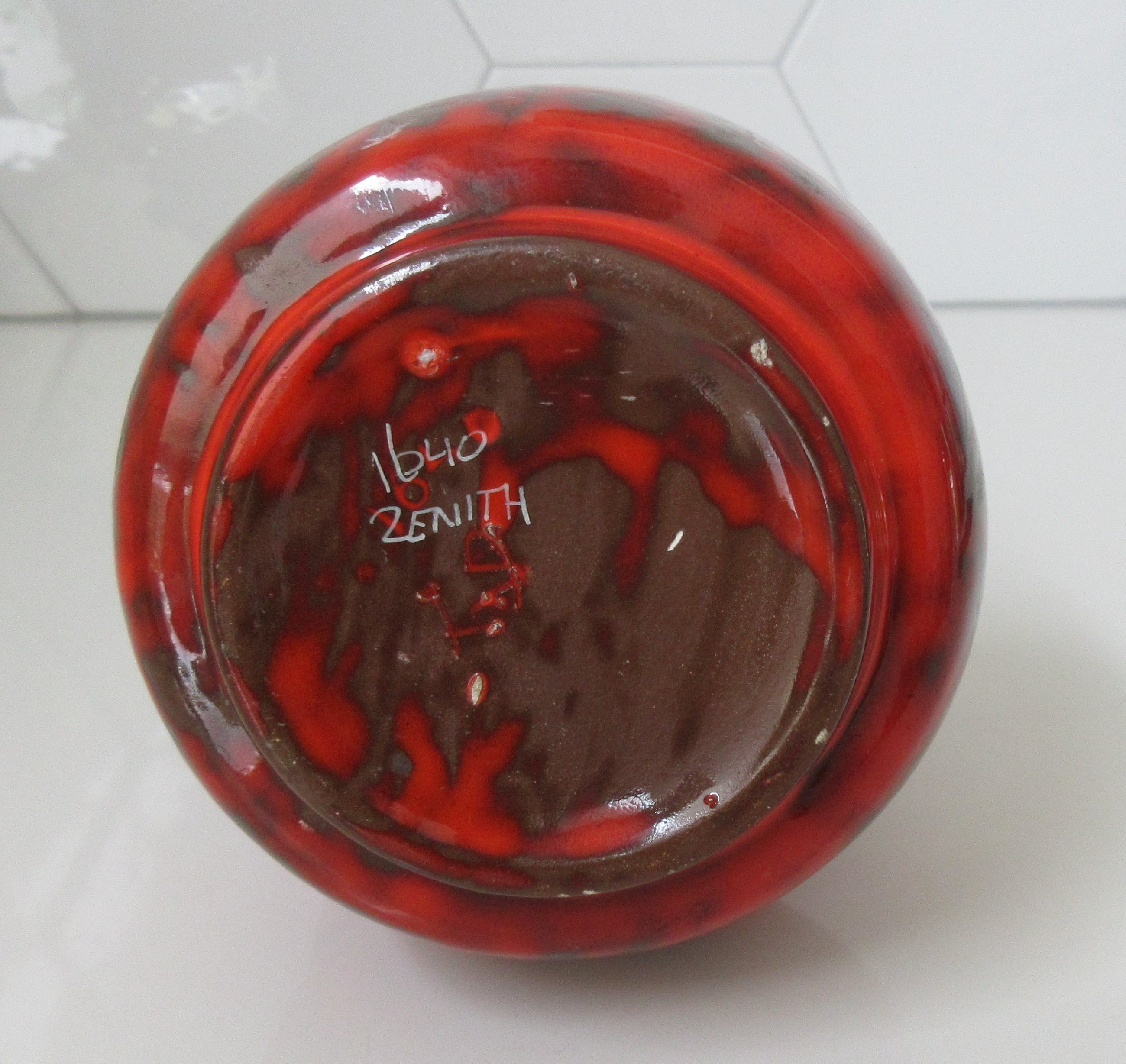 Zeldzame Platelen Space Age vaas model 1640 uitgevoerd bij plateelbakkerij Zenith uit Gouda. In zeer goede conditie, heeft twee pinpricks in het glazuur aan de onderzijde verder onbeschadigd. Met de hand gemerkt aan de onderzijde.