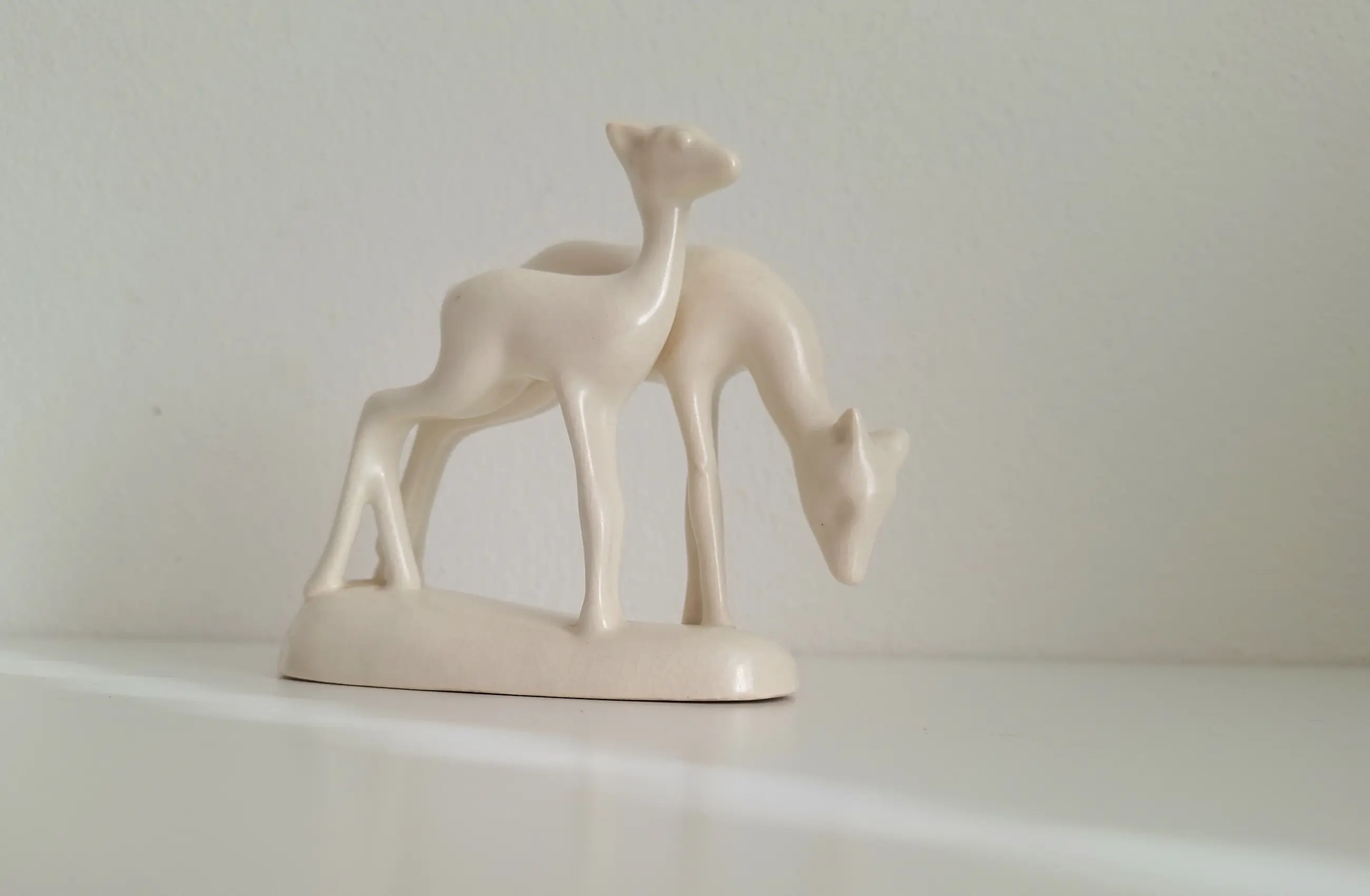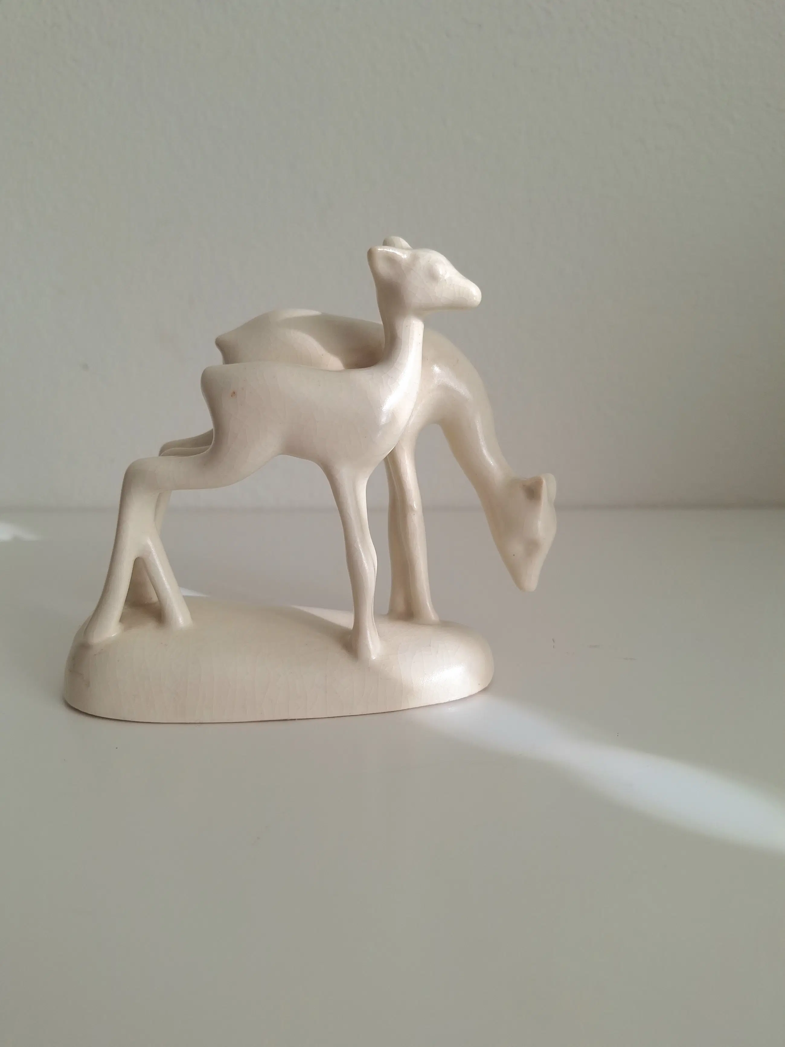 Uit 1938 stamt dit beeldje van twee herten. Ontworpen door Etta Lempke en Pieter Swilders voor Plateelbakkerij Zuid-Holland te Gouda.