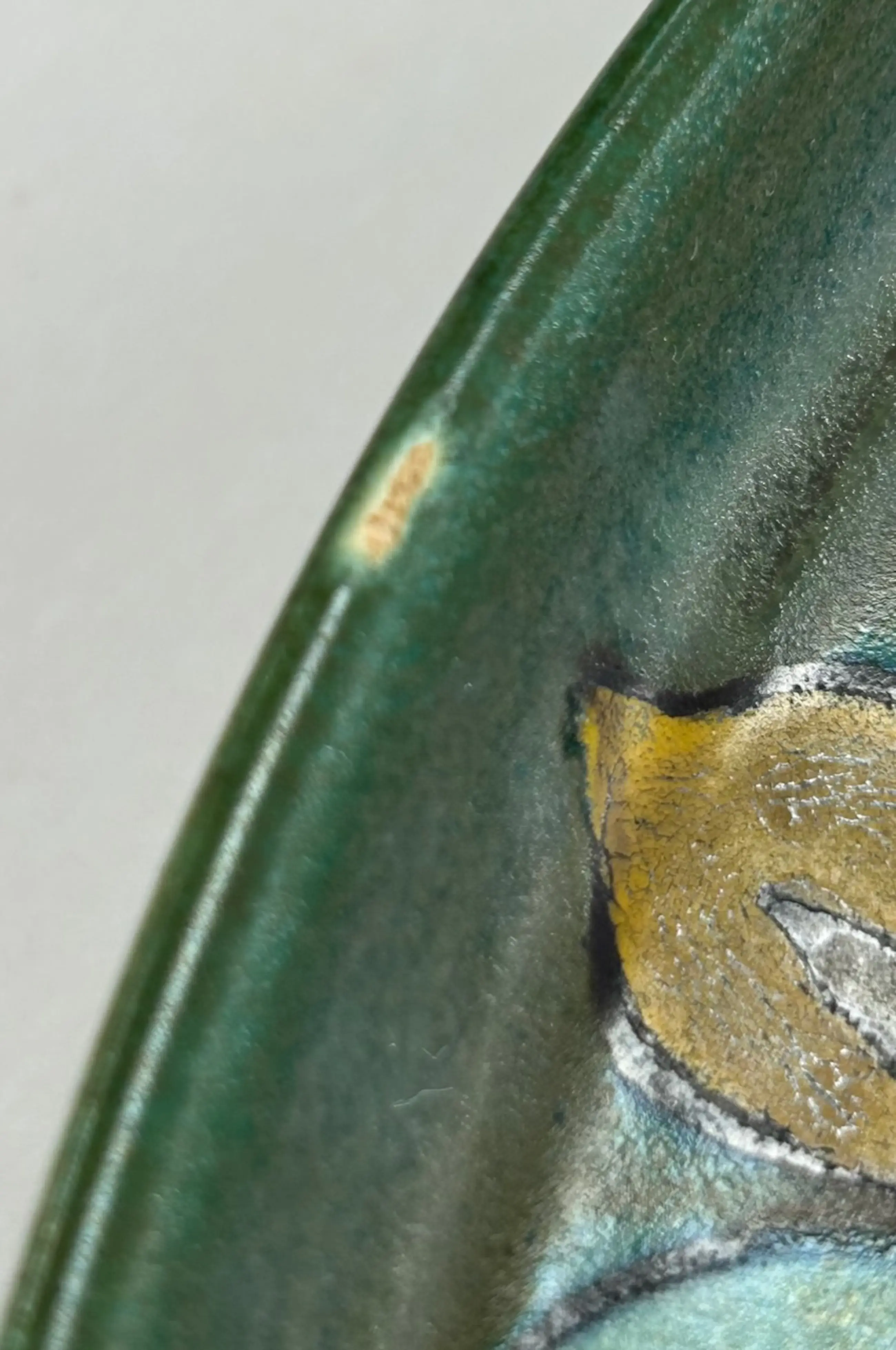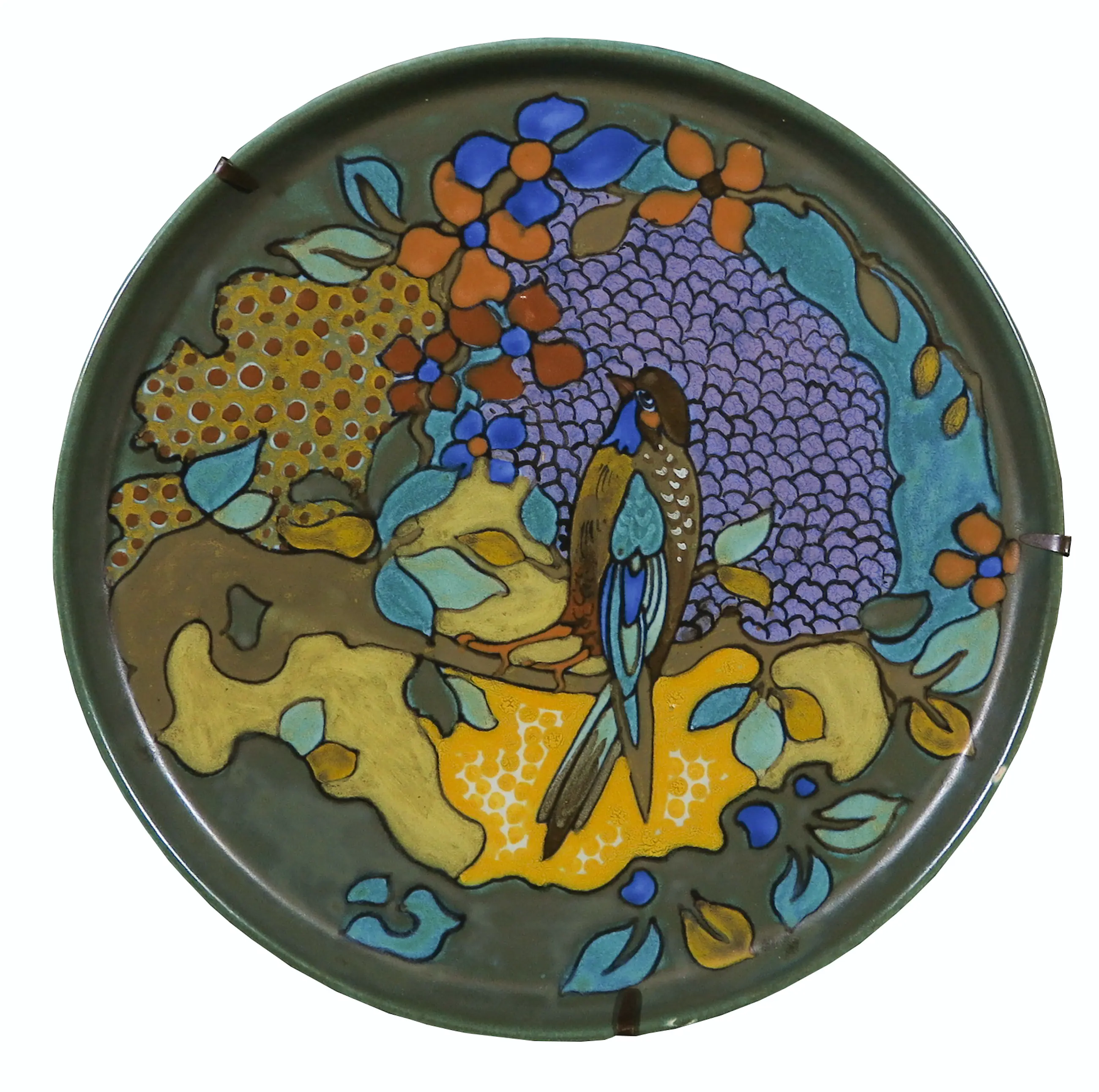 Plateelbakkerij Zuid-Holland te Gouda, polychroom geglazuurd wandbord. Patroonontwerp Bejo.