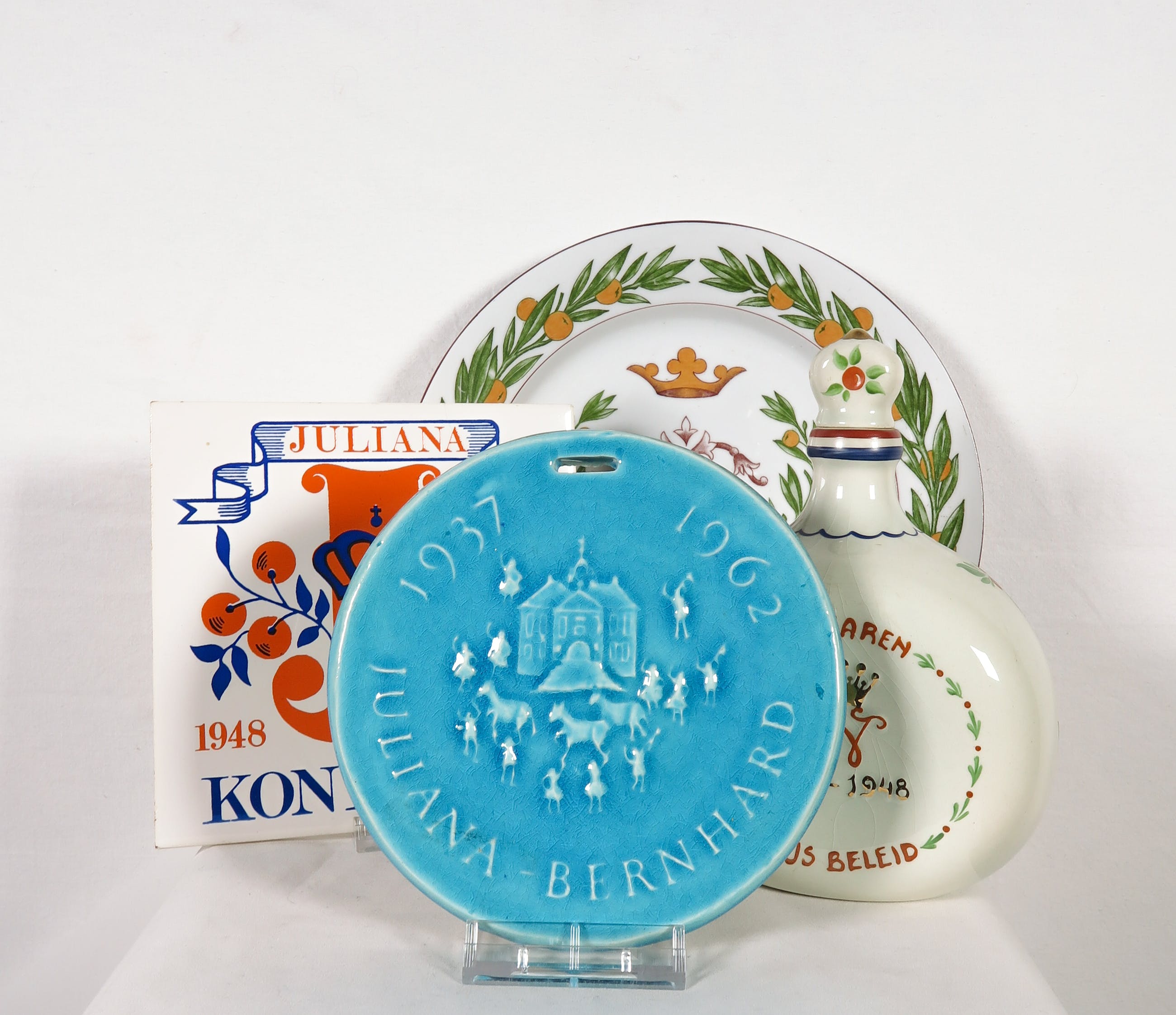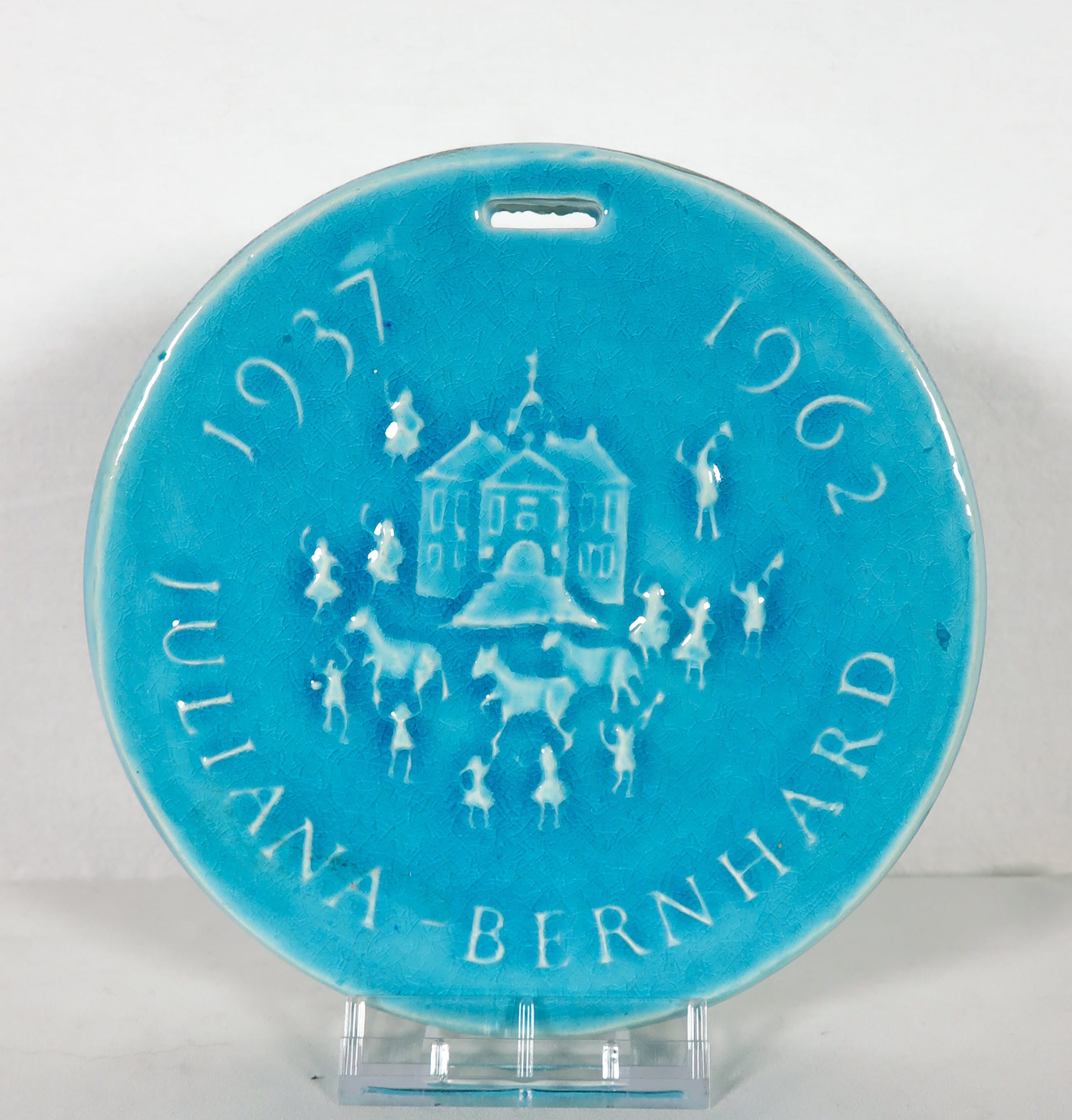 Bordje t.g.v. de geboorte van Prinses Juliana: 22.5 x 22.5 x 2.5 cm.