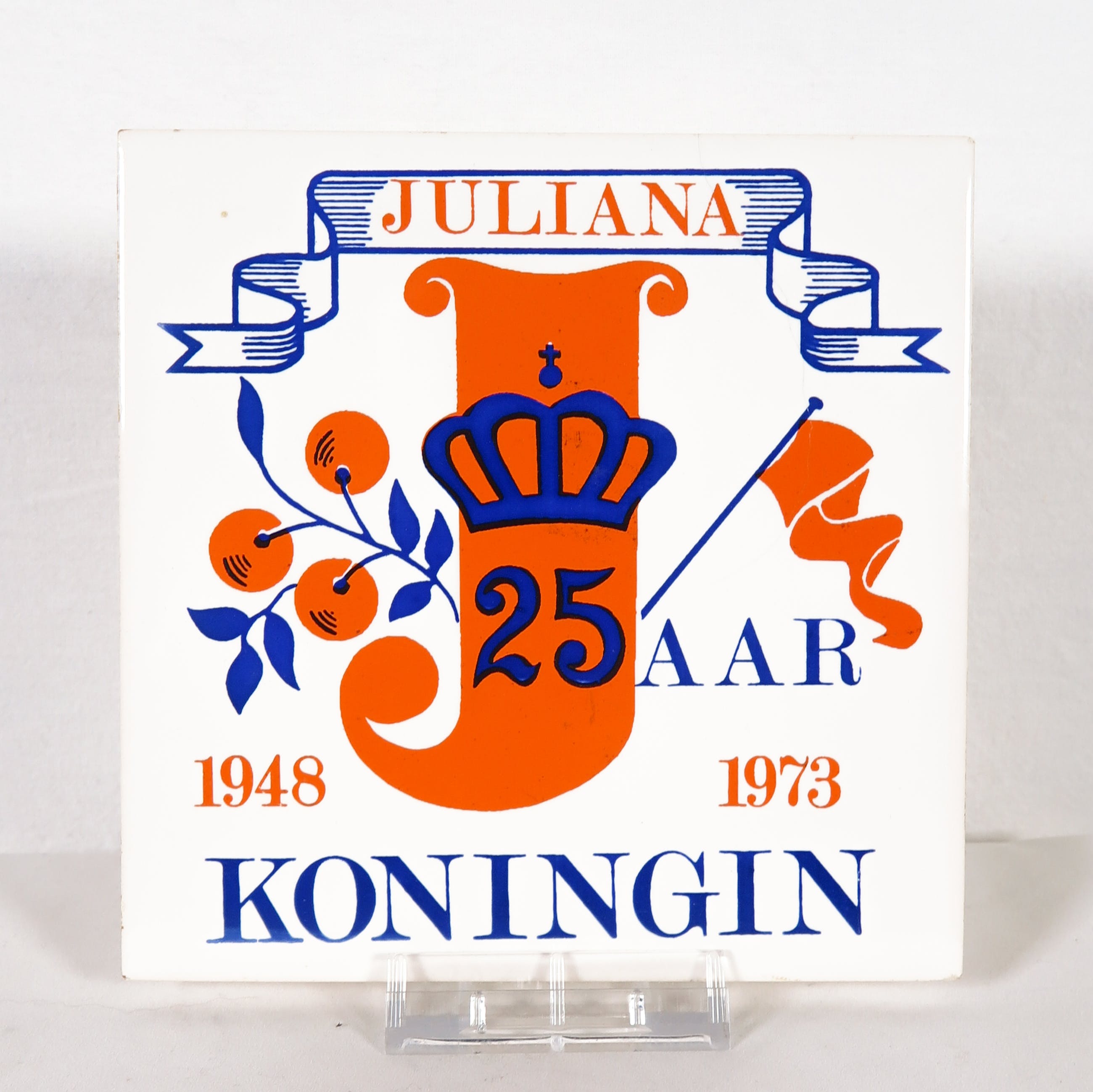 Tegel jubileum Koningin Juliana: 15 x 15 cm.