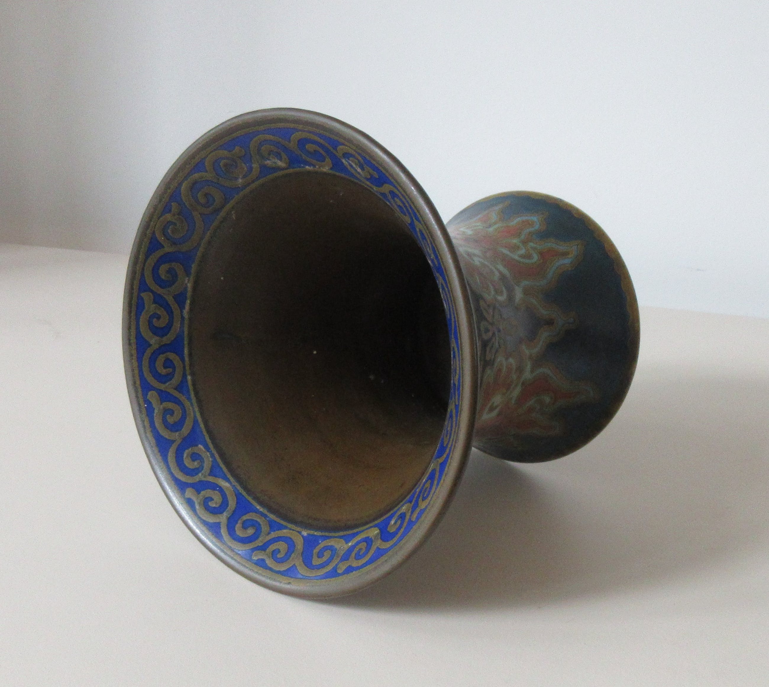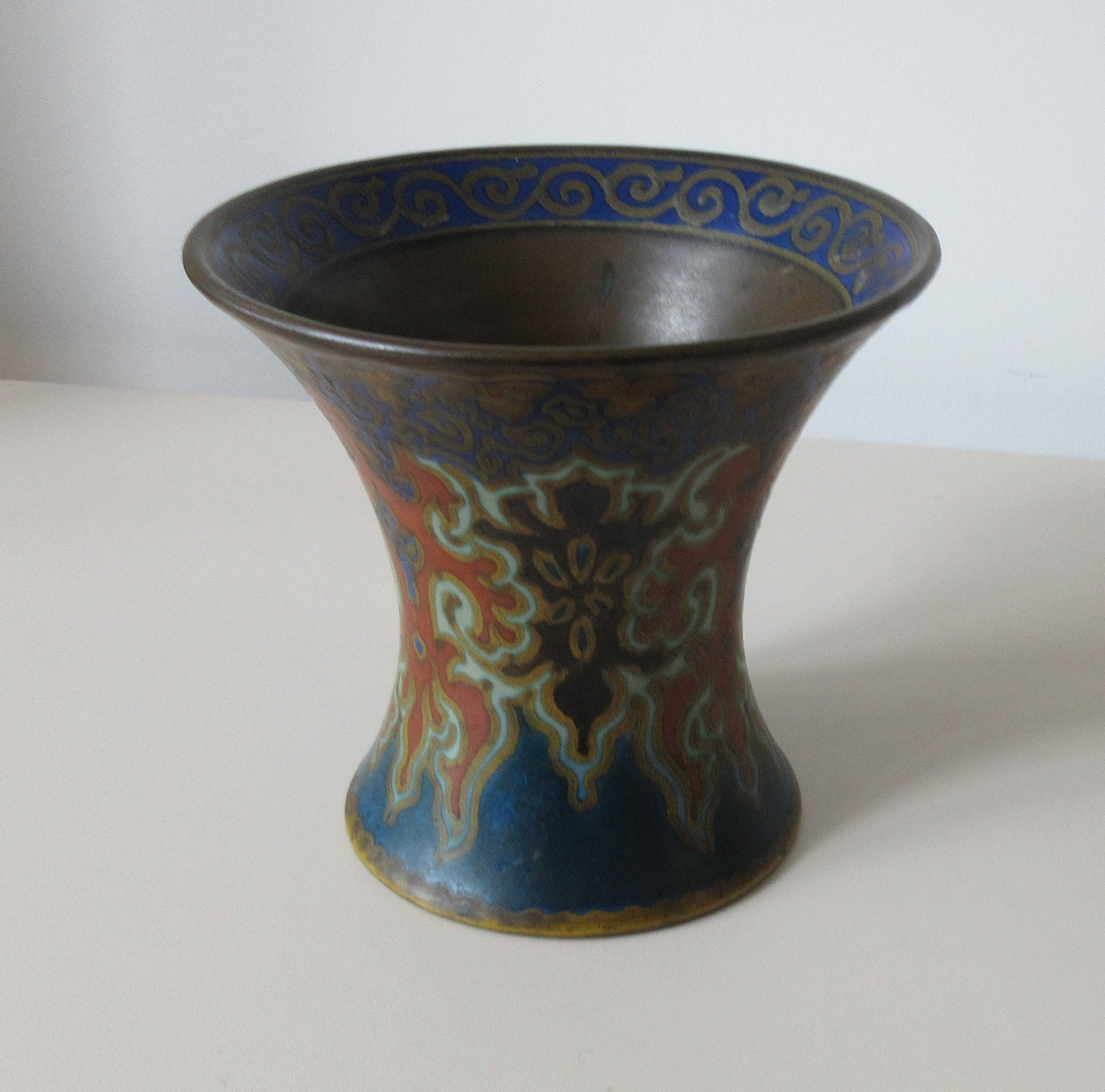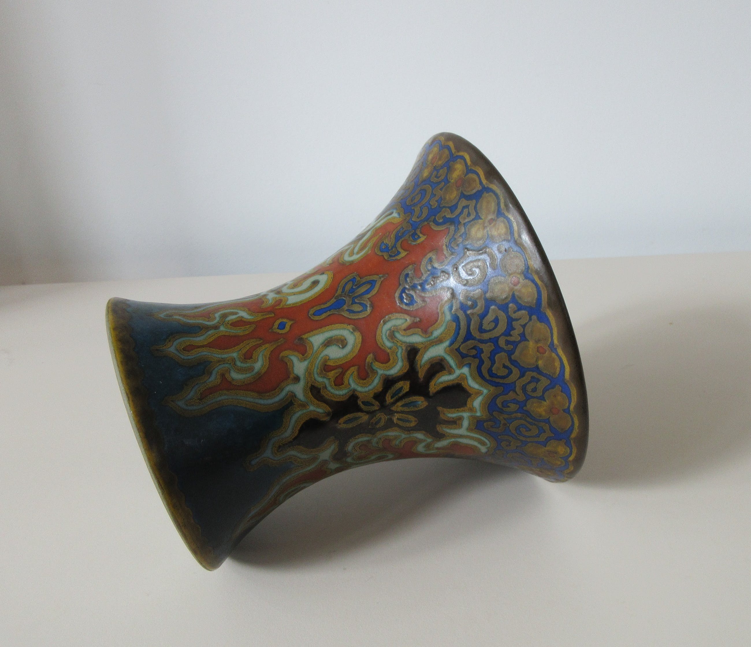 Mat platelen vaasje decor M109 van plateelbakkerij Zuid Holland. in perfecte conditie en gemerkt aan de onderzijde.