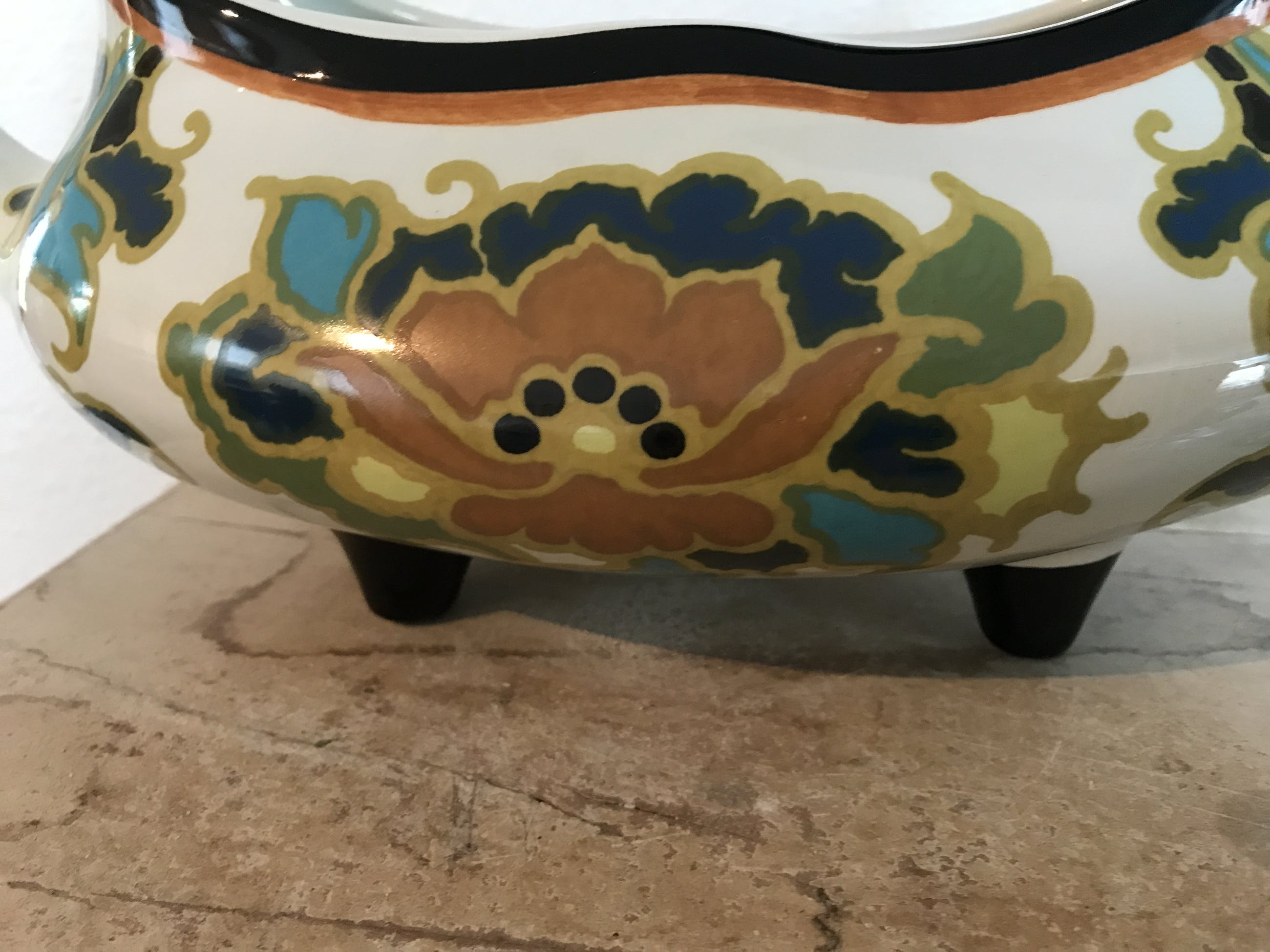 Mooie plantenbak, groot, van goudse Plateel Modica, Decor aster.
