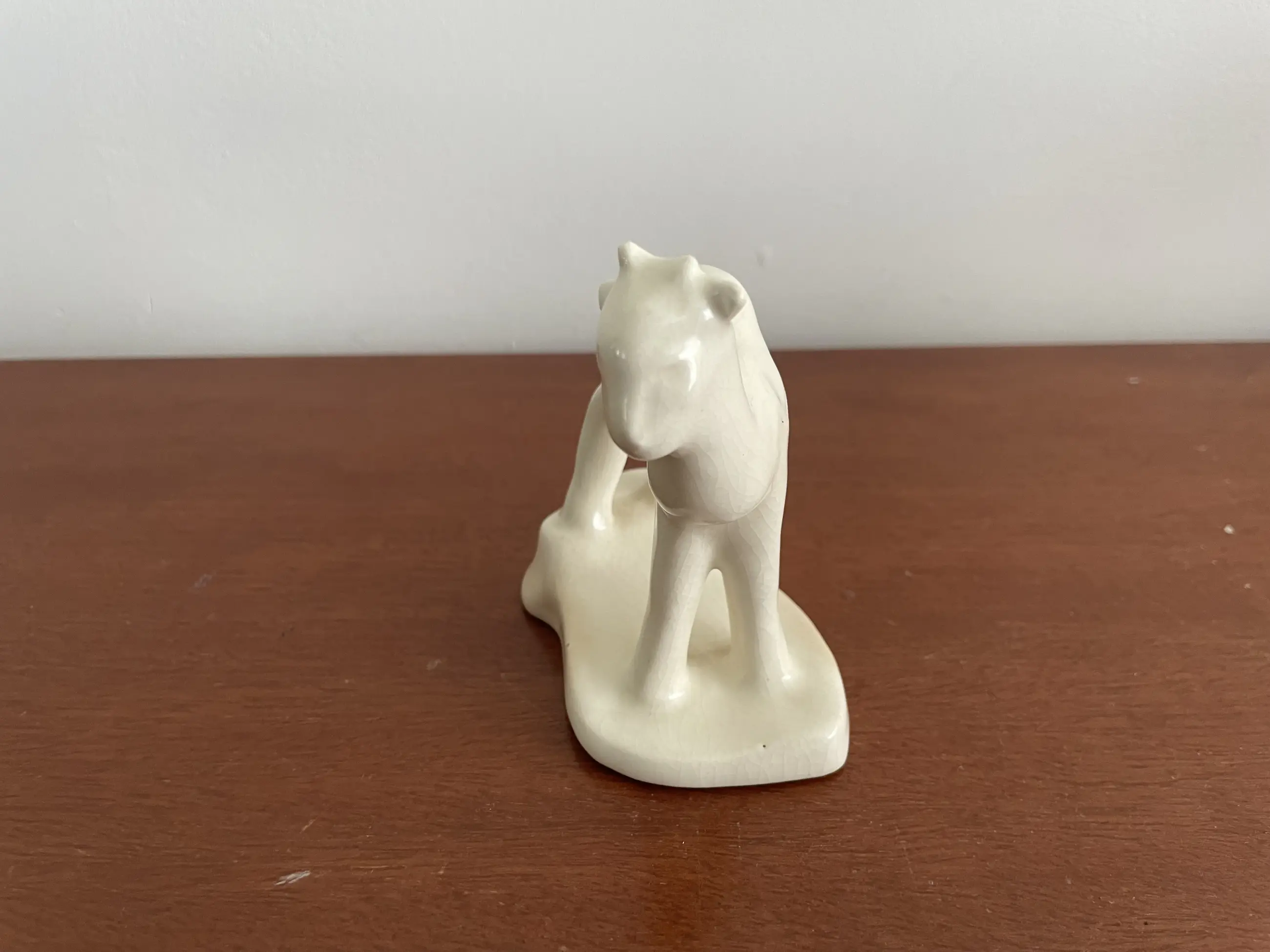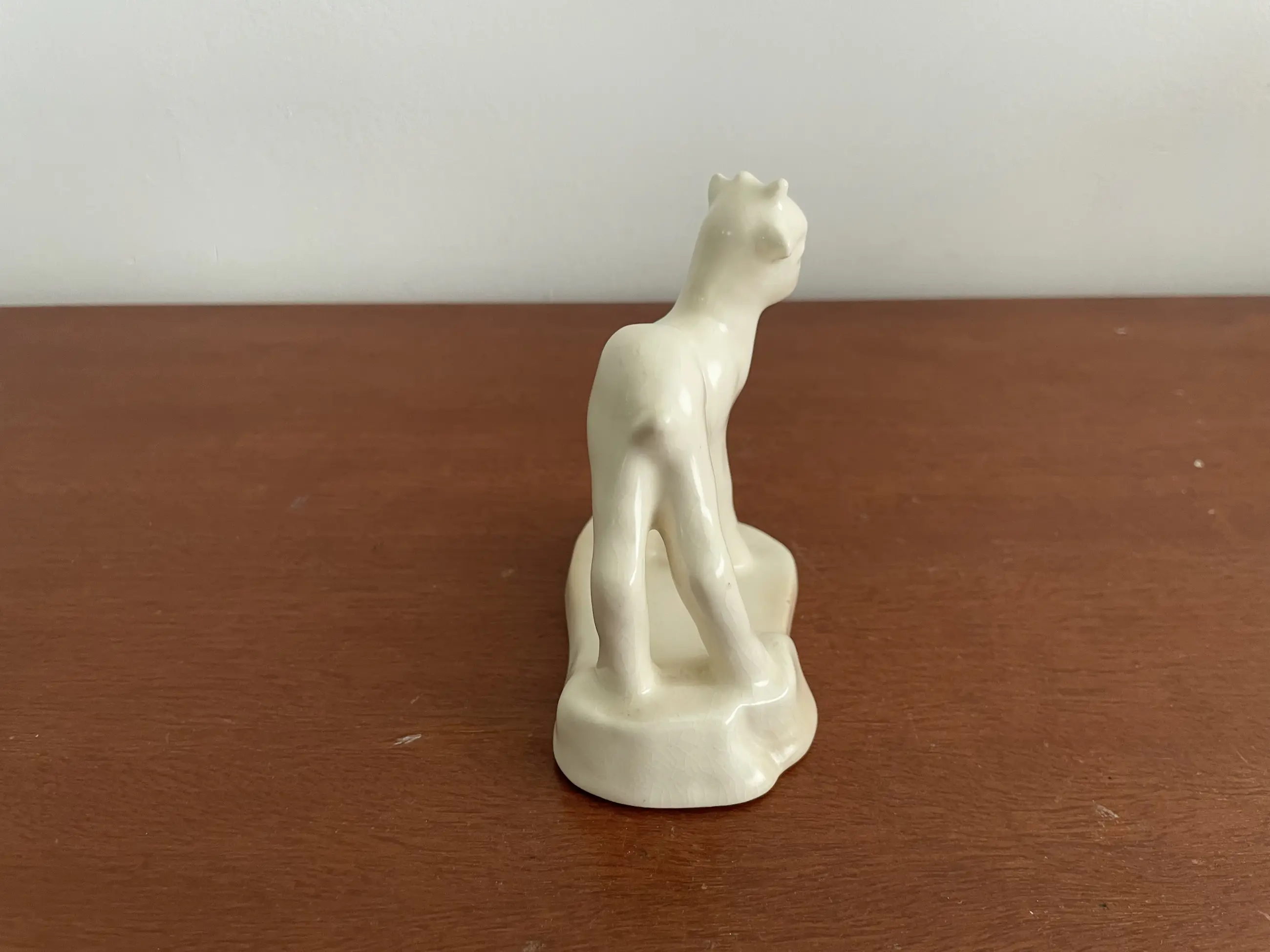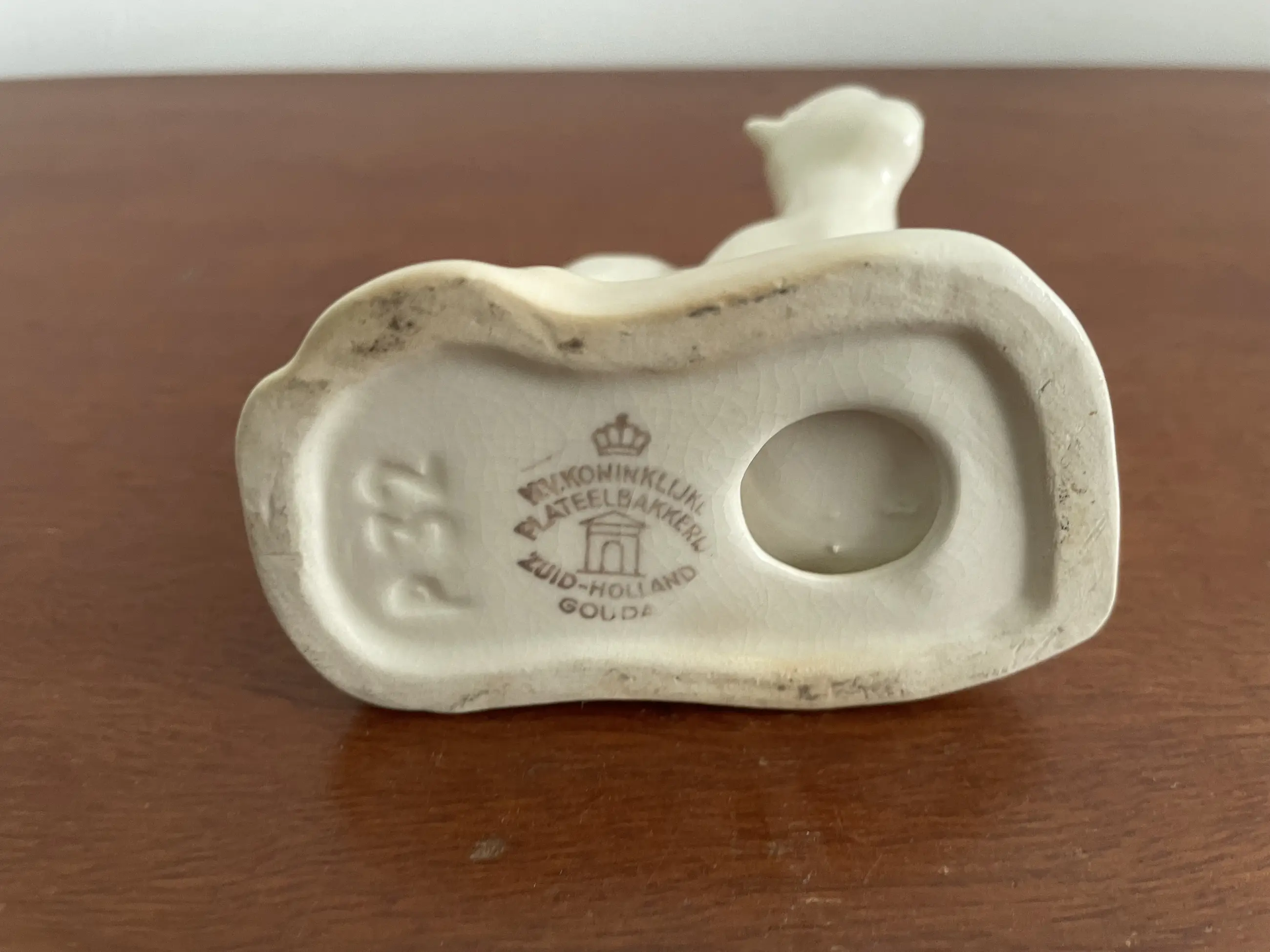 Plastiek bokje model P32 ontwerp Pieter Swildens voor de plateelbakkerij Zuid Holland in Gouda. In goede conditie, geen beschadigingen wel is het glazuur wat verkleurd op twee plekken. Gemerkt aan de onderkant.
