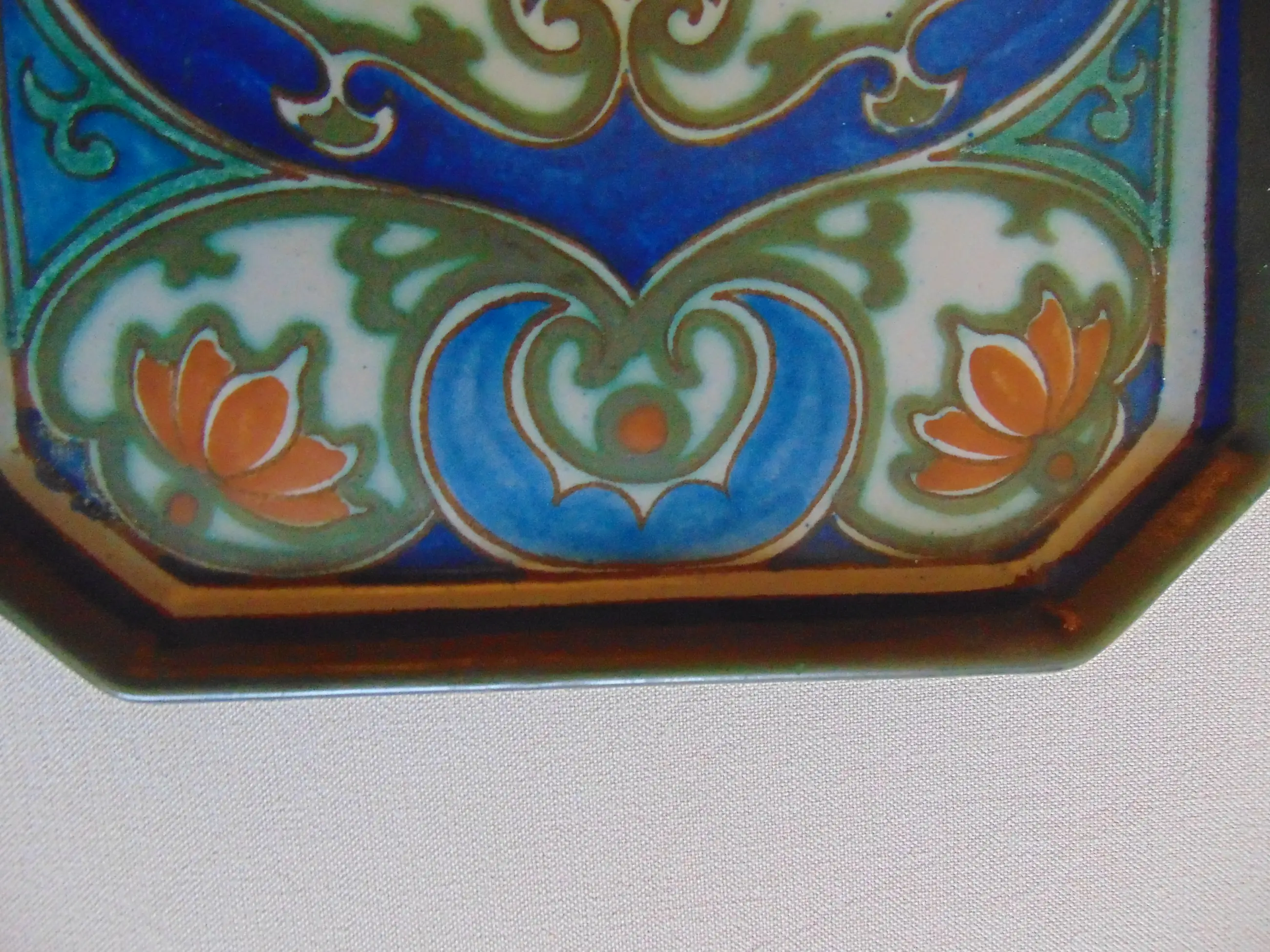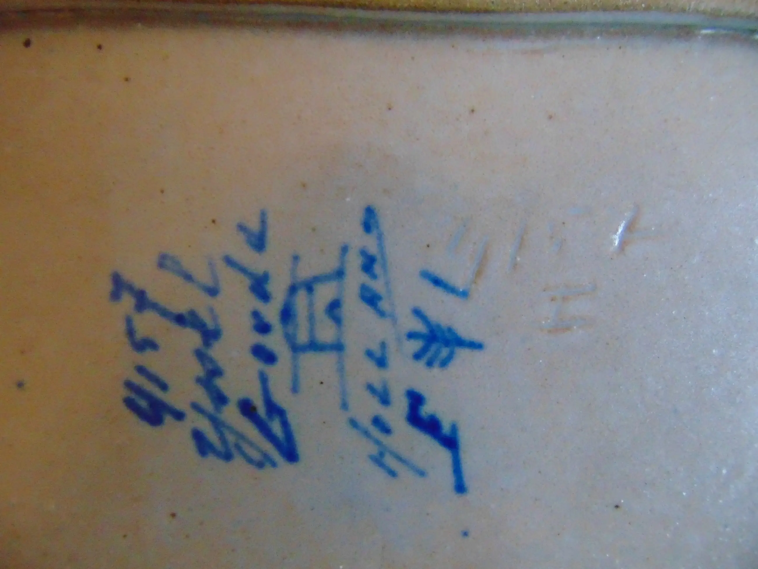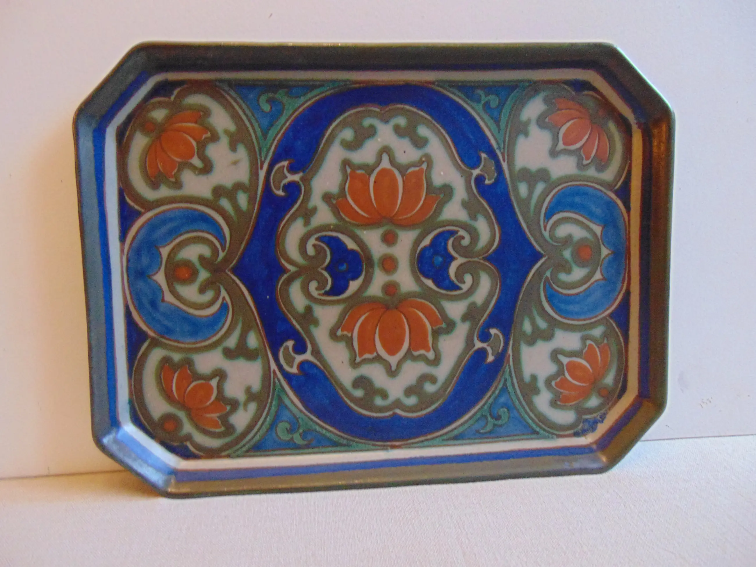 Deze rechthoekige schaal is aan de onderzijde gesigneerd (zie foto).