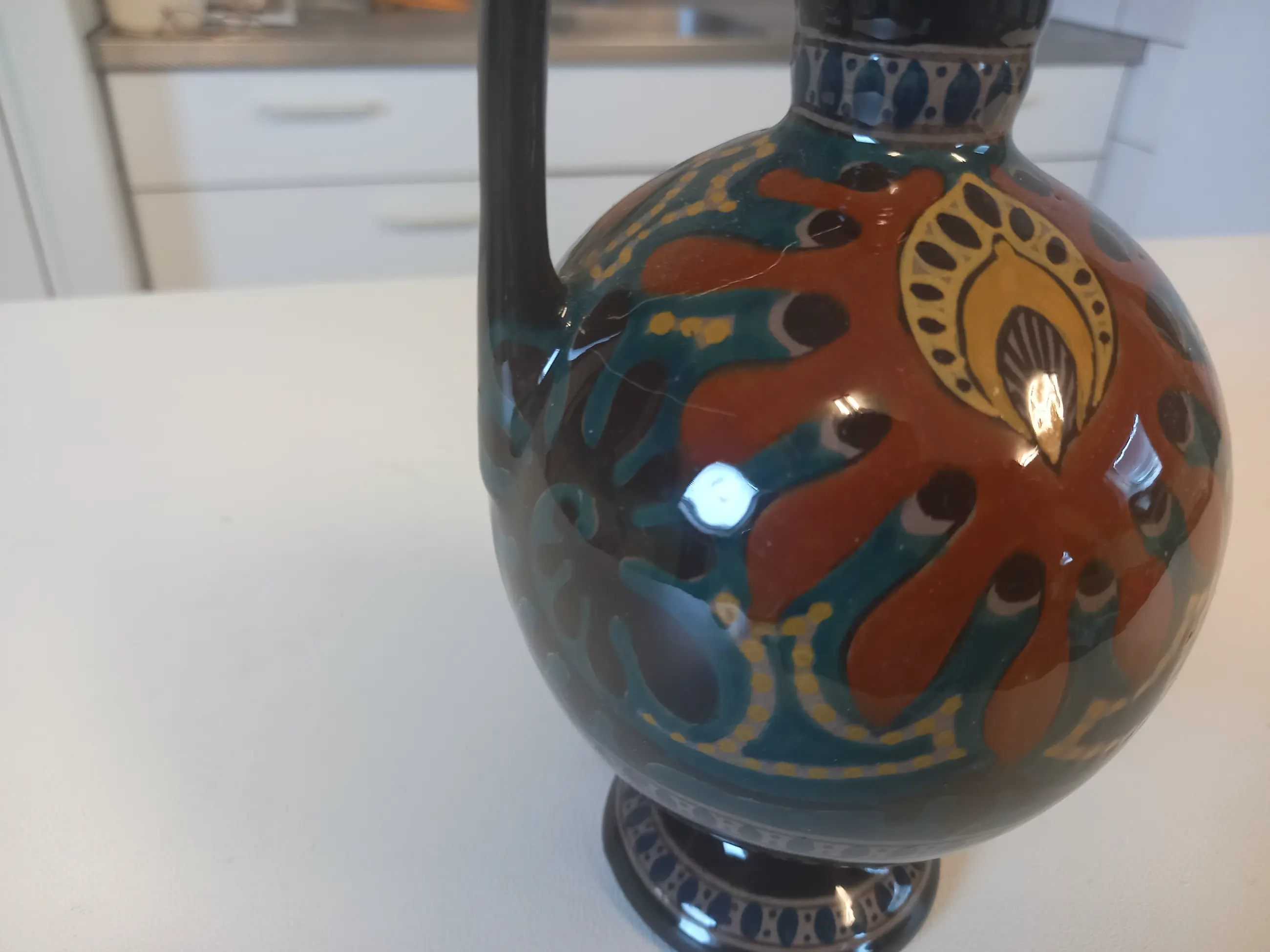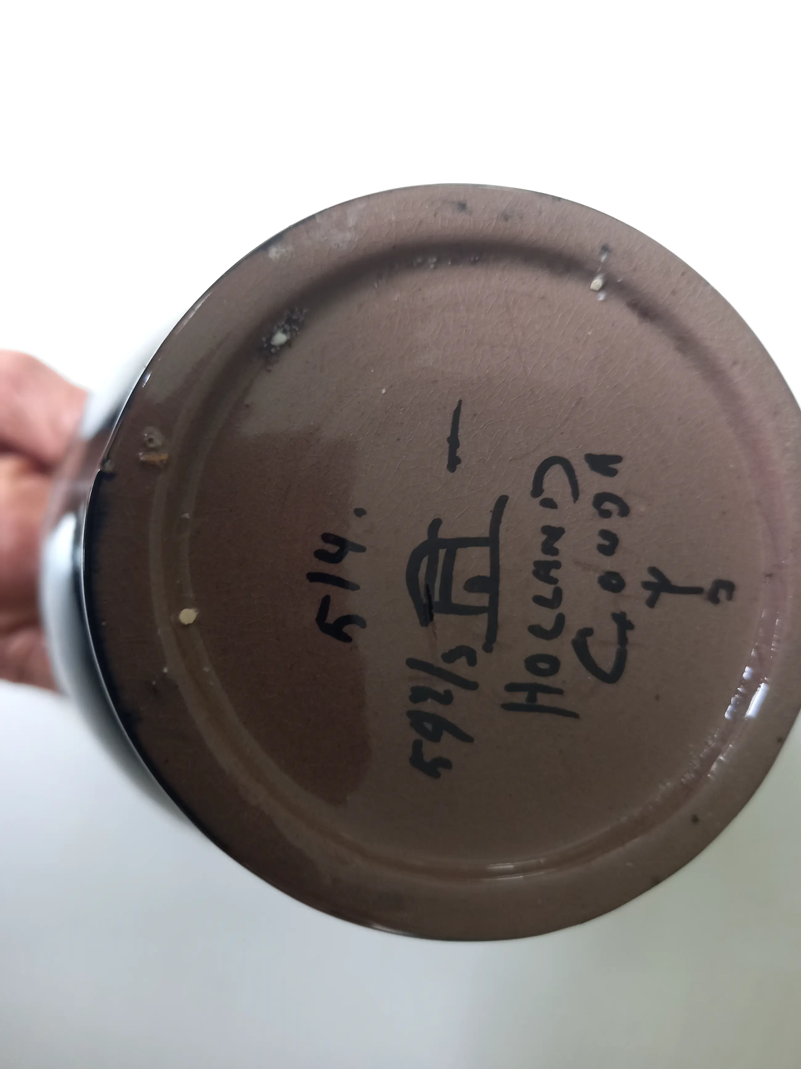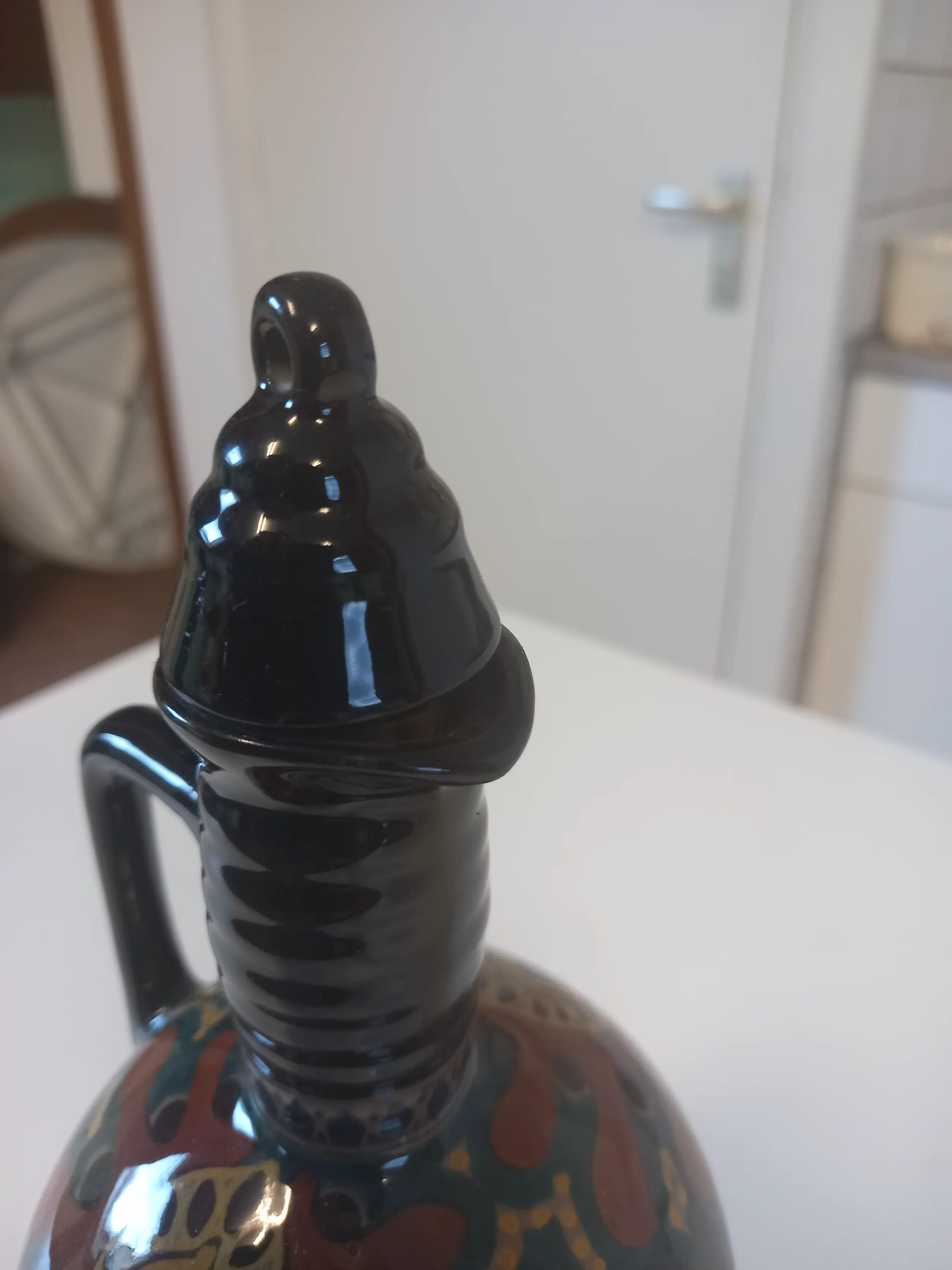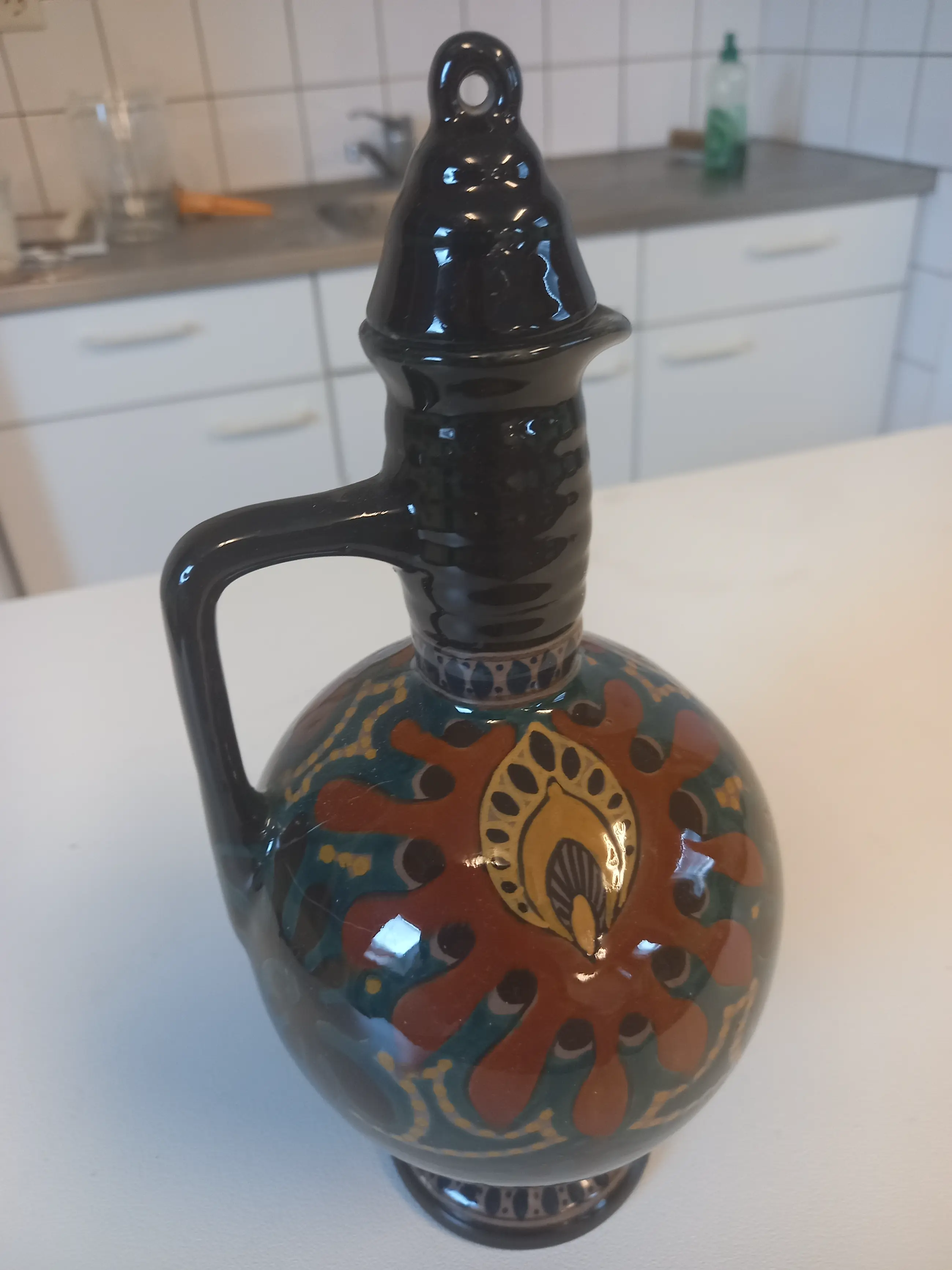 Aangeboden onderschotel /wandbord (diameter 27 cm ) en Karaf ( 26 cm ) gemaakt in 1921 bij de Plateelbakkerij Zuid-Holland in Gouda. Zijn van een genummerde serie ( zie foto"s ) Zijn nog helemaal gaaf.
