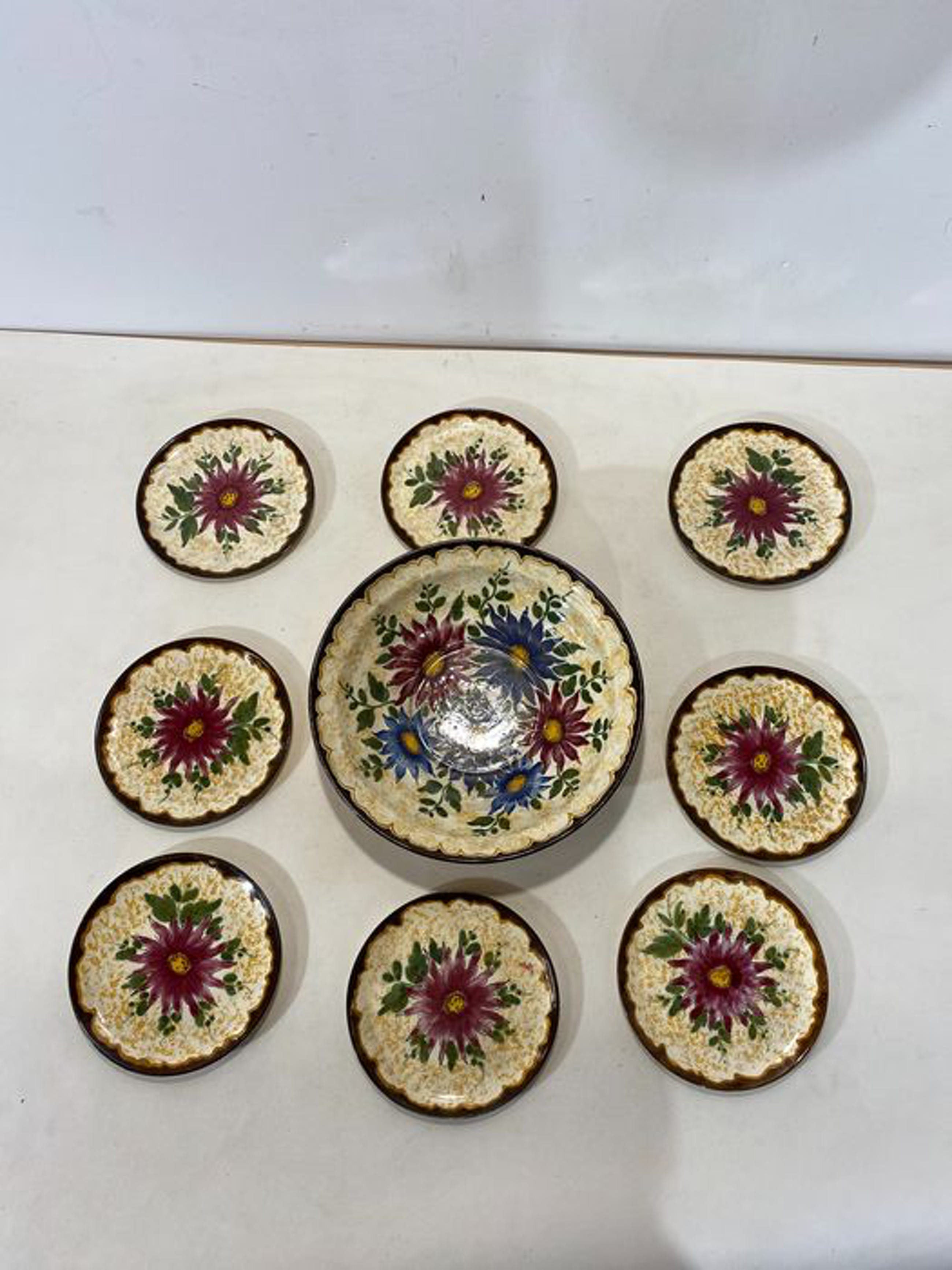 De 8 kleinere bordjes hebben dezelfde soort bloemen en zijn genummerd met 290H Schaal en bordjes zijn in goede staat.