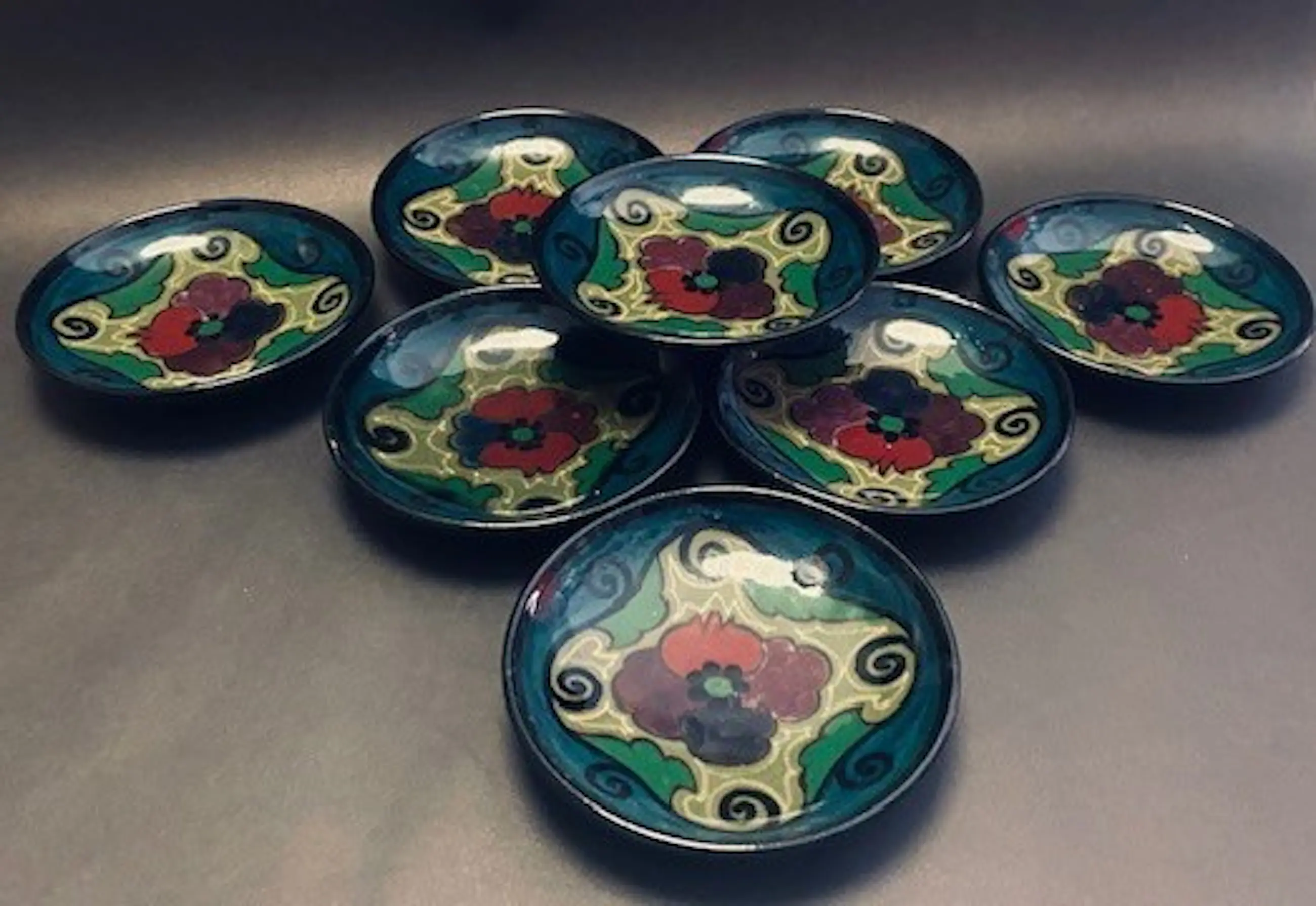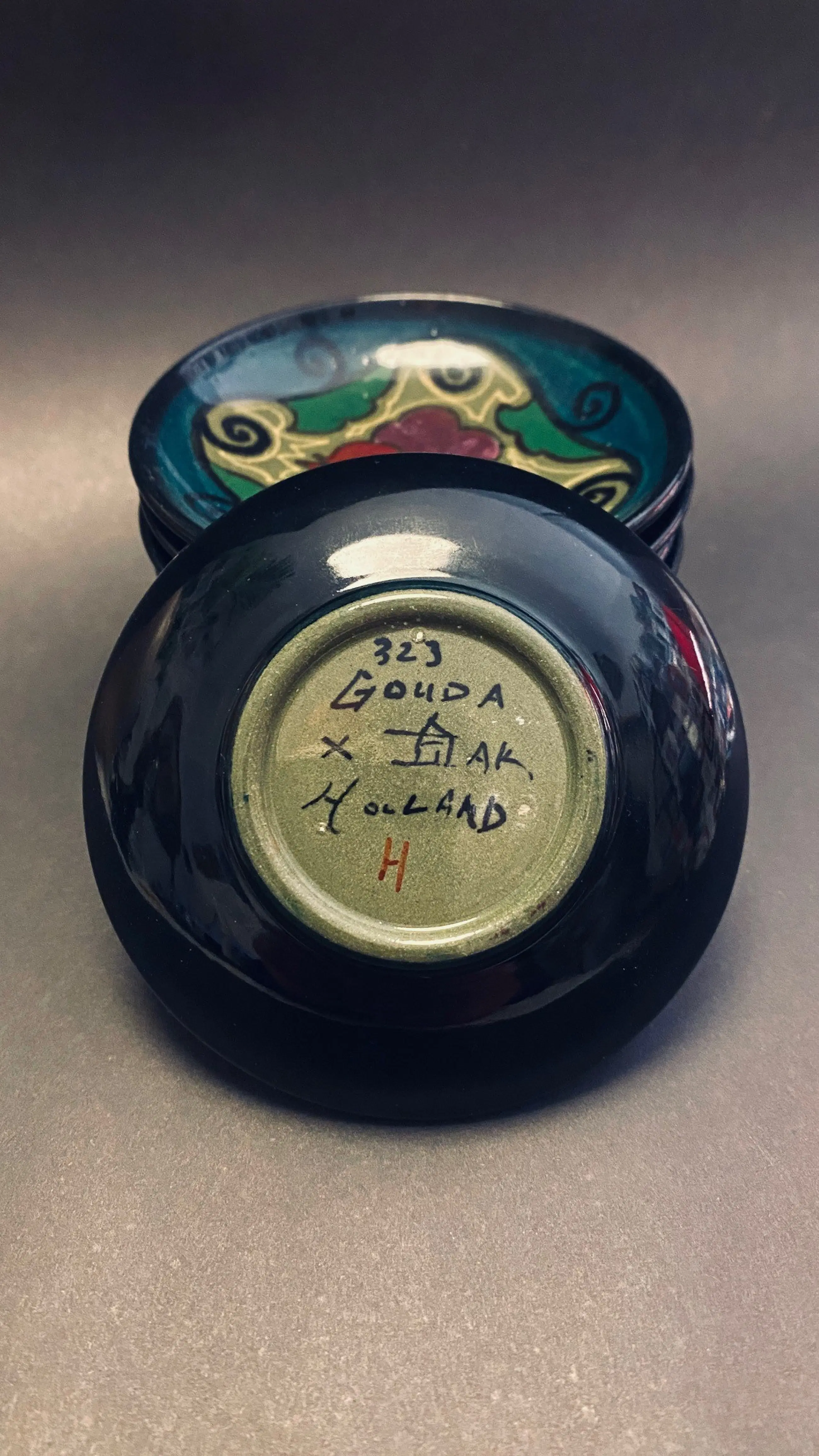 Voor de liefhebber van authentiek Nederlands aardewerk: een prachtige, complete set van 8 identieke schaaltjes van de beroemde Koninklijke Plateelbakkerij Zuid-Holland (PZH) uit Gouda.