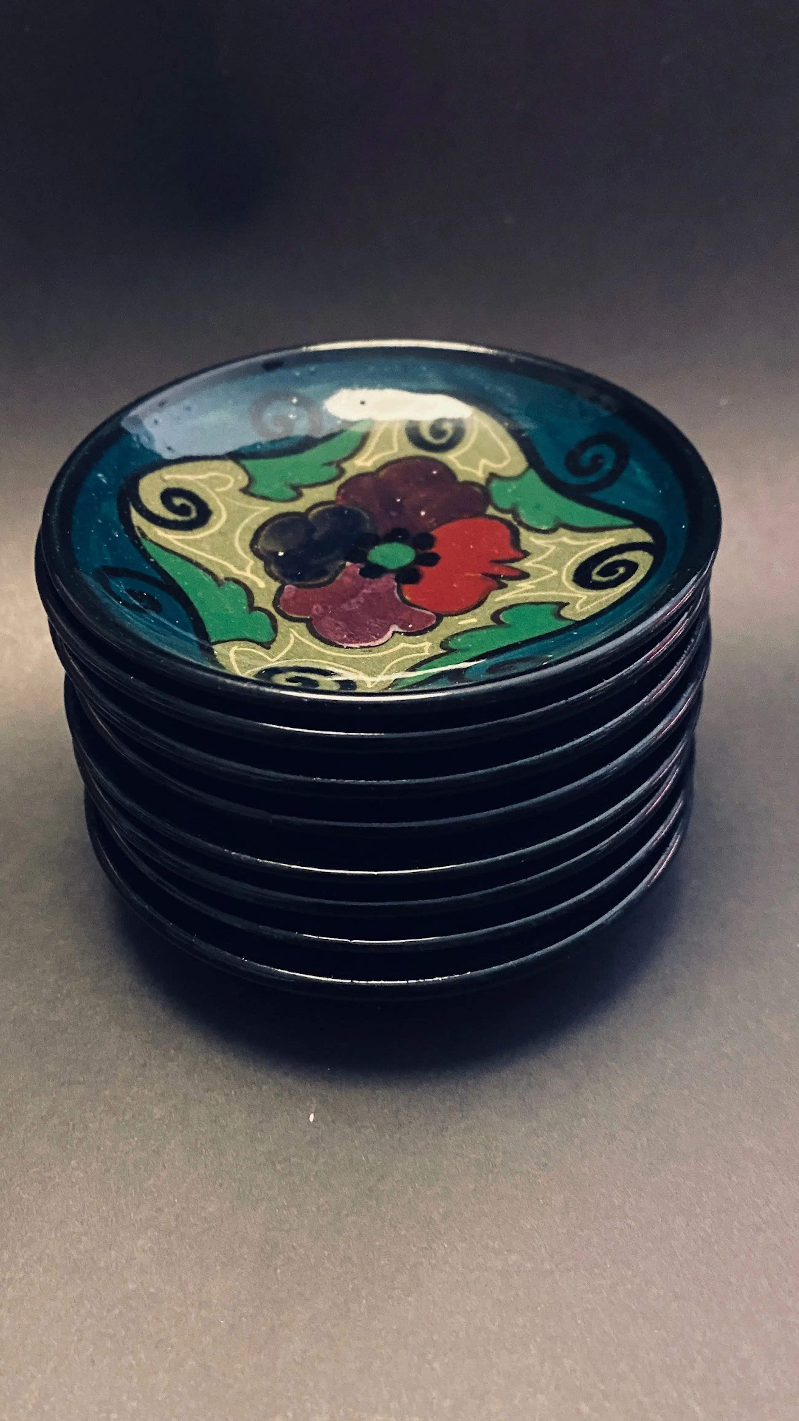 Deze set is niet alleen decoratief, maar door het aantal (8 stuks) ook perfect te gebruiken als luxe petit-four set, bonbonschaaltjes of als chique onderzetters voor een high-tea.