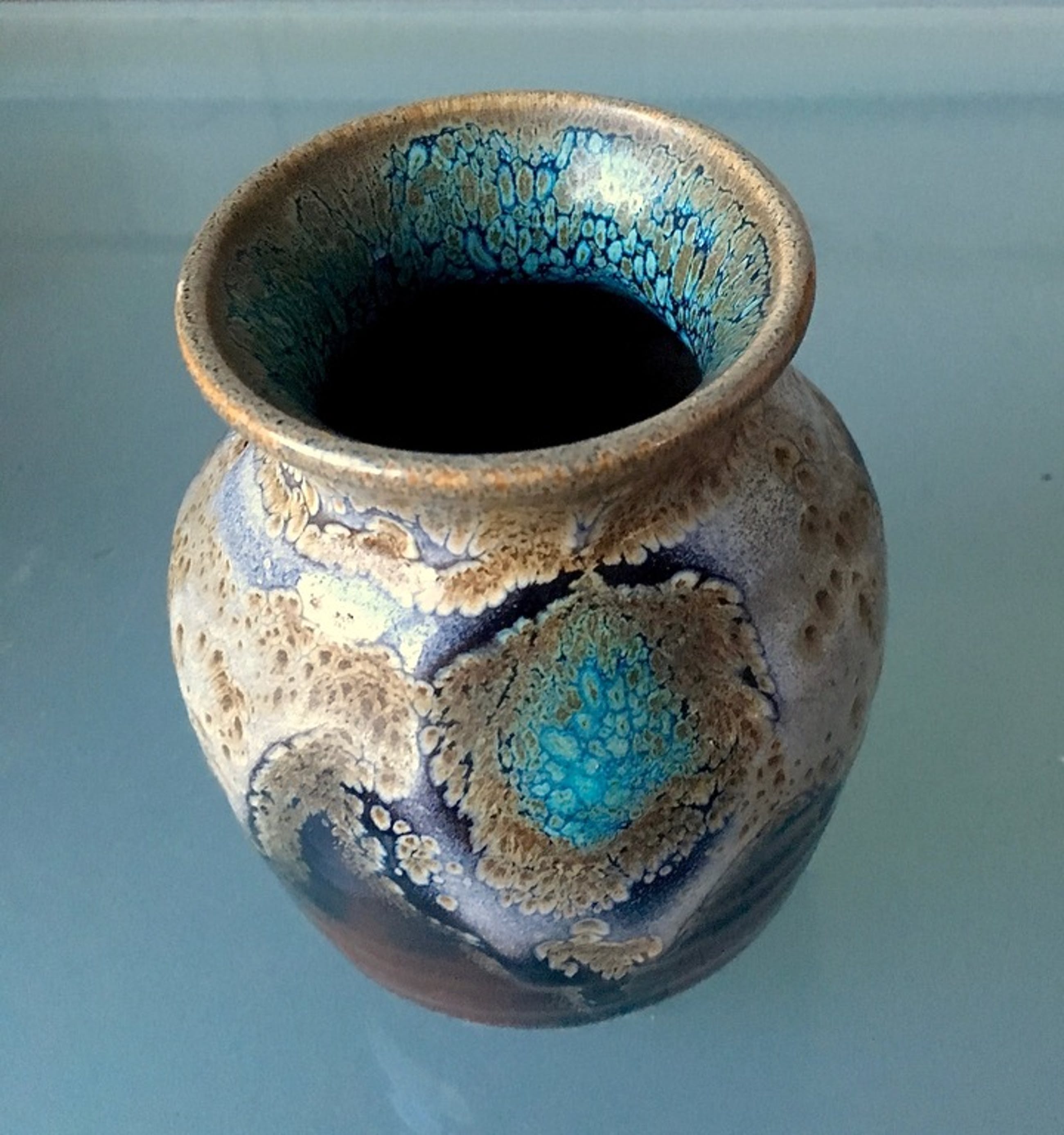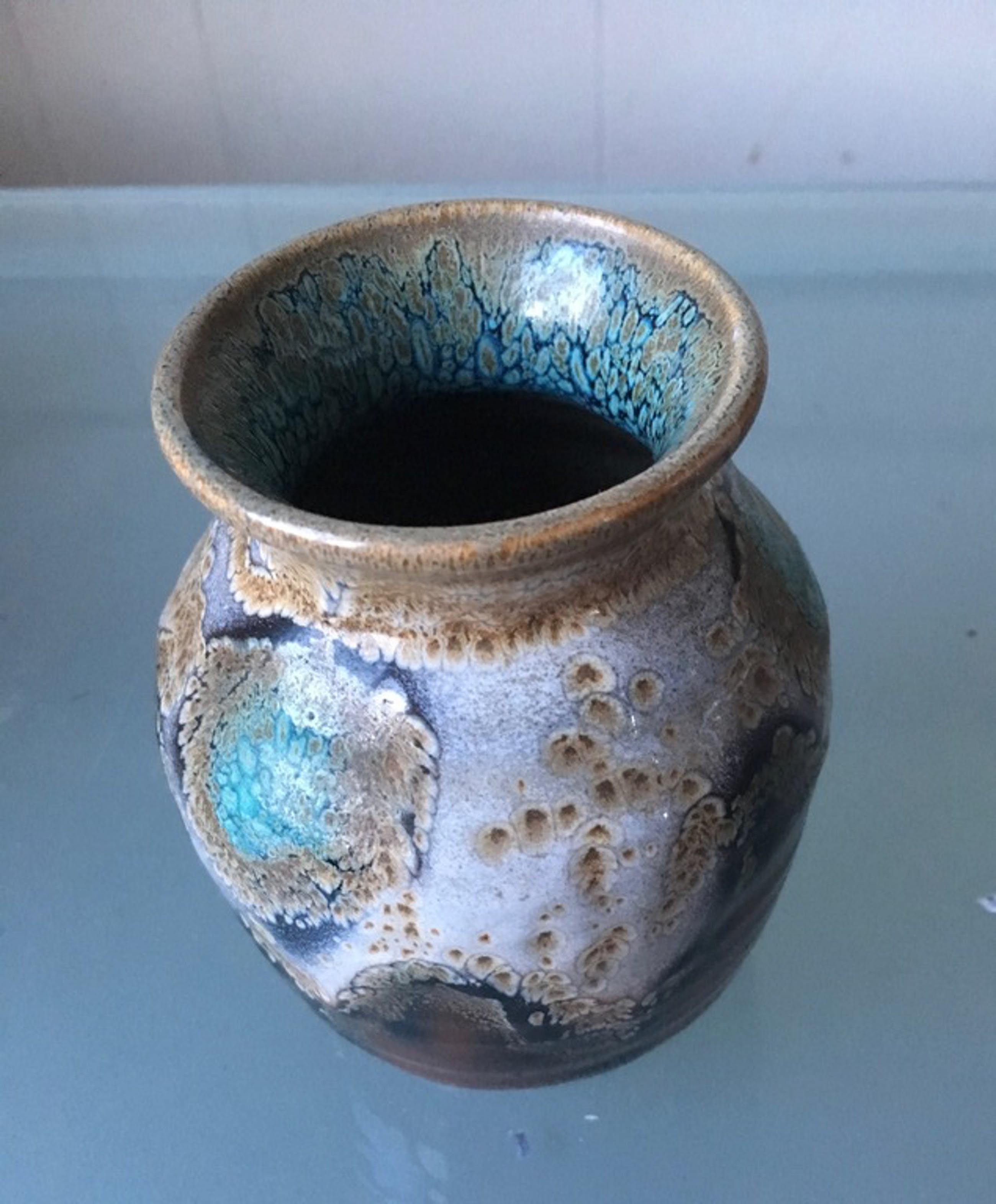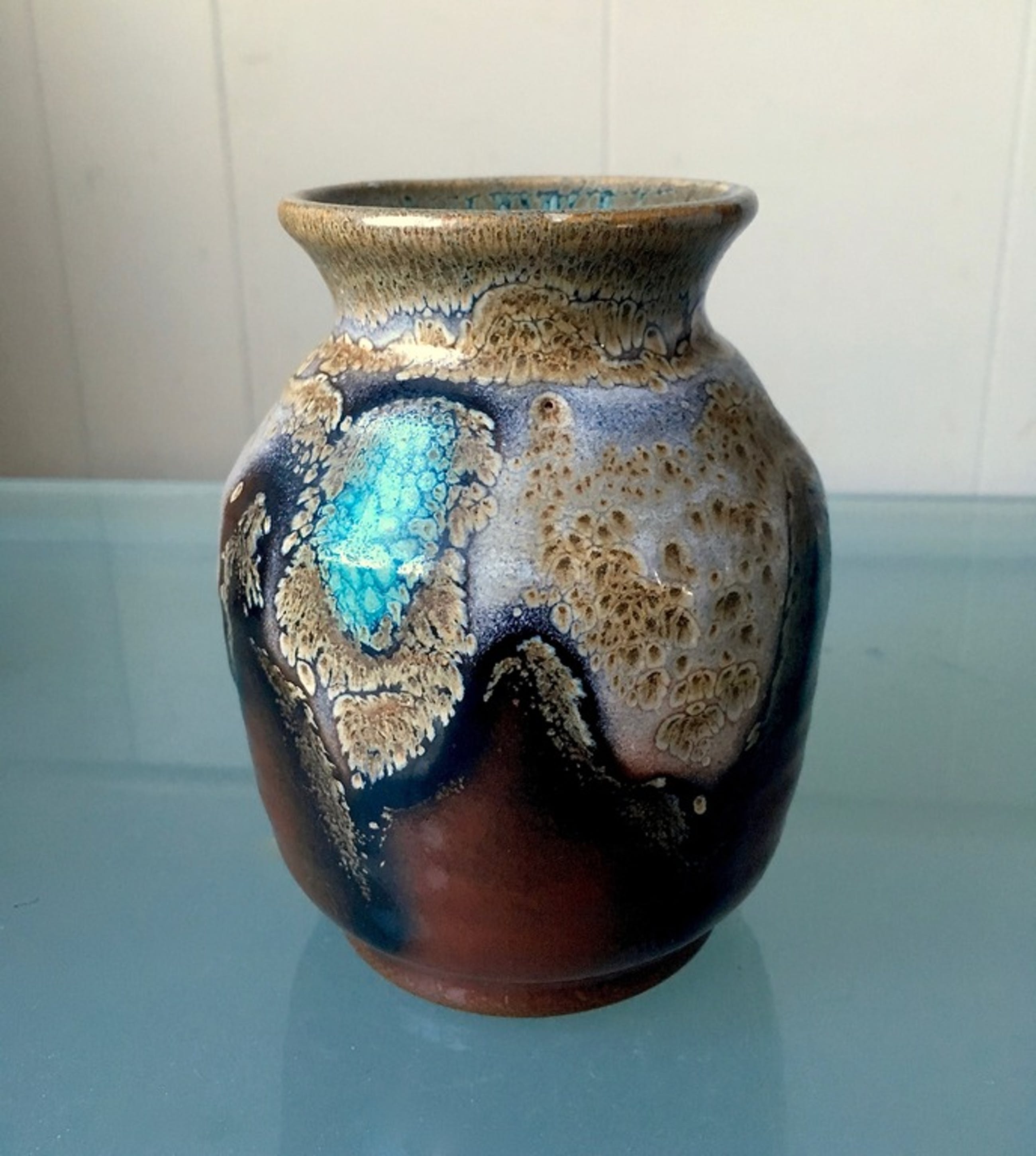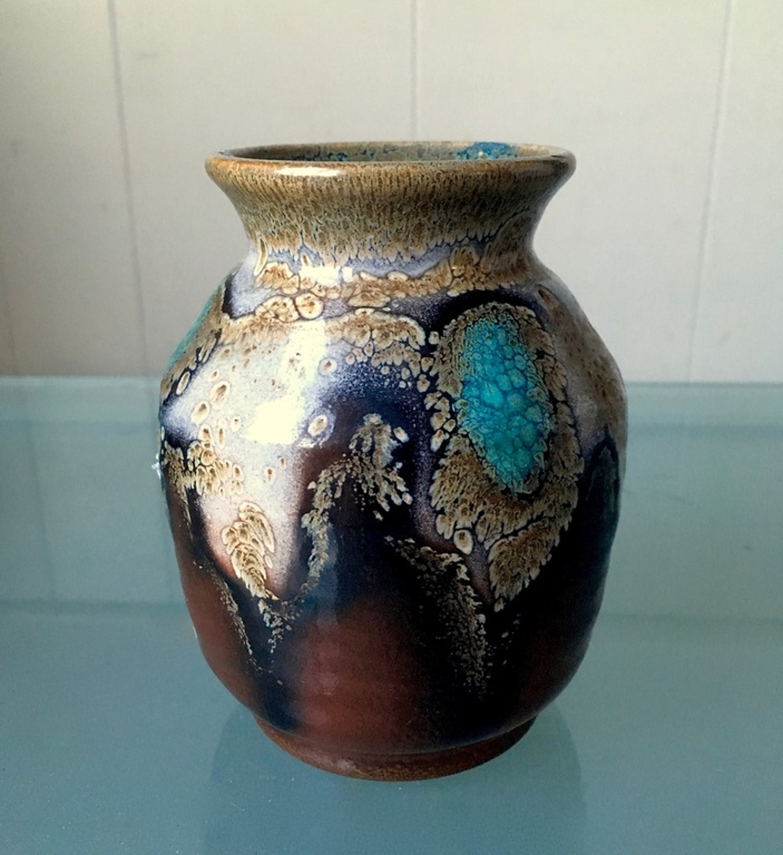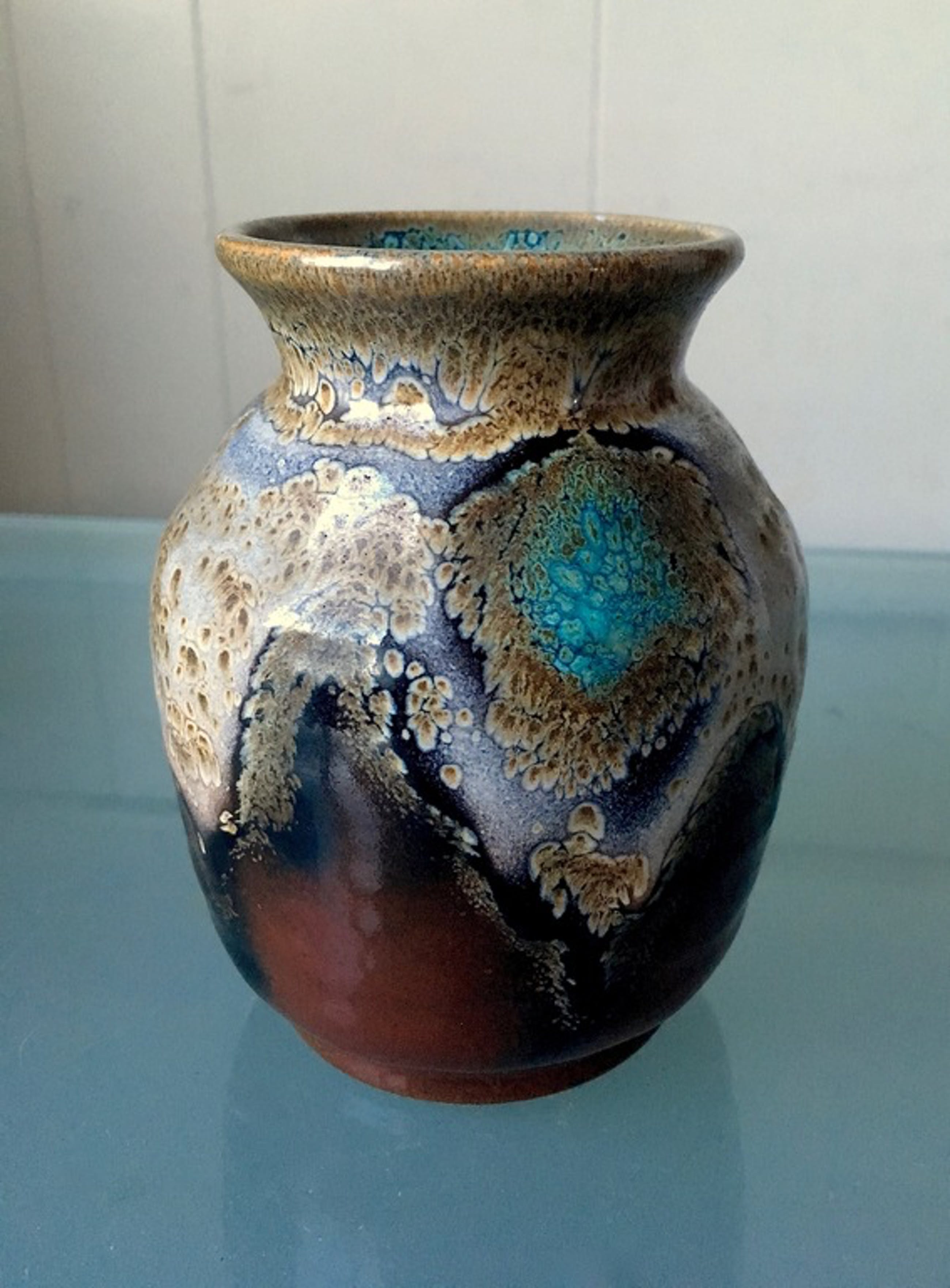 Plateelbakkerij Zuid Holland aardewerk vaas met decor "Muvelee". Gemerkt