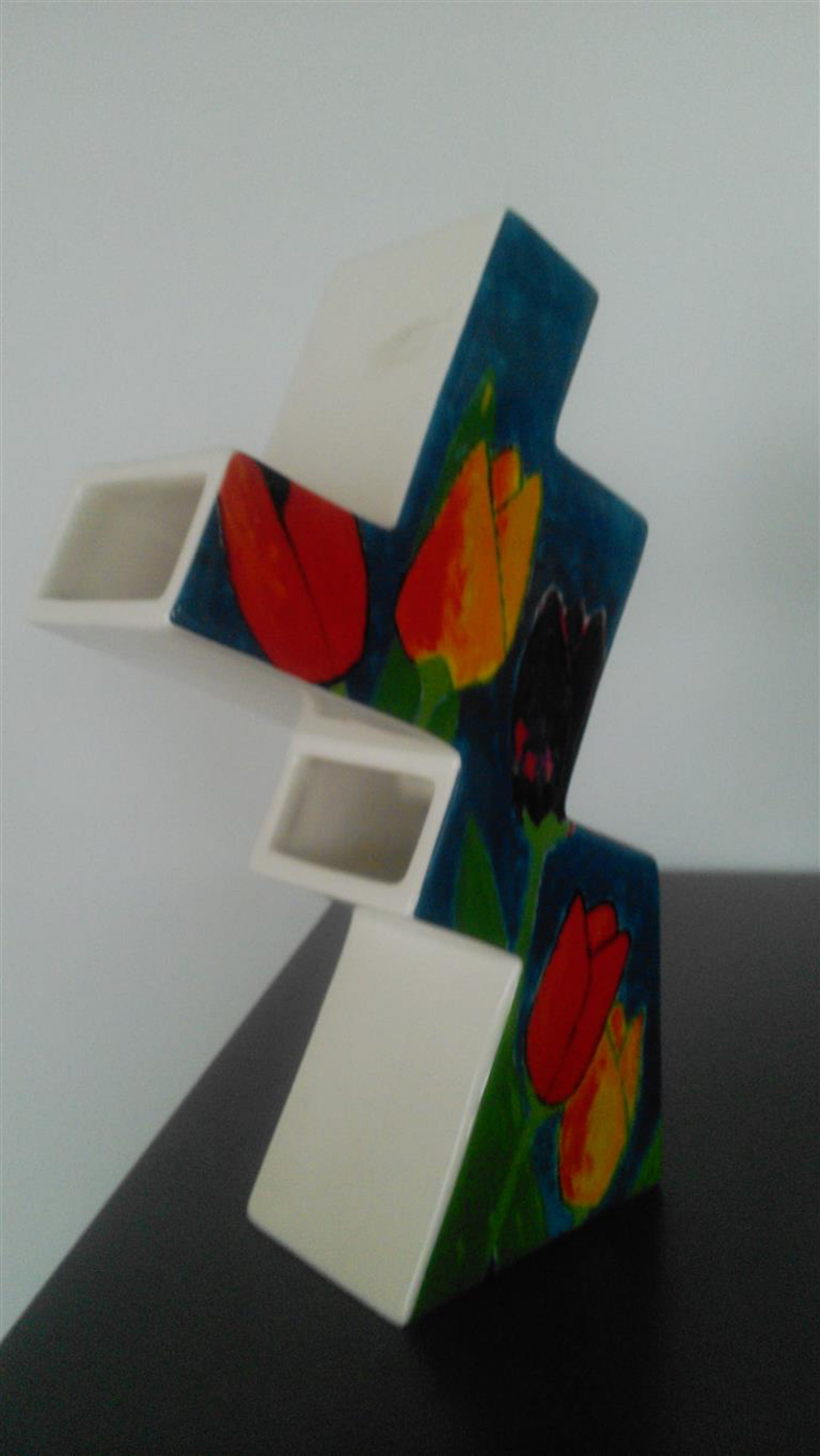 Moderne tulpenvaas met toepasselijke kleurige decoratie van Janine Lokhorst