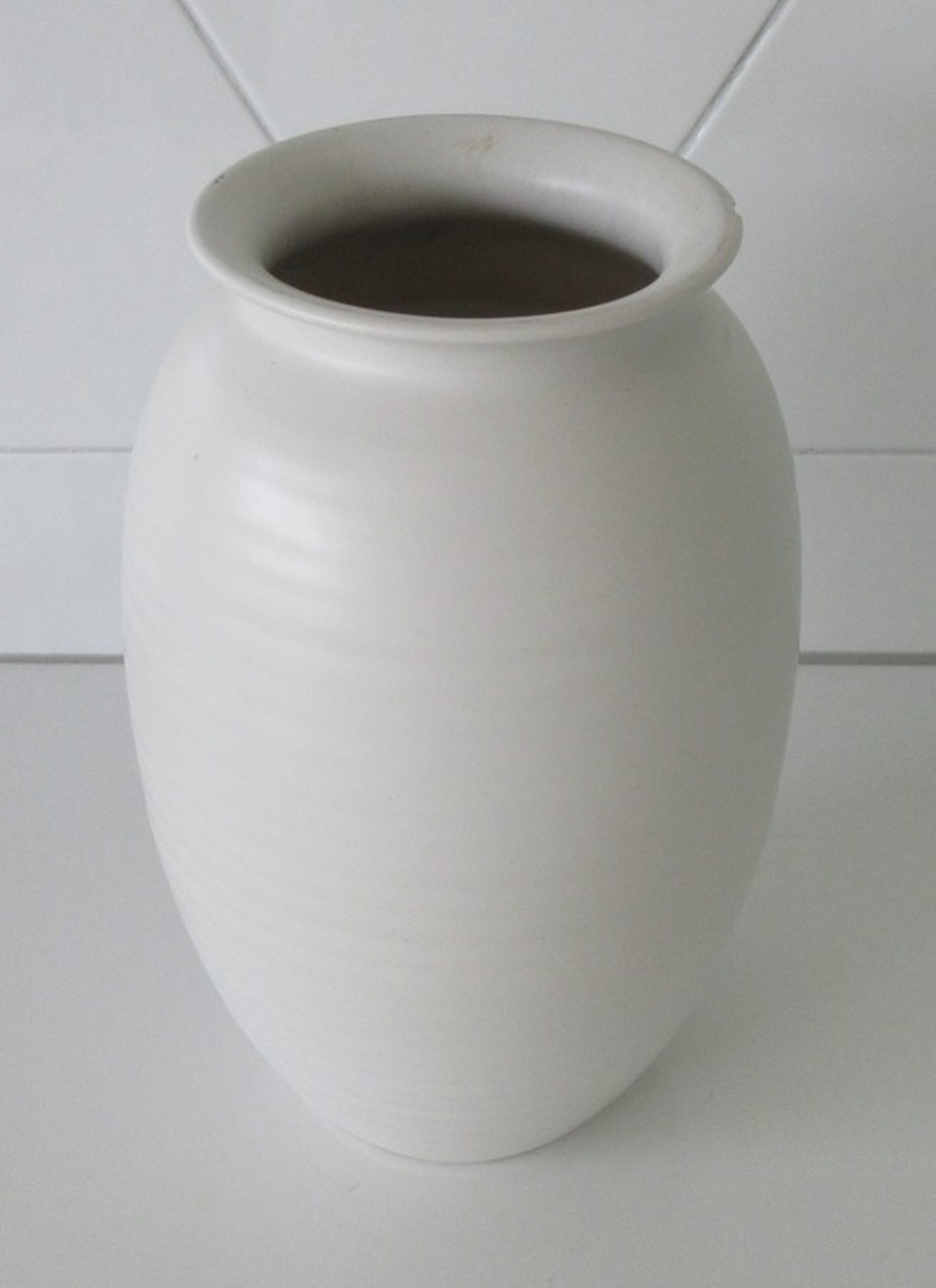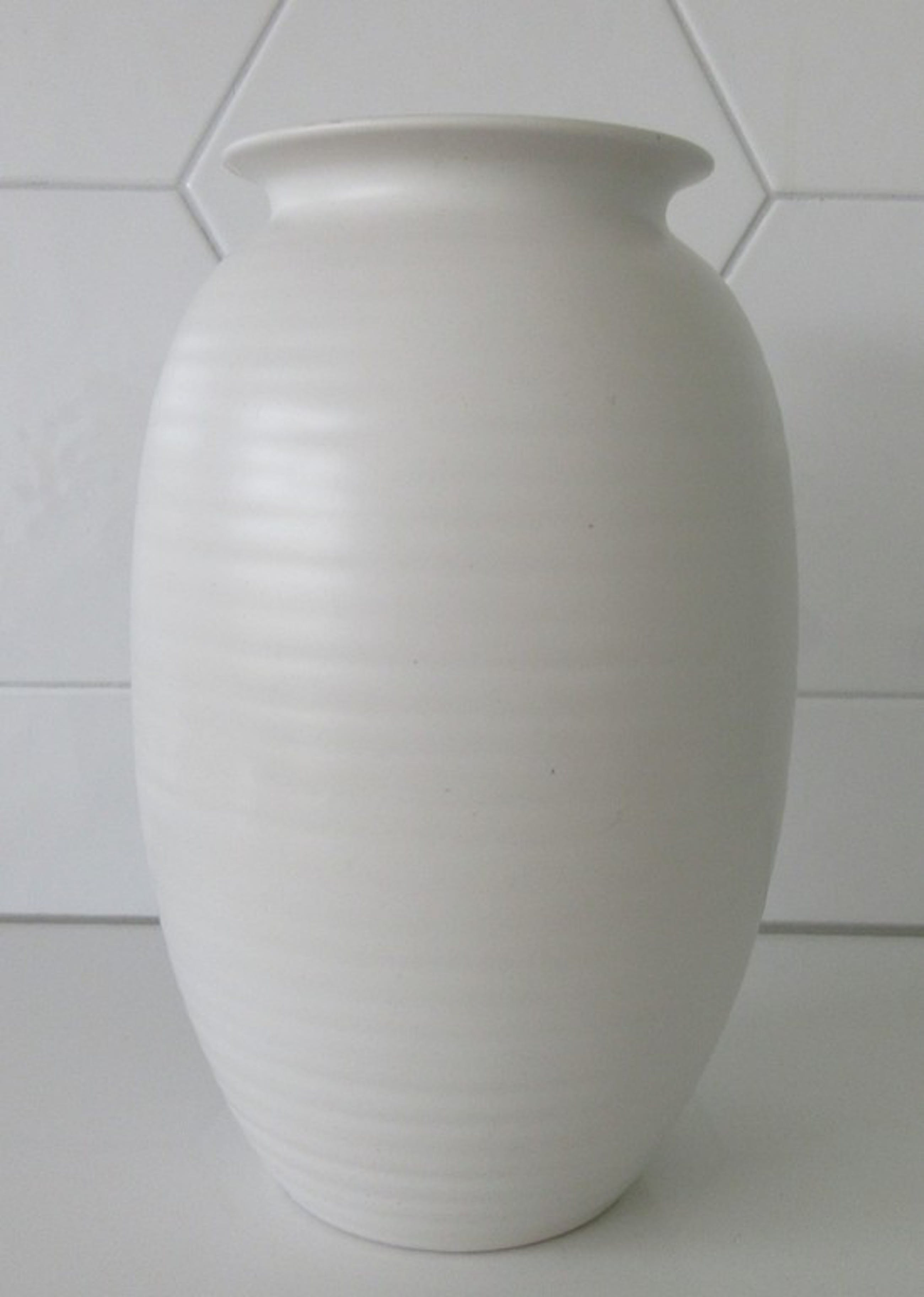 Plateelfabriek Schoonhoven - Witte art deco ribbelvaas, in goede conditie heeft alleen op de bovenrand een chipje. Aan de onderzijde gemerkt met een papieren sticker.