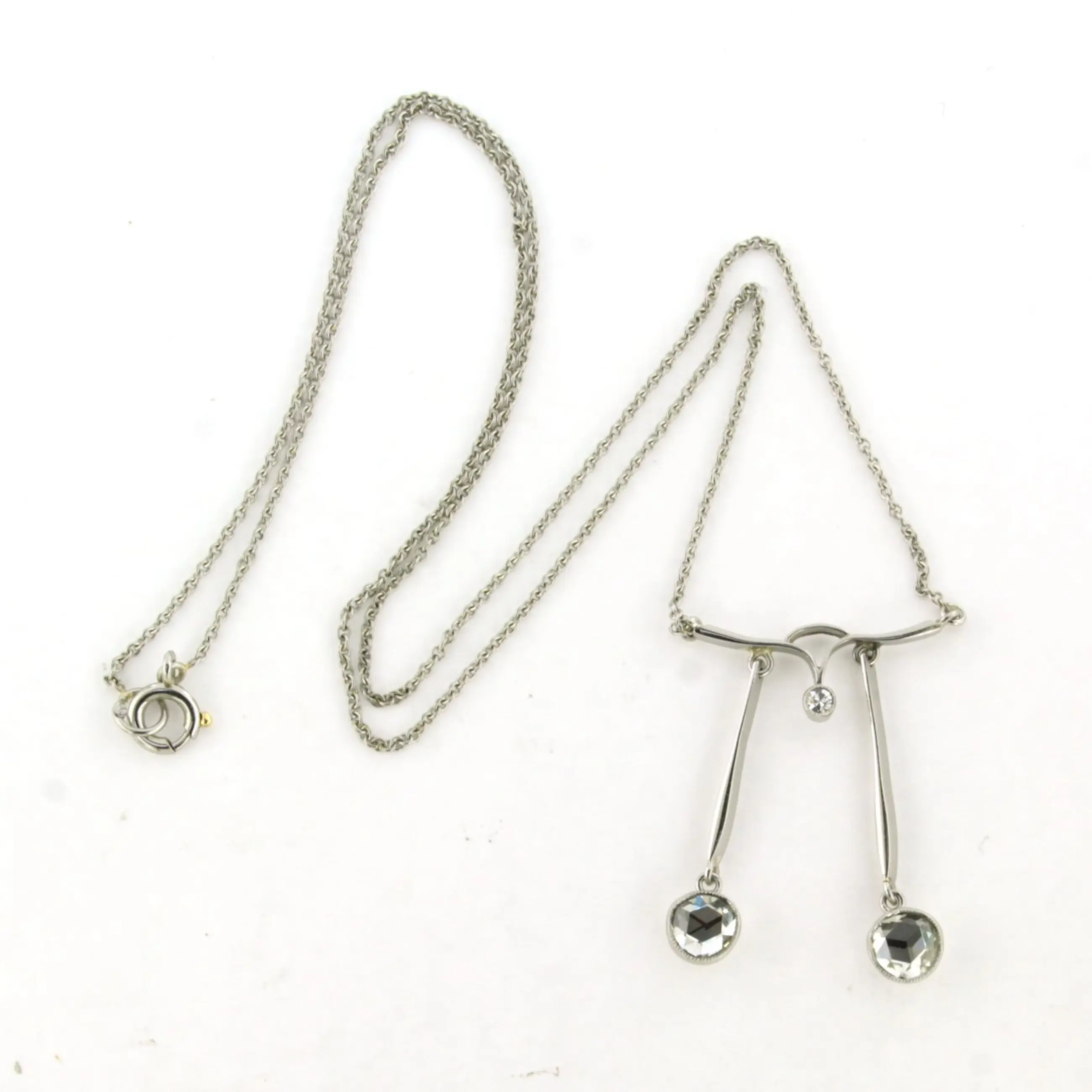 Platina collier met een middenstuk met roos single cut diamanten tot 0.92ct