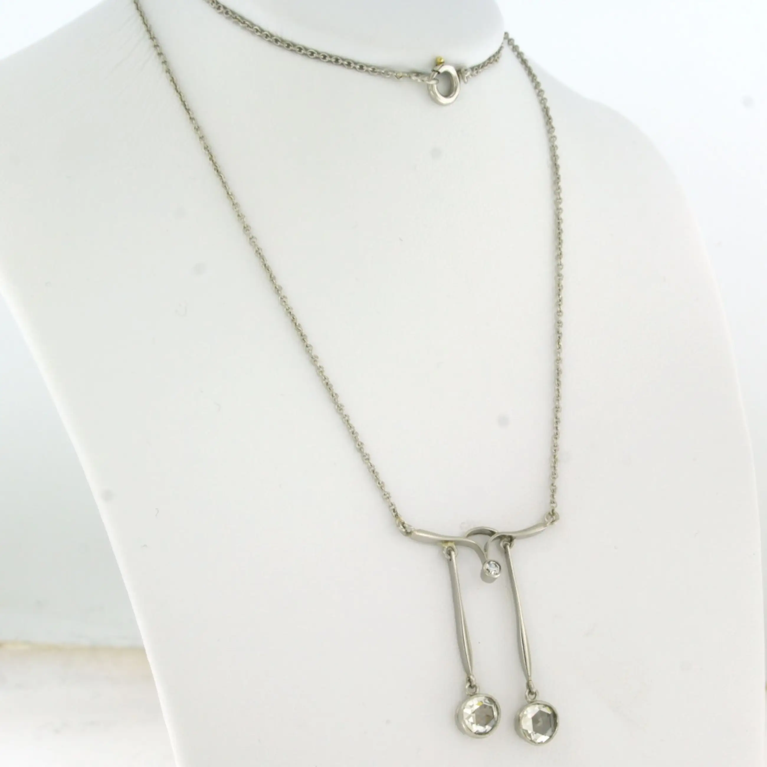 Platina collier met een middenstuk bezet met roos single cut diamanten tot 0.92ct - F/G - VS/SI - 42cm lang