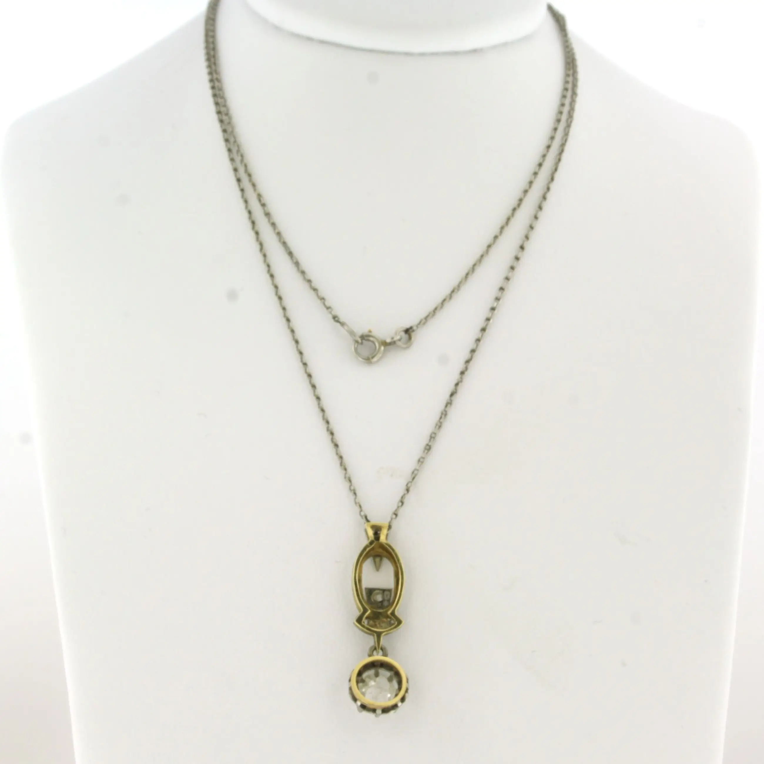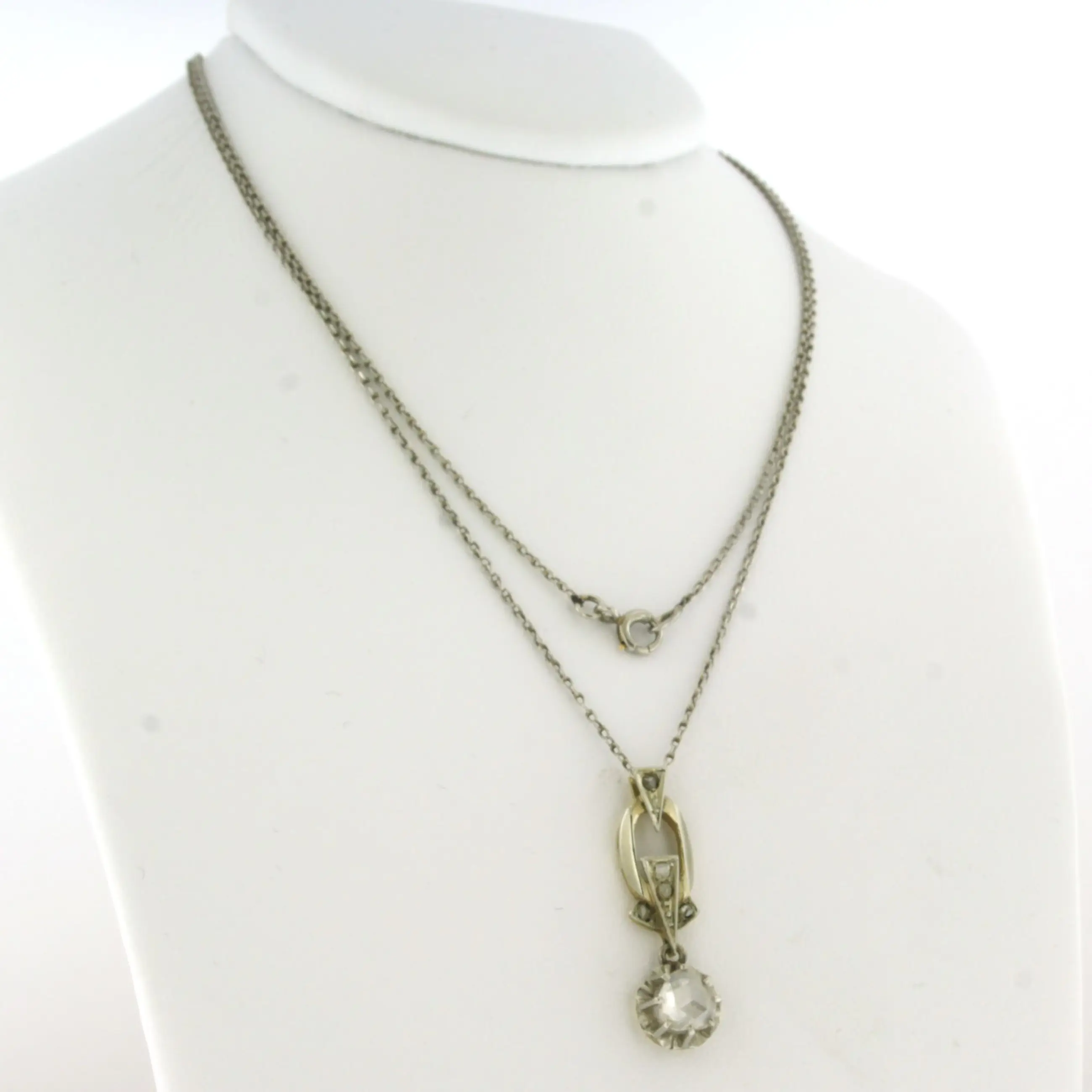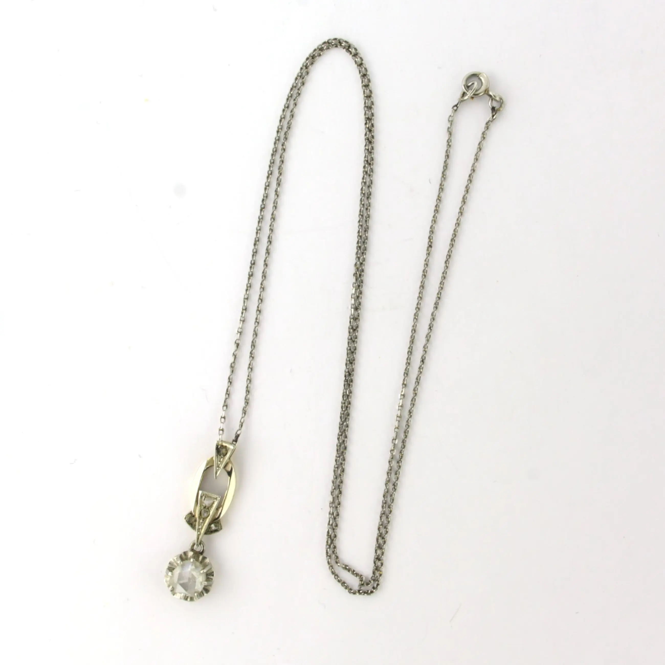Platina collier met 14k goud met platina hanger bezet met roos geslepen diamant 0.25 ct G/H SI - 50 cm