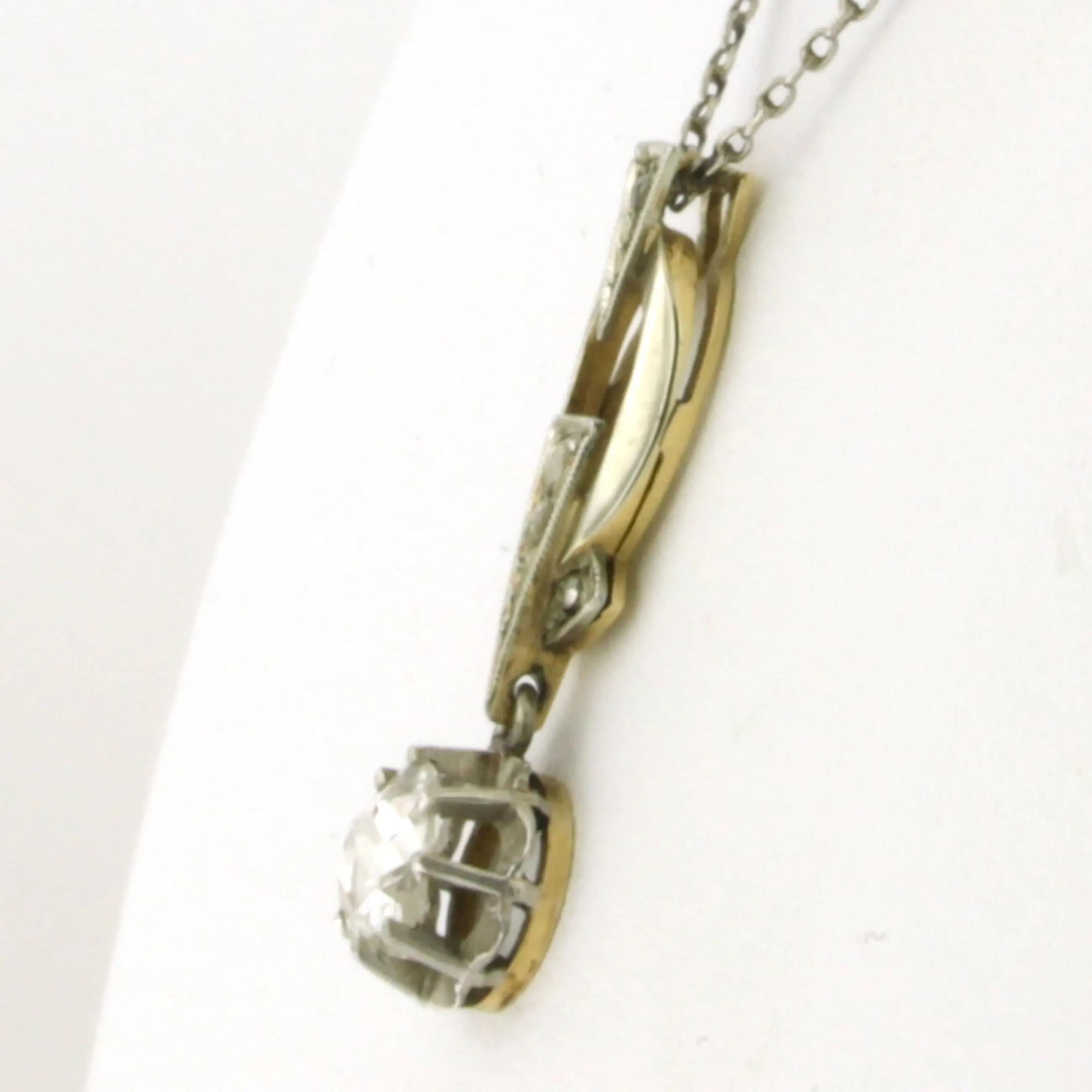 Platina collier met goud met platina hanger bezet met roos diamant 0.25ct