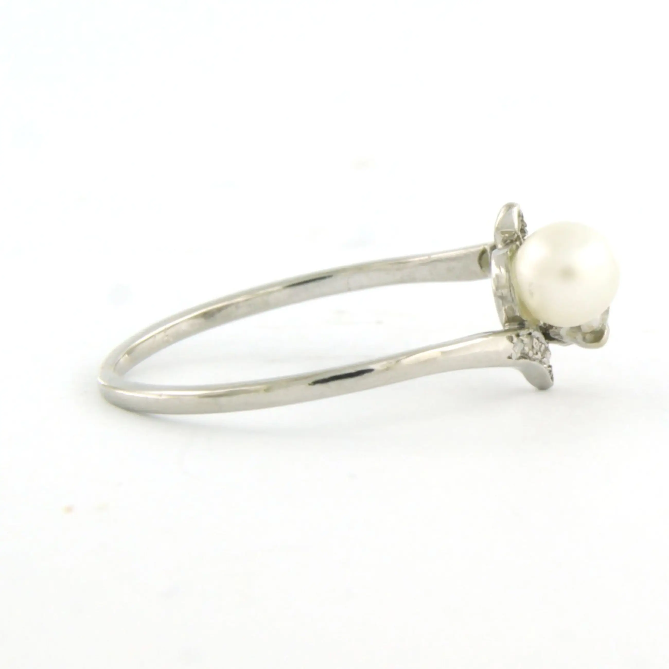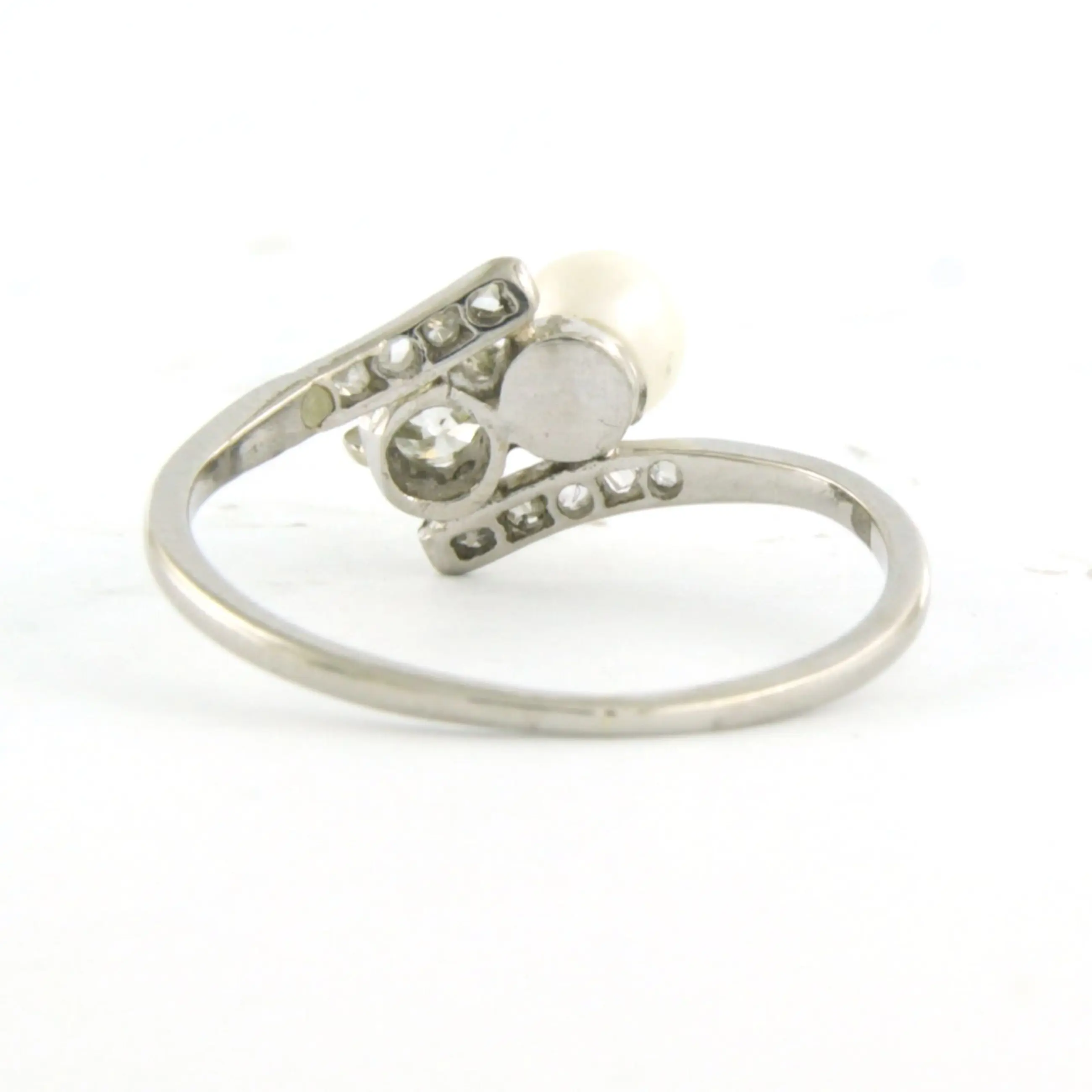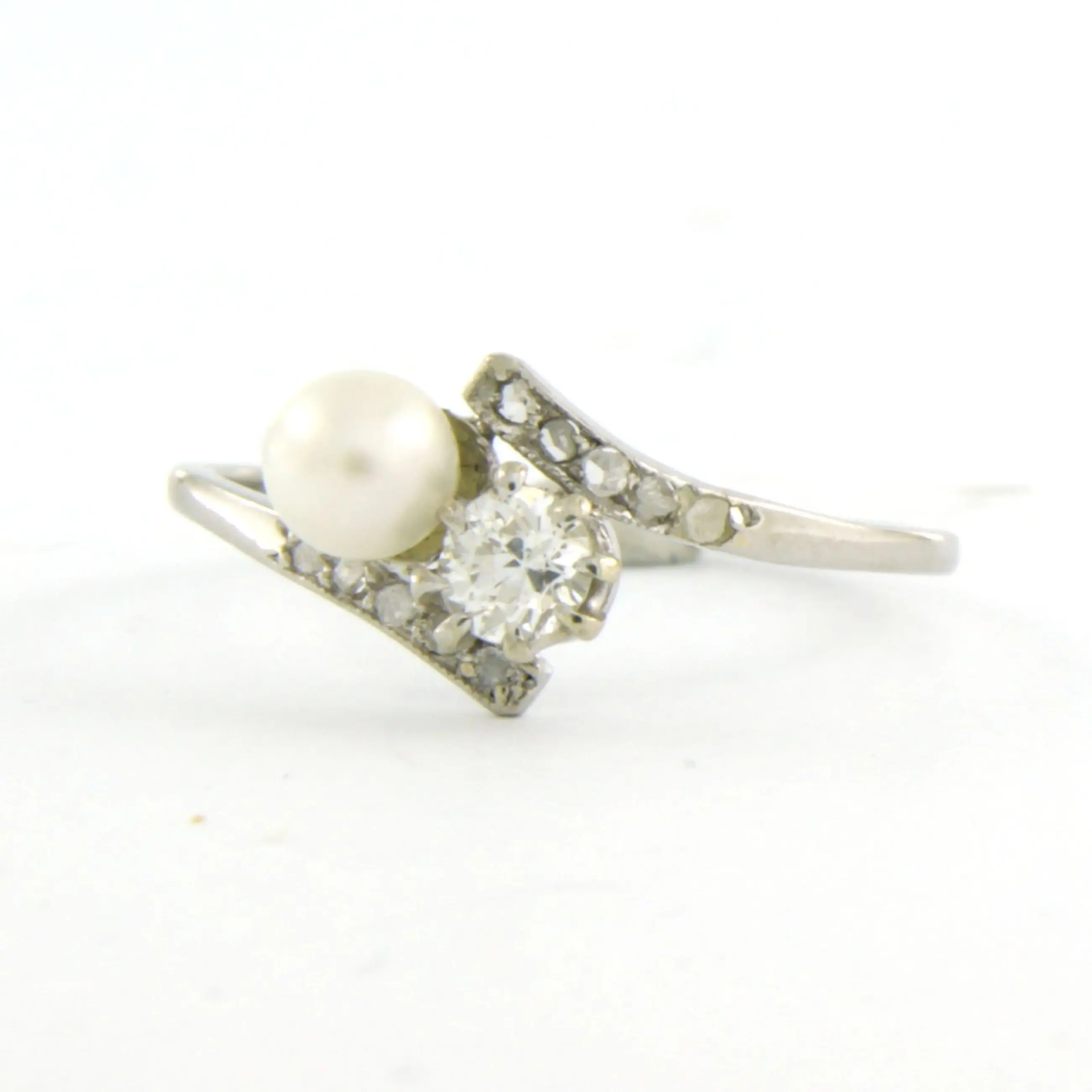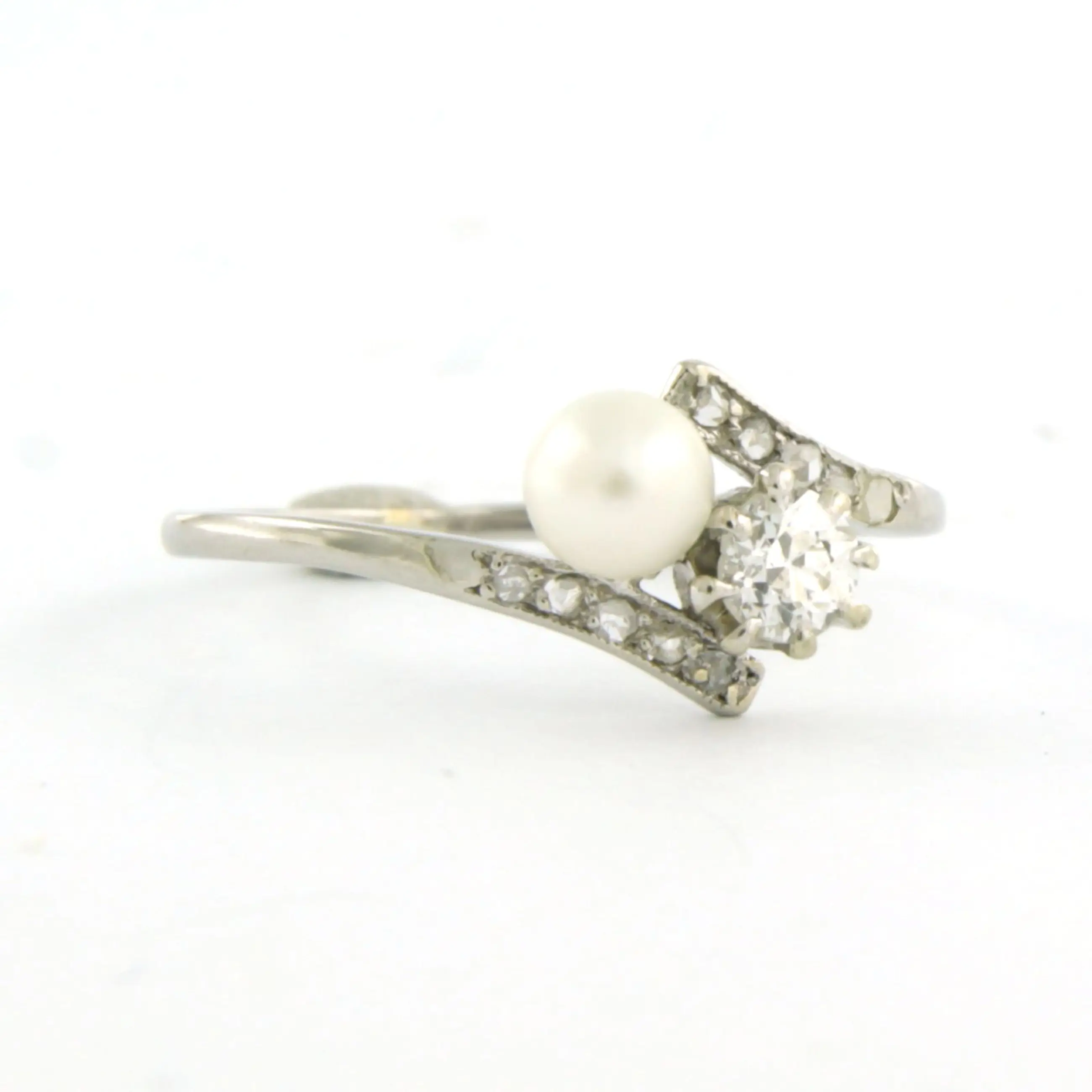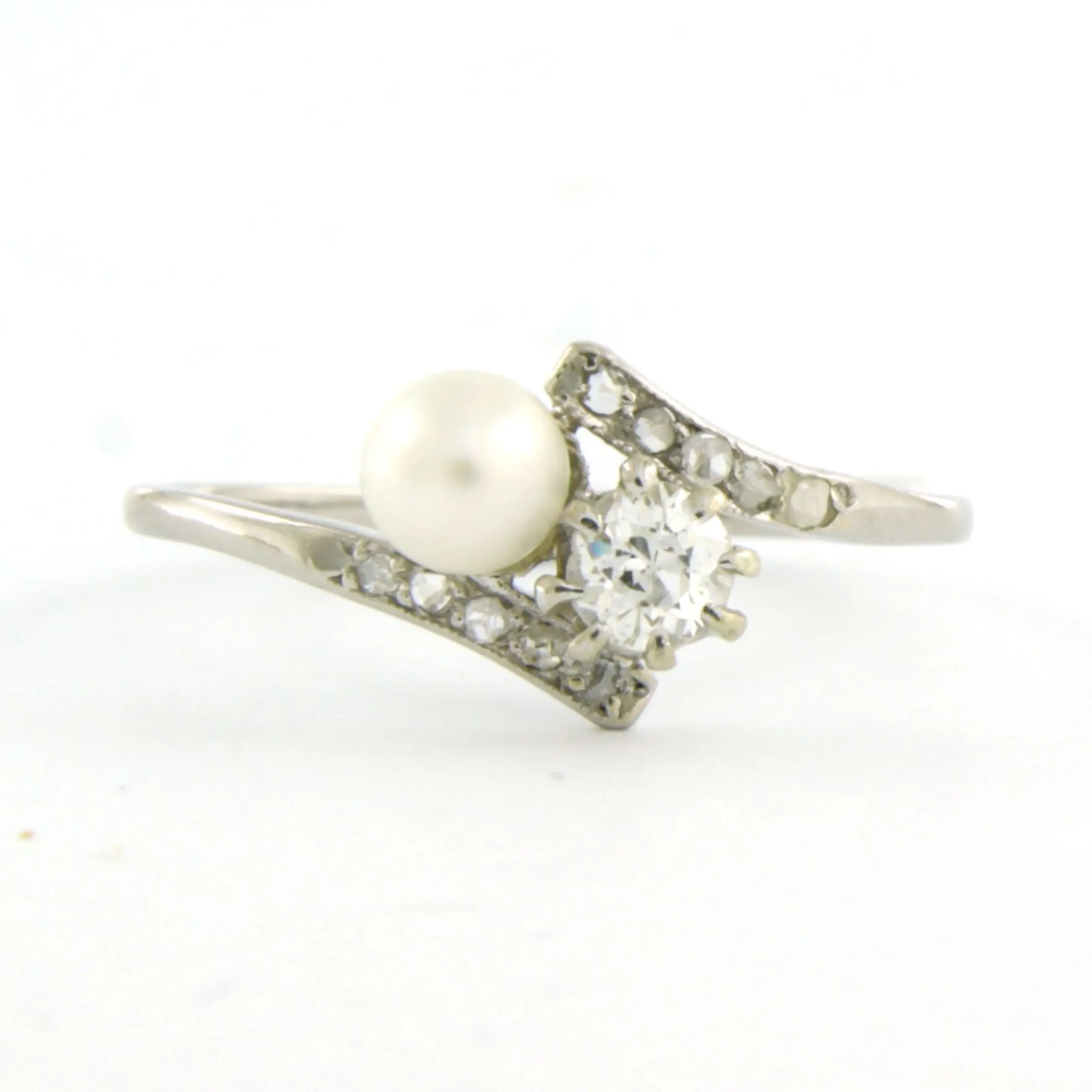 Platina slagring bezet met parel, old mine cut en roos geslepen diamanten tot. 0.20ct – G/H – SI – ringmaat 16.25(51)