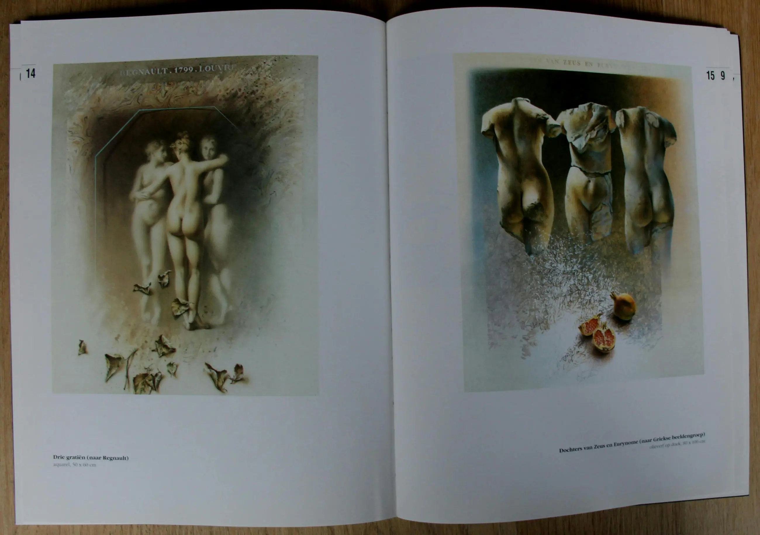 Afmetingen 2e boek: H27.5 x b21cm. Titel: "de drie gratiën''. Jaar: 1992. Uitgegeven door Galerie bonnard. Aantal blz: 31.