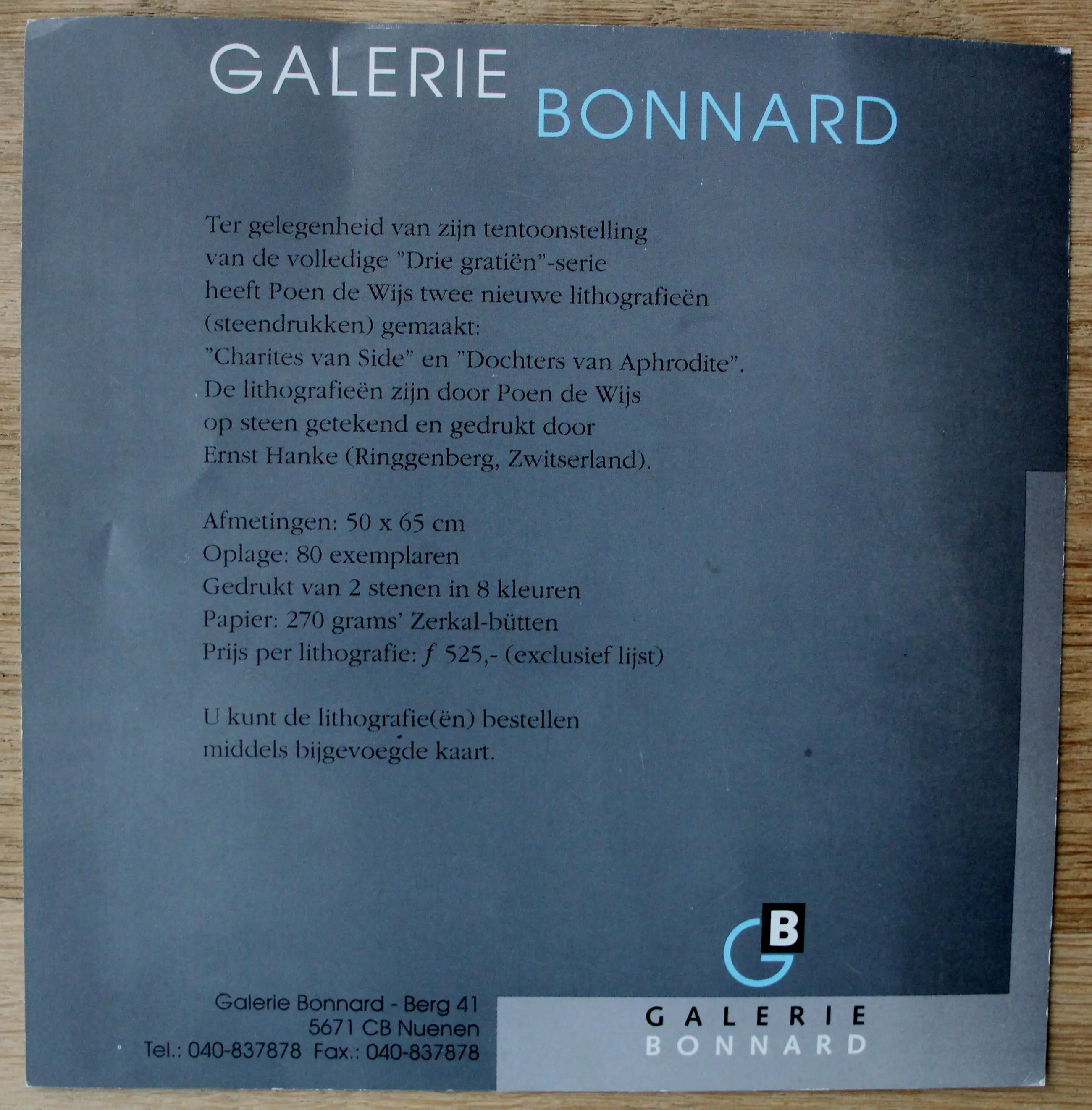Ingelijste litho van Poen de Wijs. Titel: Dochters van Aphrodite. Oplage: 8/80. Afmetingen incl lijst: H89 x b71cm. Afmetingen per doek: H67 x b48cm. Het werk is rechts onderaan gesigneerd door de kunstenaar. De authenticiteit van het aangeboden werk wordt volledig gegarandeerd. Een certificaat van echtheid kan, op aanvraag, worden gemaild.