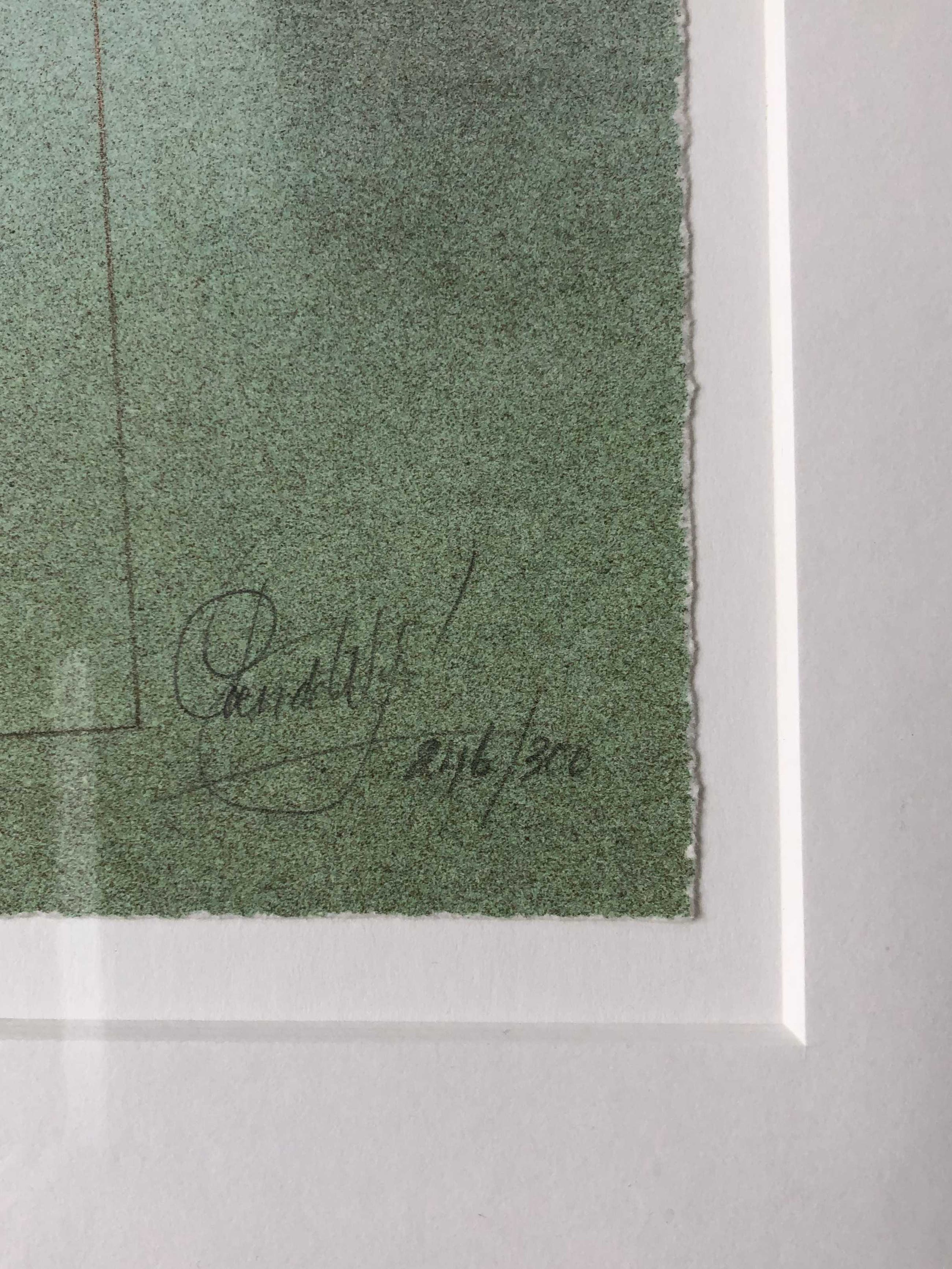 Steendruk op geschept papier, met potlood gesigneerd en genummerd rechtsonder. Professioneel ingelijst.