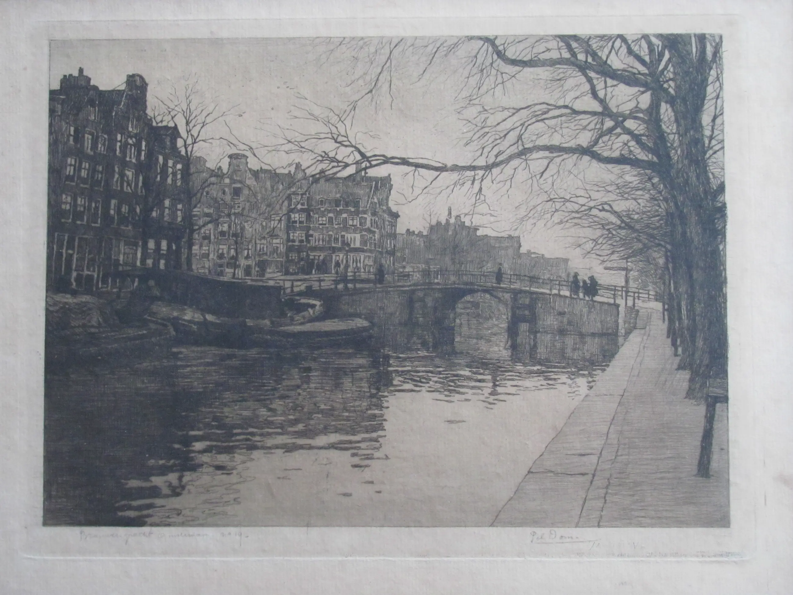 Ets van Pol Dom. Getiteld met potlood: Brouwersgracht Amsterdam Genummerd met potlood: no. 19 Gesigneerd met potlood: Pol Dom