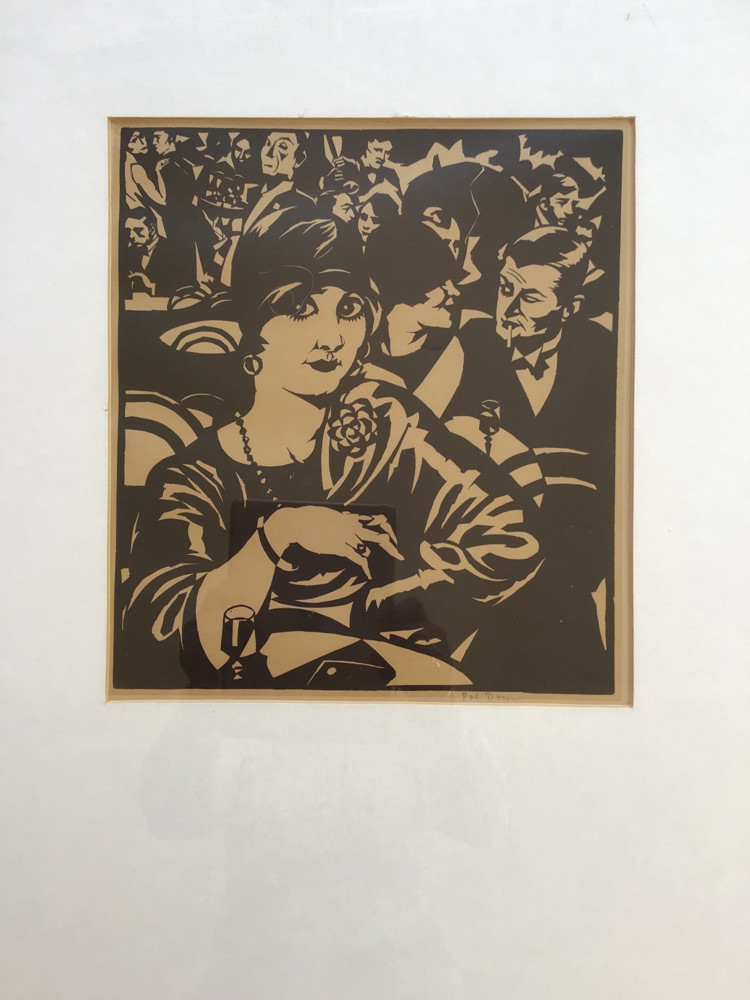 Vrij zeldzame linosnede in twee kleuren van Pol DomCafésceneAfmetingen totaal in alulijst 66x51cmMet potlood gesigneerdPasse-partout heeft licht vochtrandje onderinDoor glas gefotografeerdWordt aangetekend verzonden.Ophalen heeft voorkeur