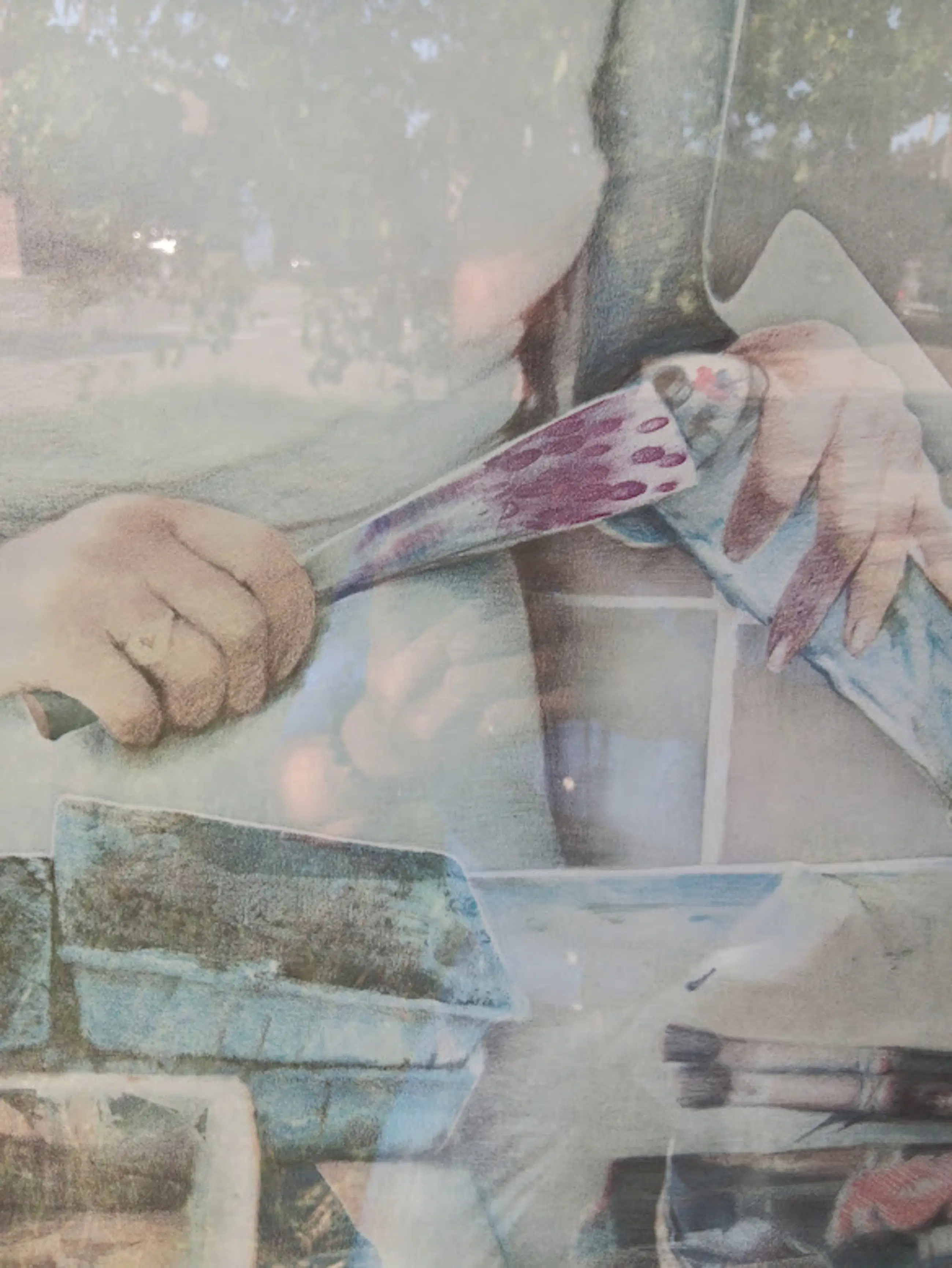 Het werk toont een dromerig, haast surrealistisch vrouwelijk portret, opgebouwd uit verschillende beeldlagen met fotografische en schilderachtige elementen — kenmerkend voor Mara's unieke combinatie van hyperrealisme en poëzie.