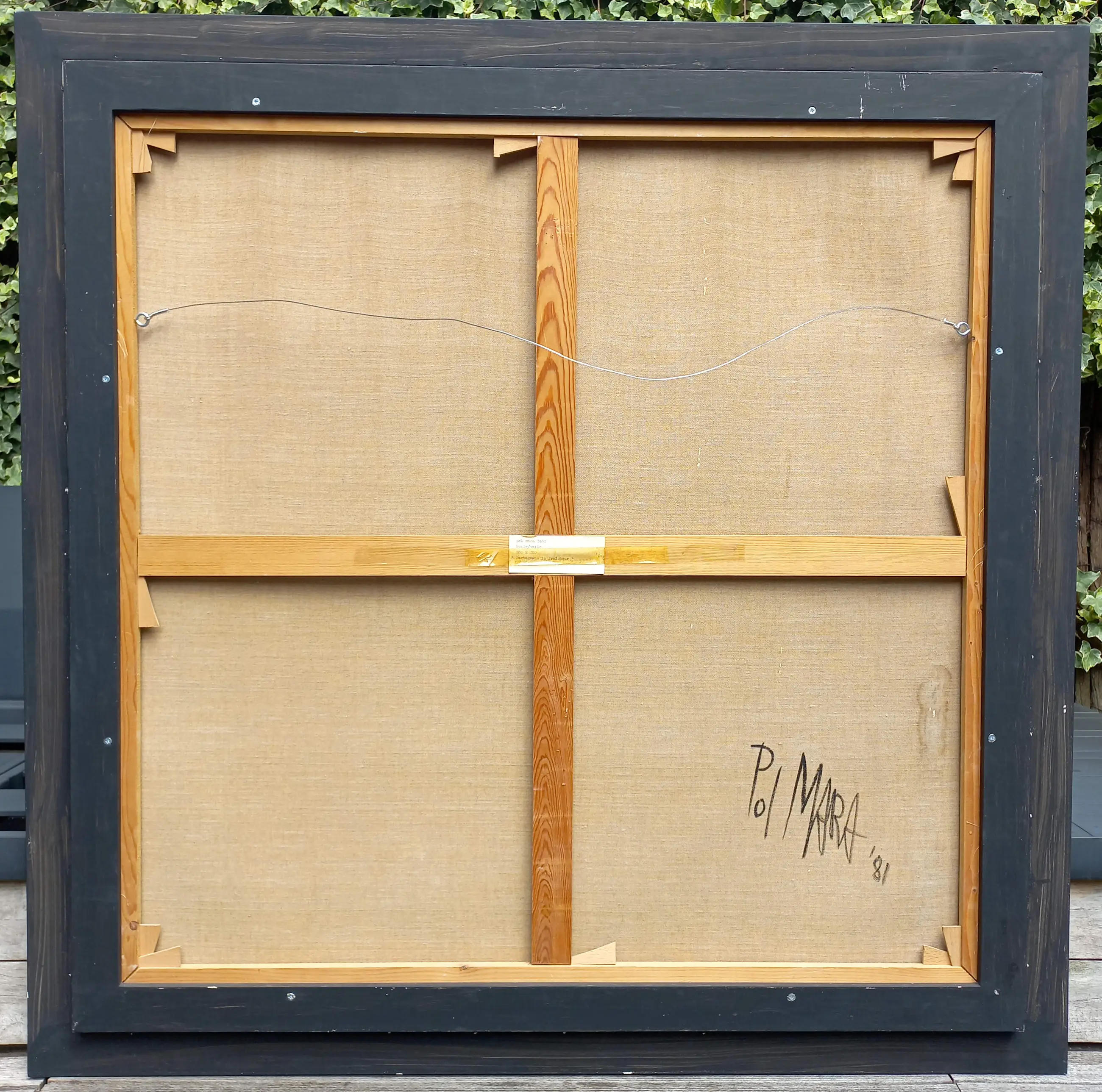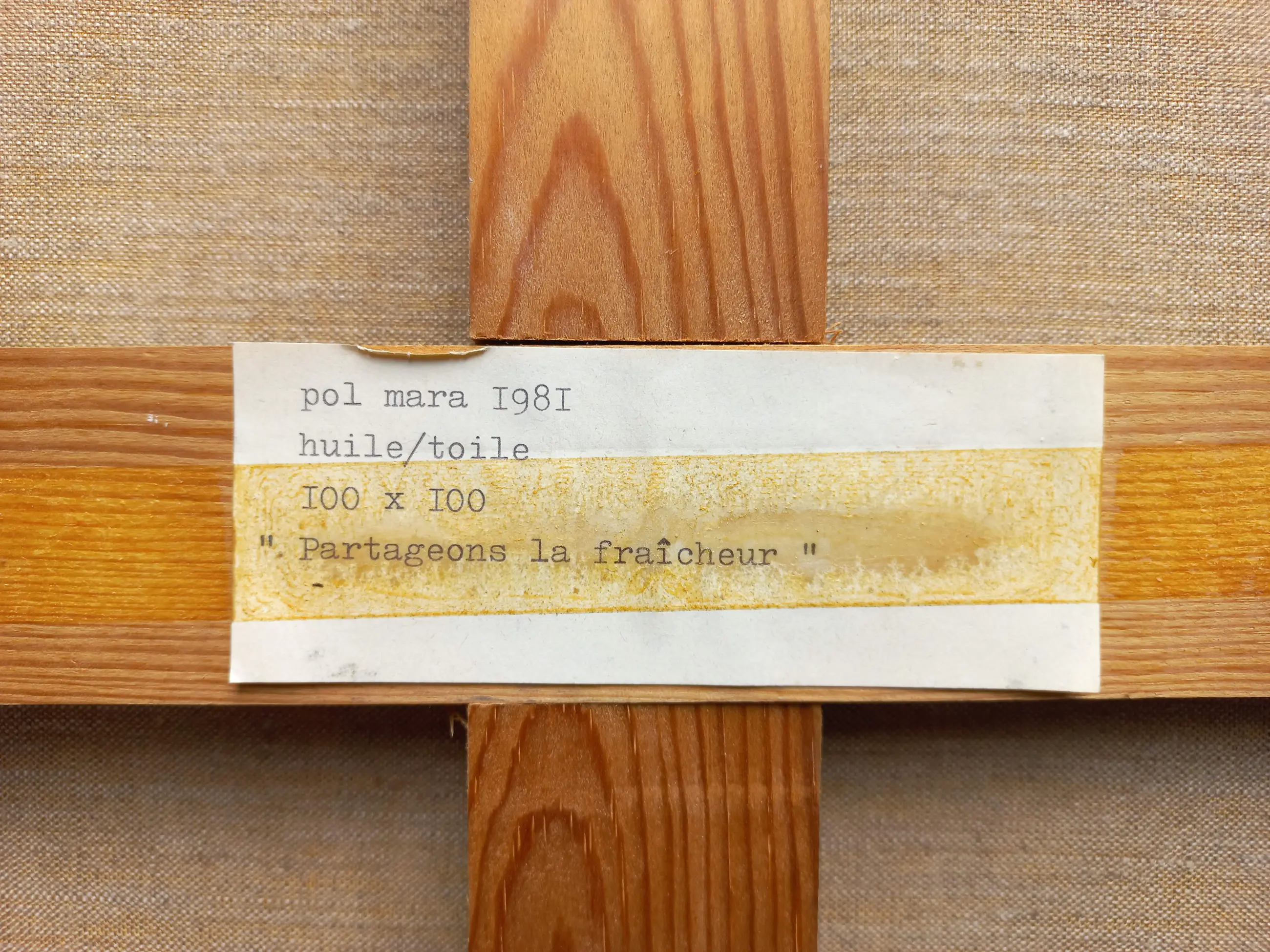 Mooi, karakteristiek werk van Pol Mara uit 1981. Olieverf op doek, achterop gesigneerd en gedateerd en met titel op een etiket. Alles in goede conditie.