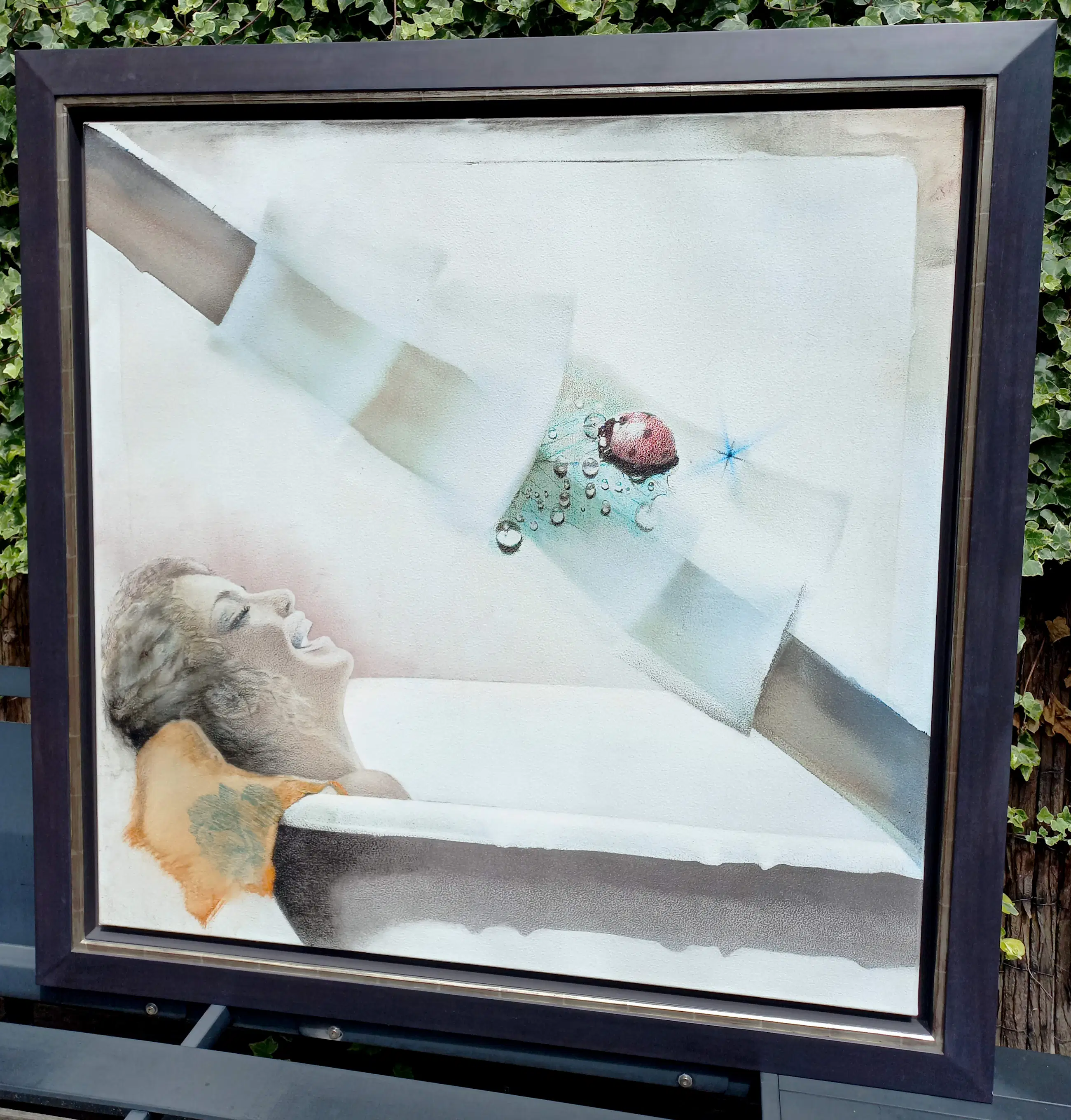 Afmetingen: 116cm x 116cm (incl. lijst), 100cm x 100cm (doek)