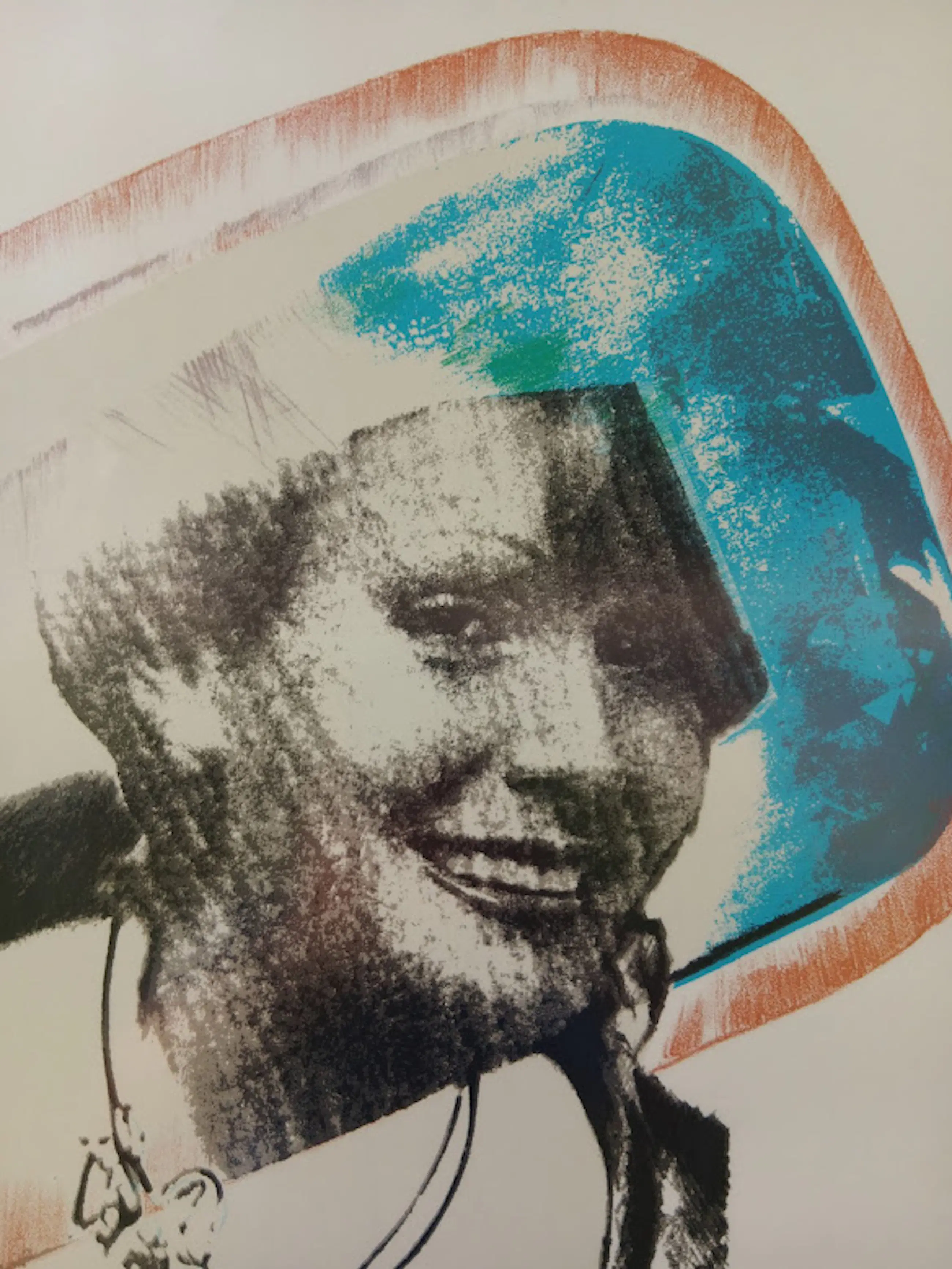 Dit werk uit 1976 toont perfect zijn kenmerkende stijl waarin fotografie, grafiek en schilderkunst in elkaar overvloeien. De afbeelding van een jonge vrouw, gecombineerd met transparante kleurvlakken in blauw en rood, creëert de dromerige, poëtische sfeer waarvoor Mara internationaal bekend werd.
