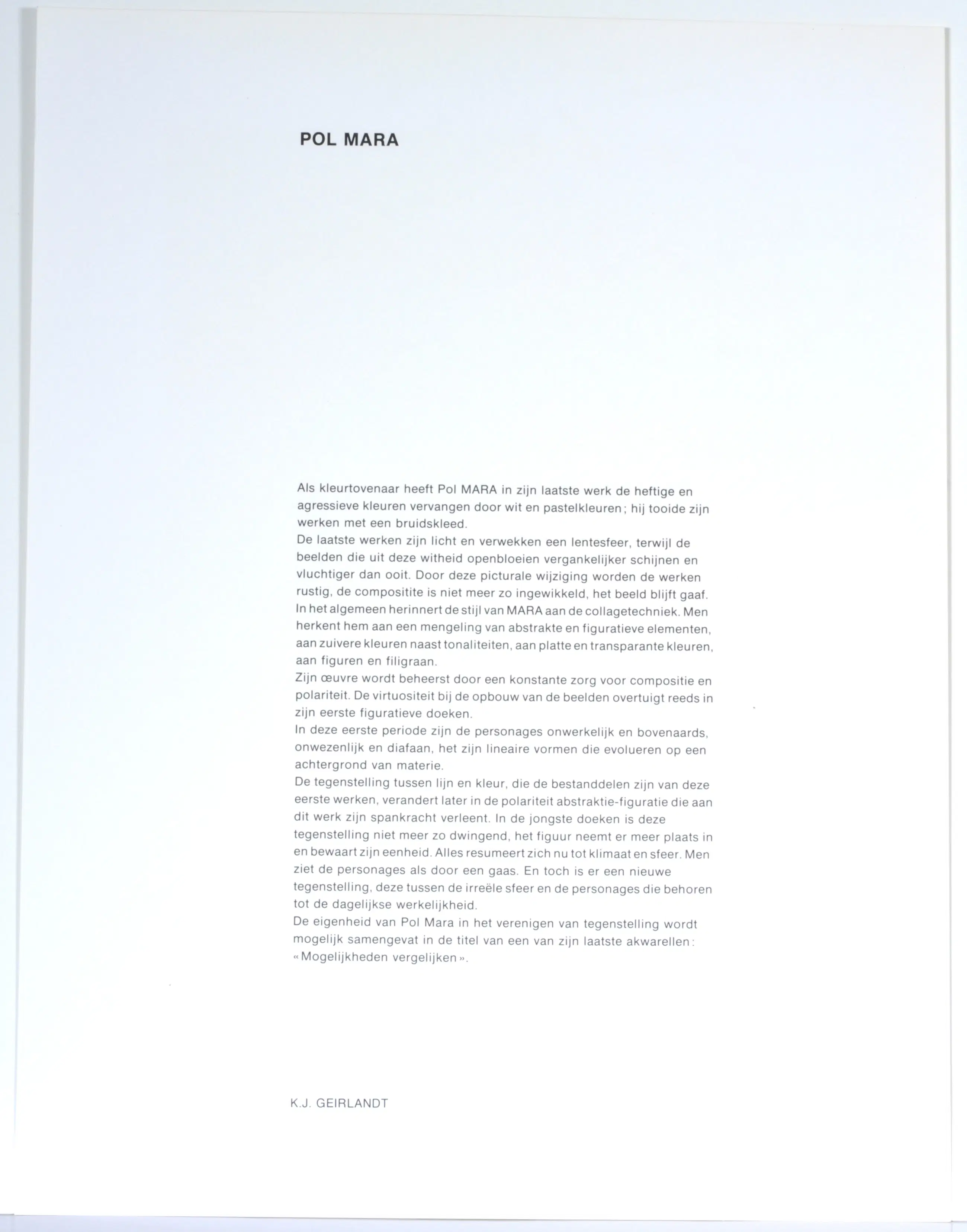 Bijgevoegd: bijhorende tekst van Karel Geirlandt op een afzonderlijk blad