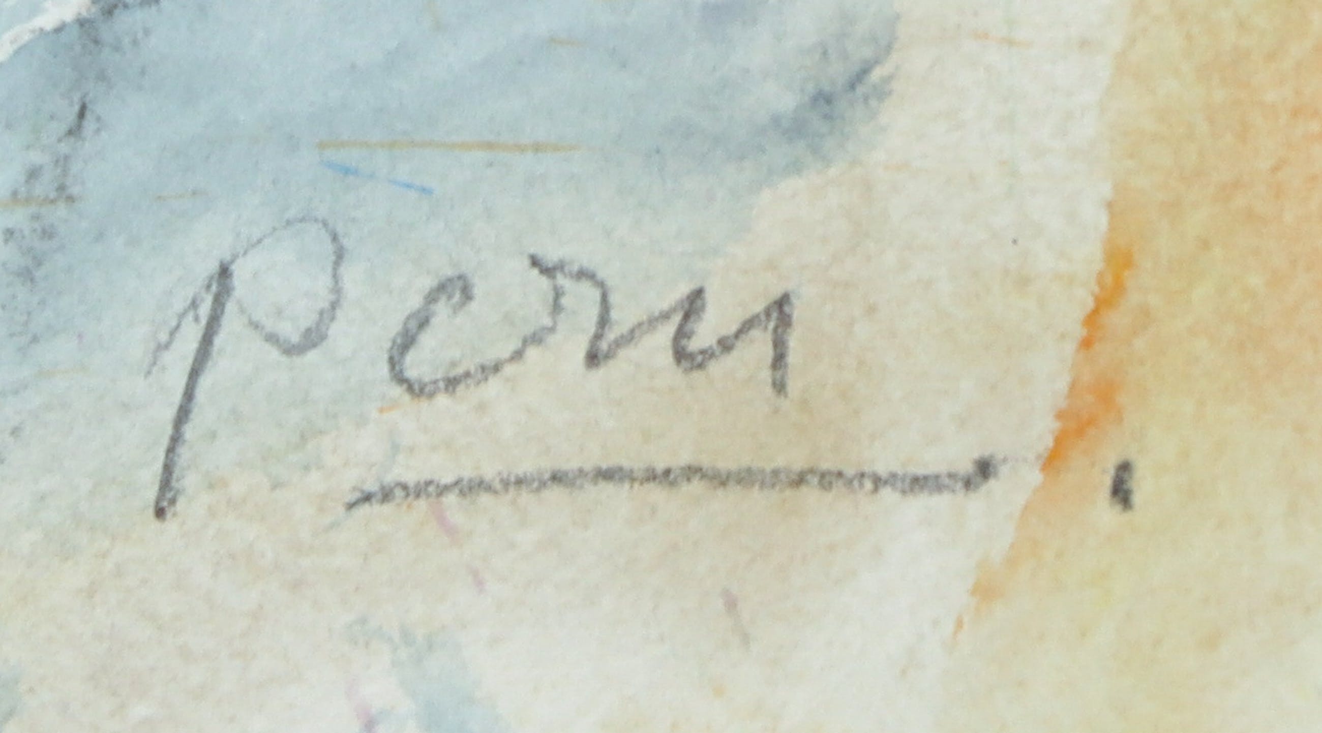 Het blad heeft langs de randen een rand tape waarmee het aan een lijst/passe-partout bevestigd is geweest. | |||