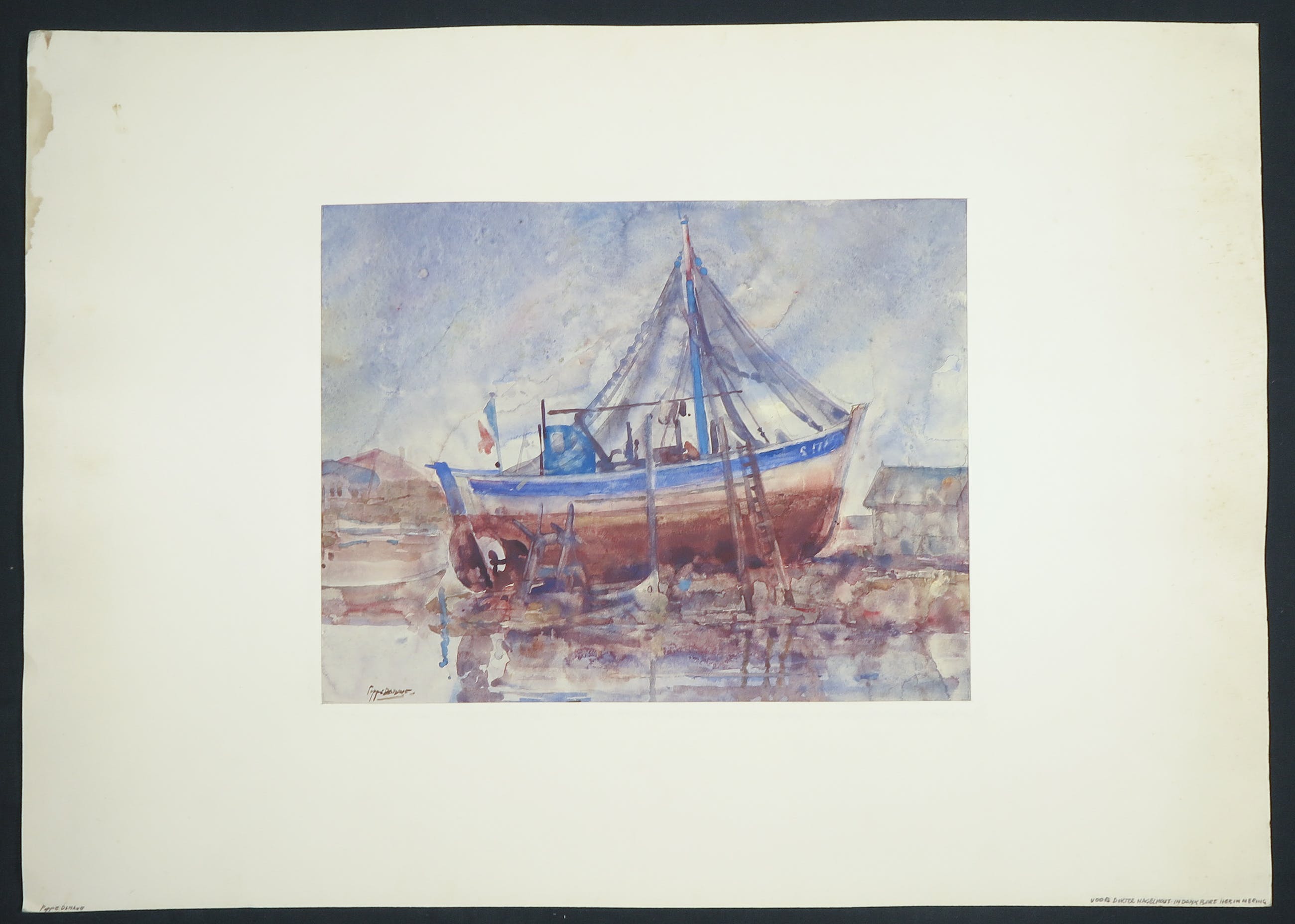 Er lijken wat lichte verkleuringen en vlekjes in het papier (het werk) te zitten, maar mogelijk is dit deels onderdeel van de voorstelling. Het passe-partout is wat verkleurd en bevat vlekjes. | |||||||||||