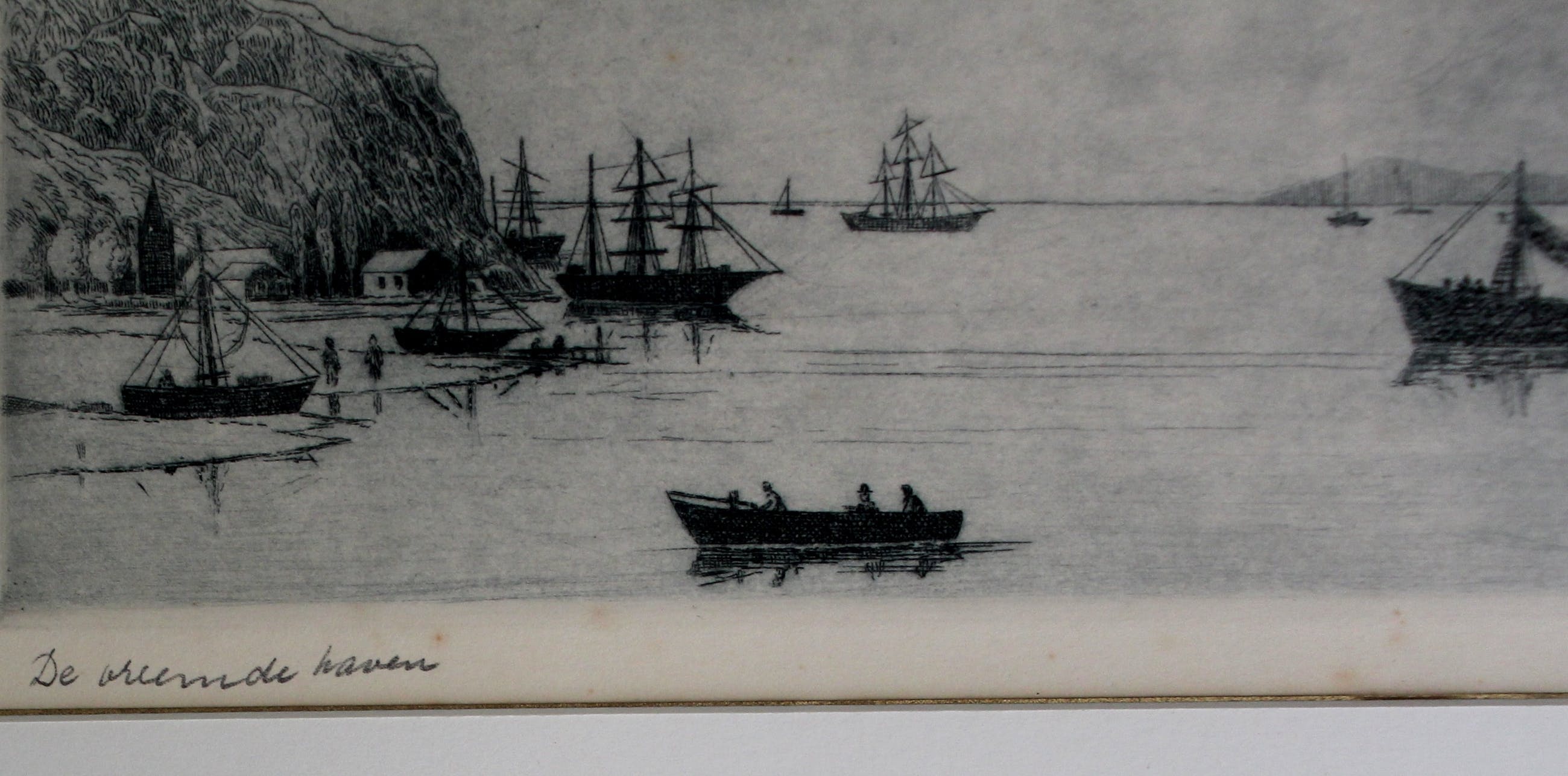 De voorstelling is in zeer goede staat. De passe-partout is vuil aan de onderzijde. Er zitten wat oxidatiestipjes op de witte onderzijde. | |||