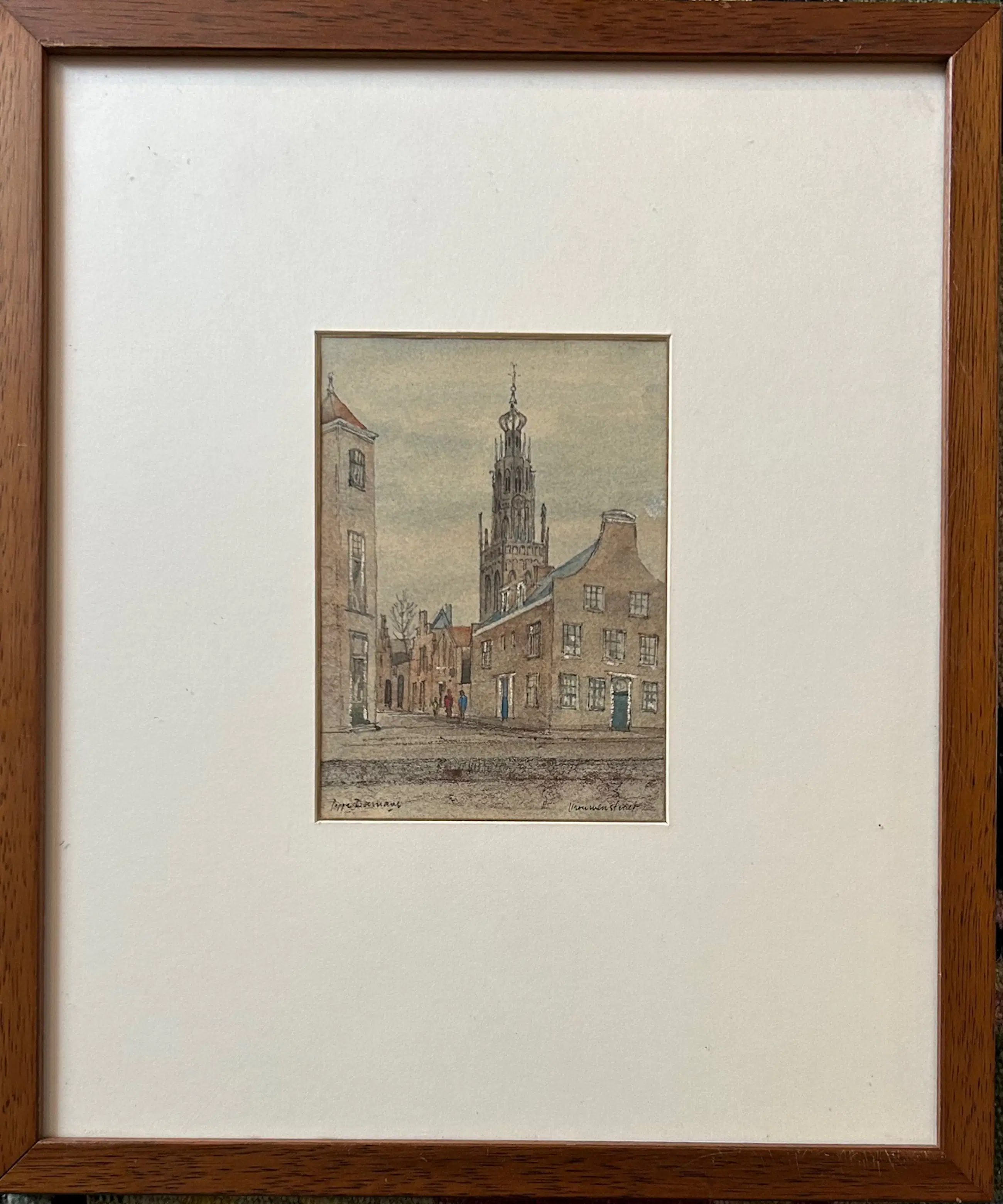 Prachtige tekening. Ingekleurd met wit hooglicht. Goed ingelijst. Kan zo aan de muur. Zie foto's