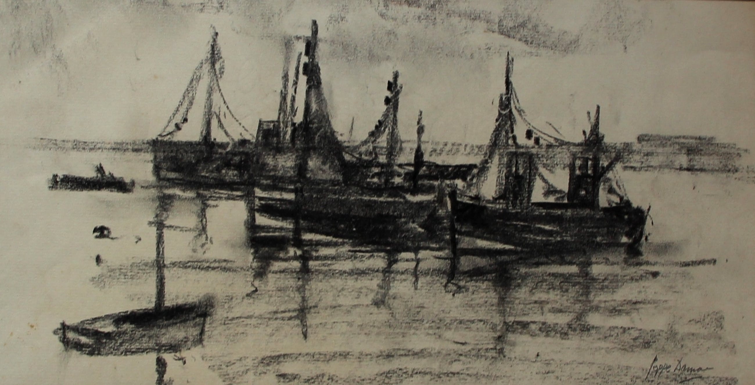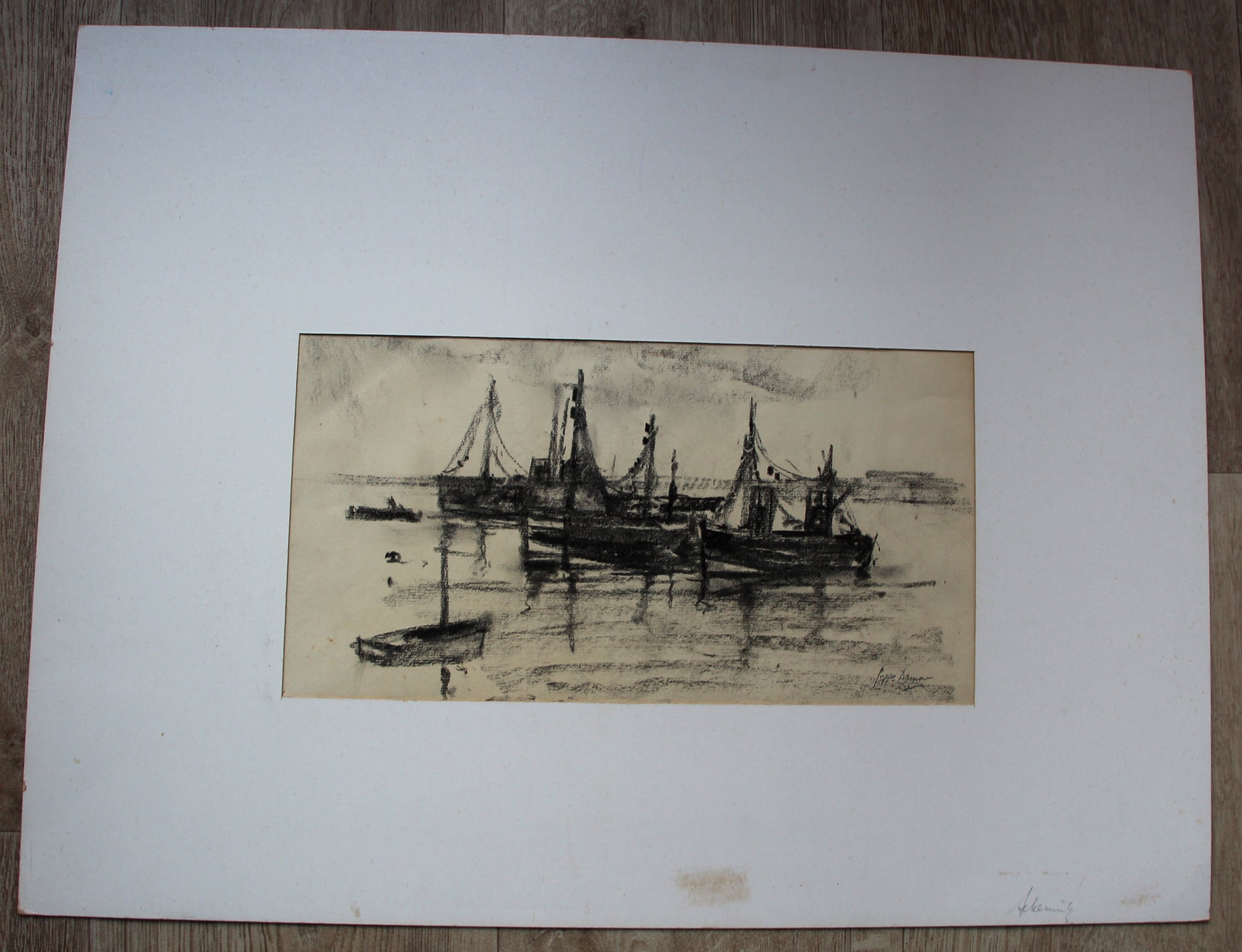 Houtskool tekening van Poppe Damave. Titel: Hydra. Afmetingen incl passepartout: H45 x b59.5 cm. Afmetingen voorstelling: H18 x B34. Het werk is rechtsonder, met potlood, gesigneerd door de kunstenaar. De authenticiteit van dit werk wordt volledig gegarandeerd. Een certificaat van echtheid kan, op aanvraag, worden gemaild.