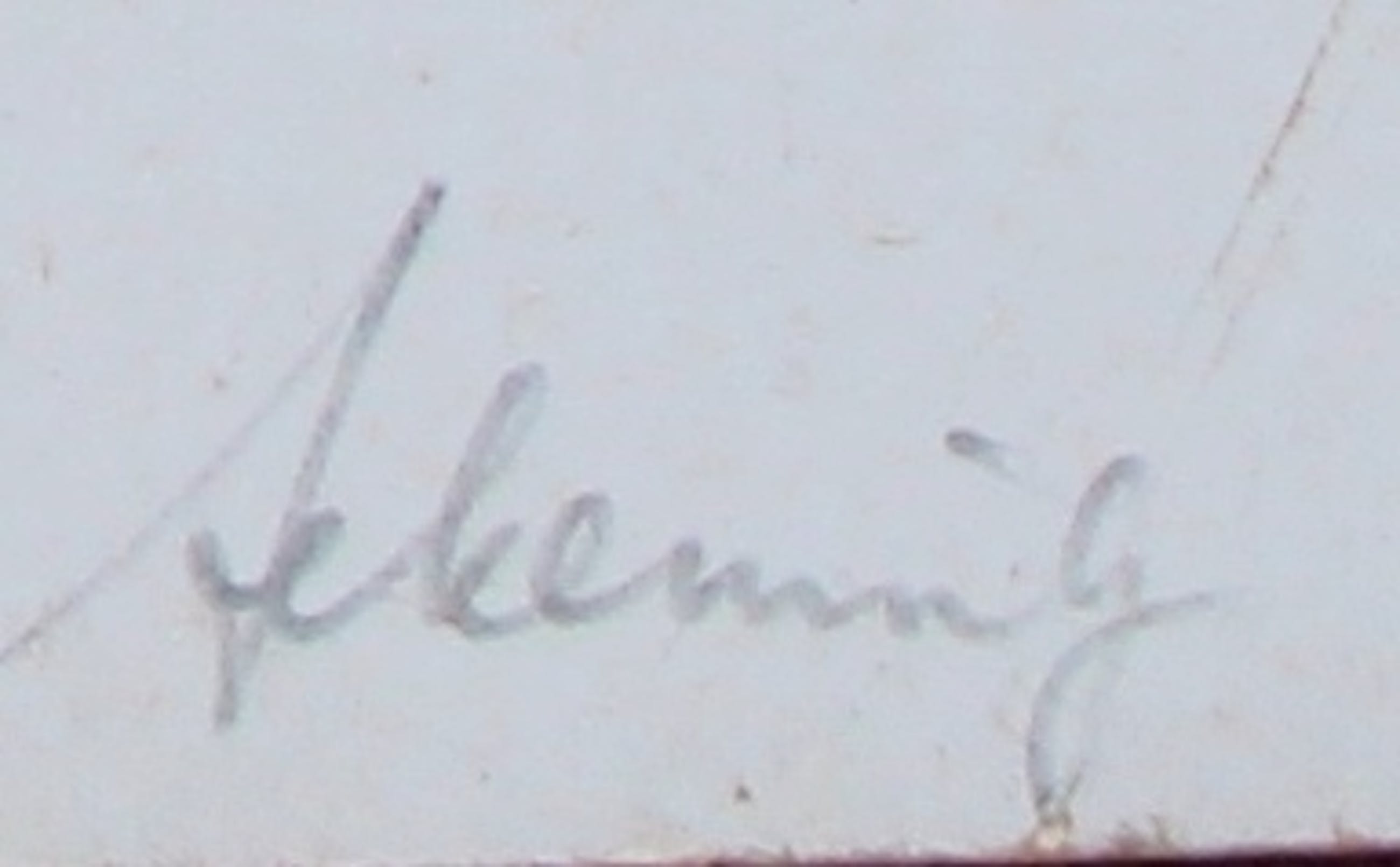 Het werk is in goede staat. Er zitten wel wat vlekjes op het passepartout.