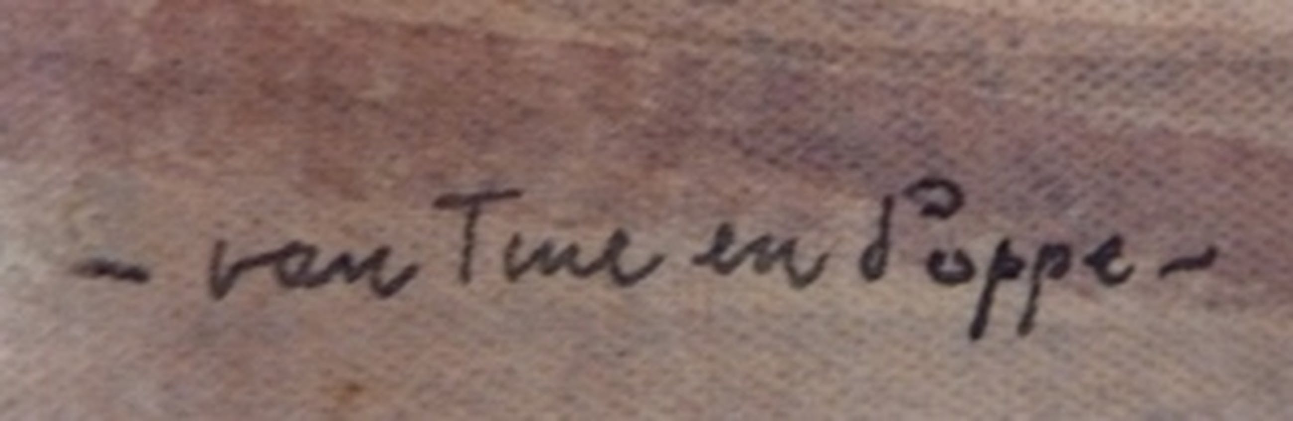 Gesigneerd: Ja, rechtsonder Poppe Damave IJmuiden. Linksonder in inkt: "Van Tine en Poppe"