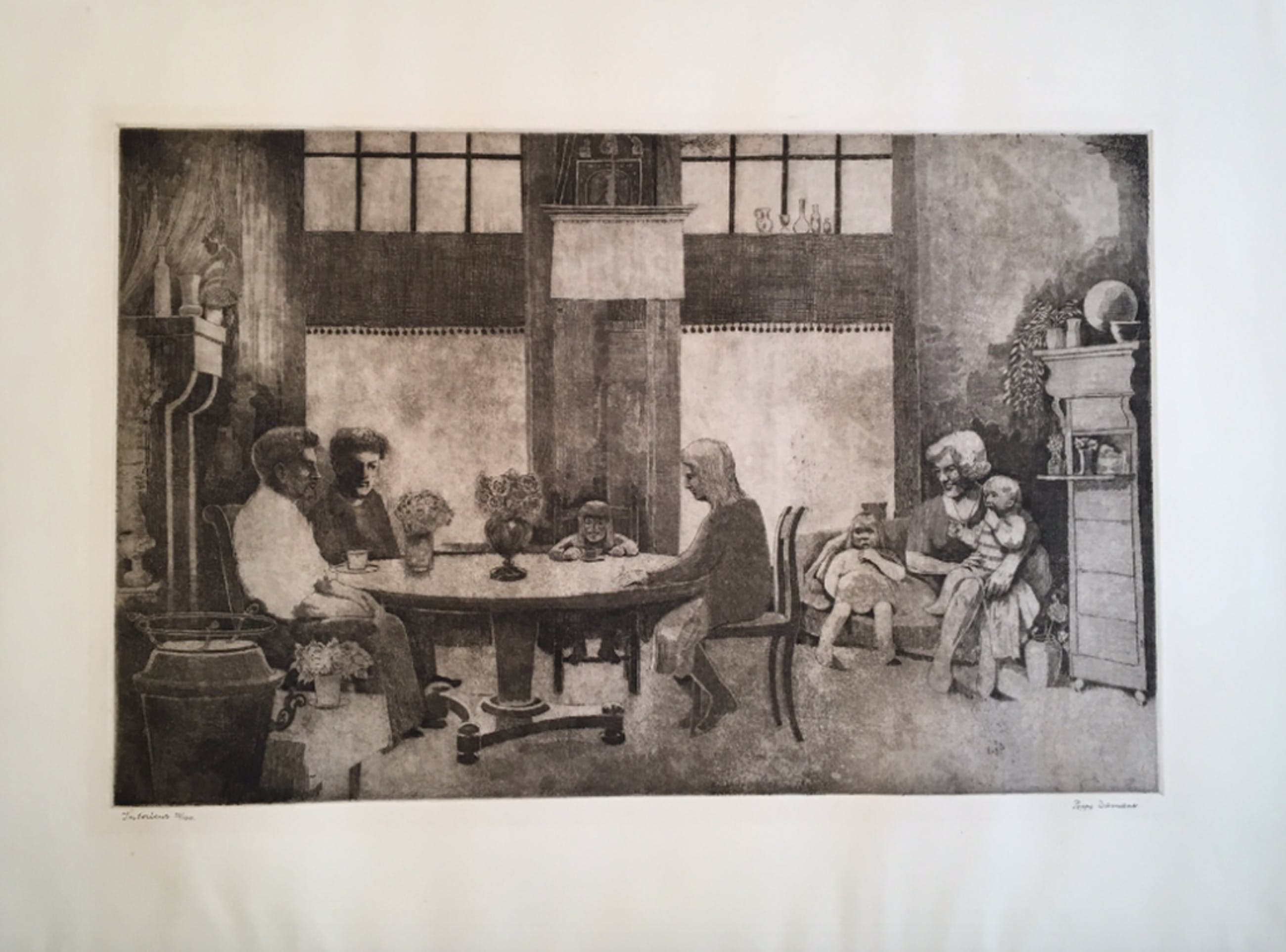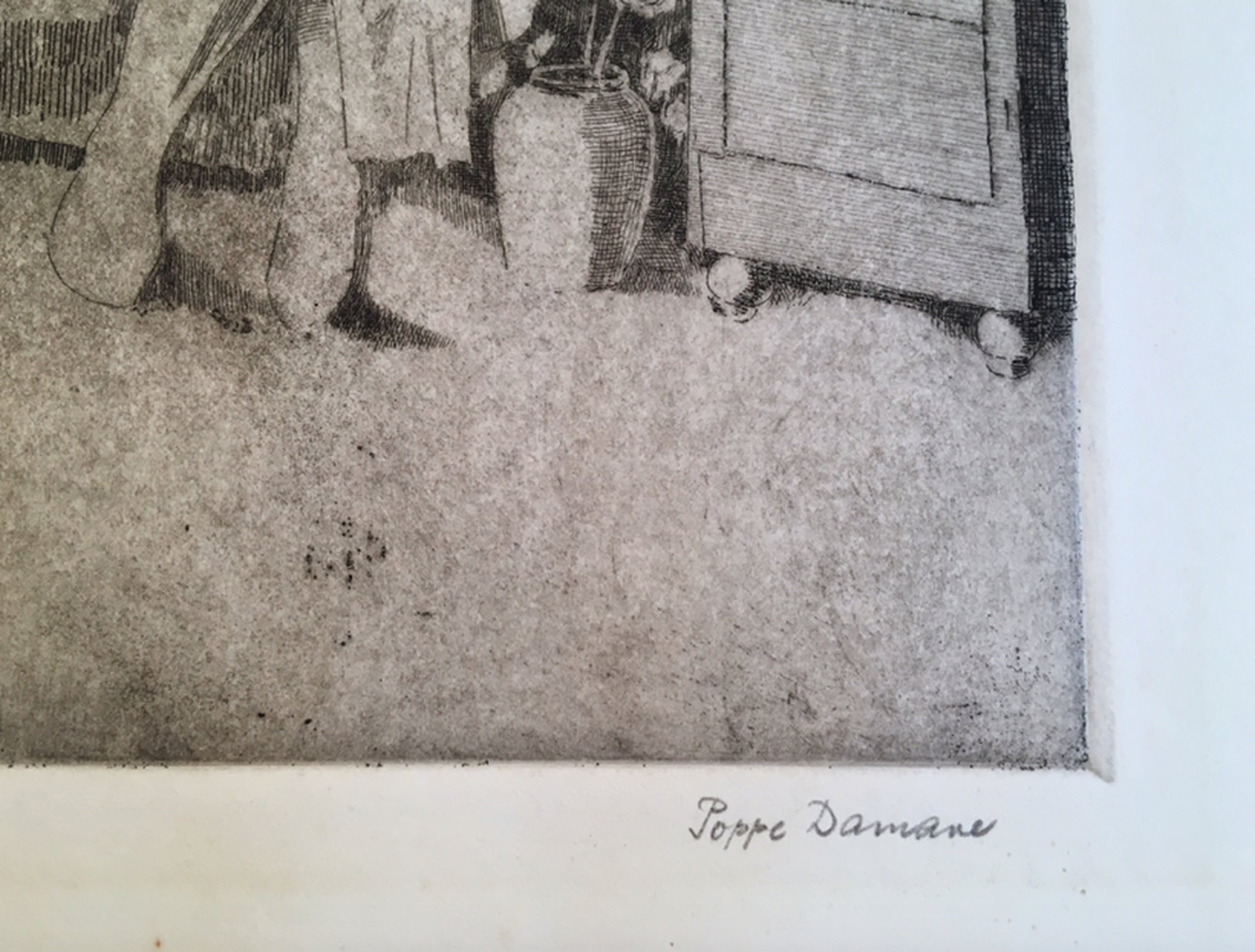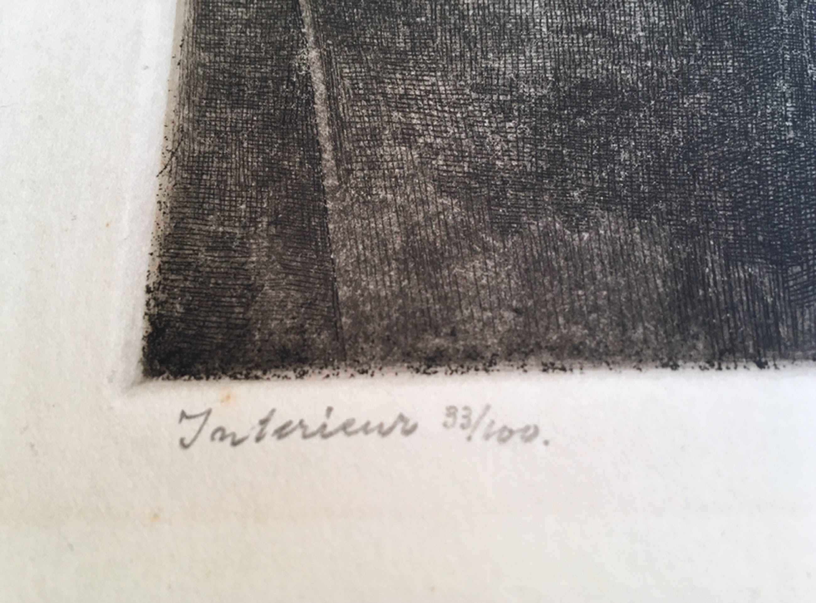 Poppe Damave, titel Interieur, oplage 33/100, het werk ziet er nog goed uit heel klein randje vergeling waar het passe partout heeft gezeten.