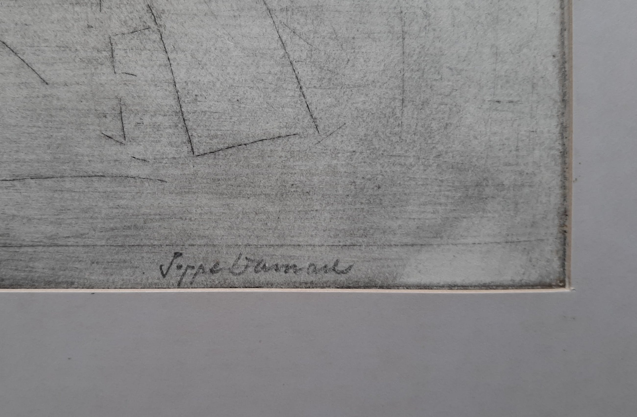 Poppe Damave en Frans Verpoorten worden gerekend tot de Haarlemse vijftigers. Op deze ets heeft Poppe Damave zijn collega Frans Verpoorten 1924-1987 afgebeeld in zijn atelier.