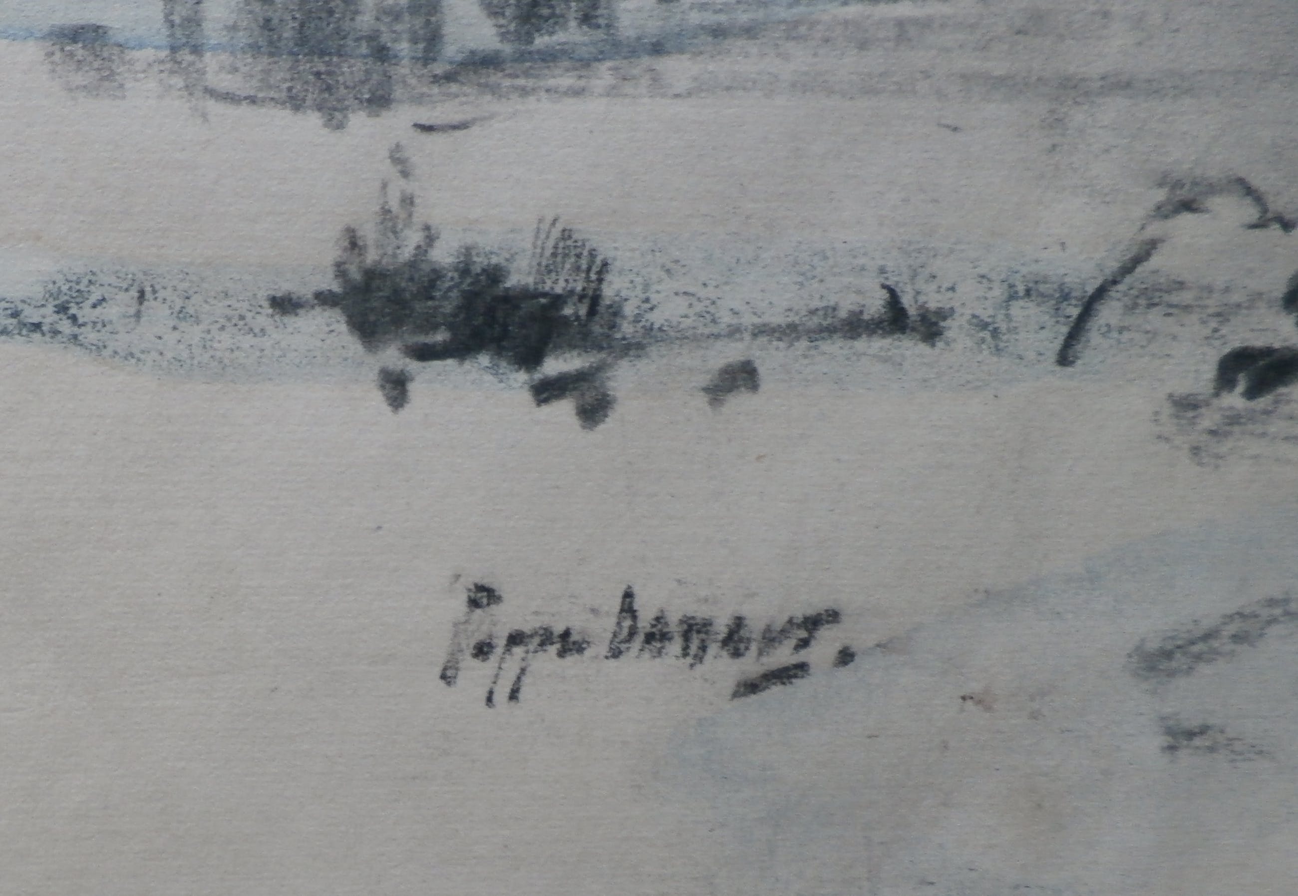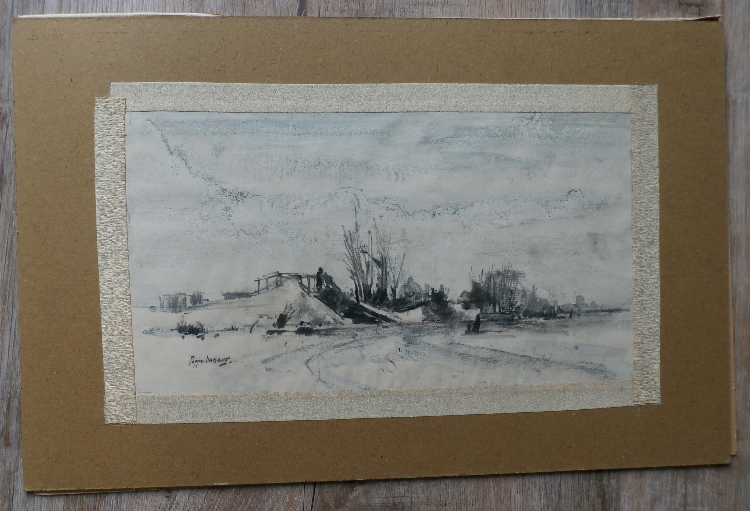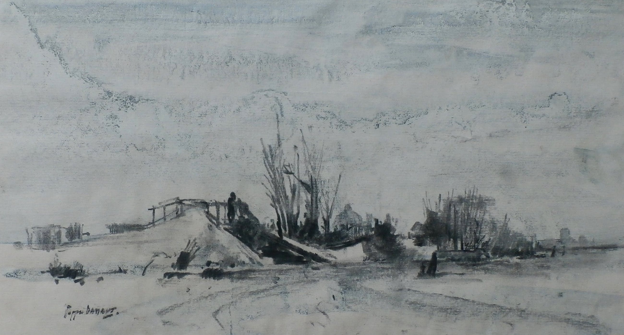 Houtskool tekening van Poppe Damave. "Voor Godfried". Afmetingen incl passepartout: H32.5 x b50cm. Afmetingen voorstelling: H19.5 x b35cm. Het werk is linksonder, met potlood, gesigneerd door de kunstenaar. De authenticiteit van dit werk wordt volledig gegarandeerd. Een certificaat van echtheid kan, op aanvraag, worden gemaild.