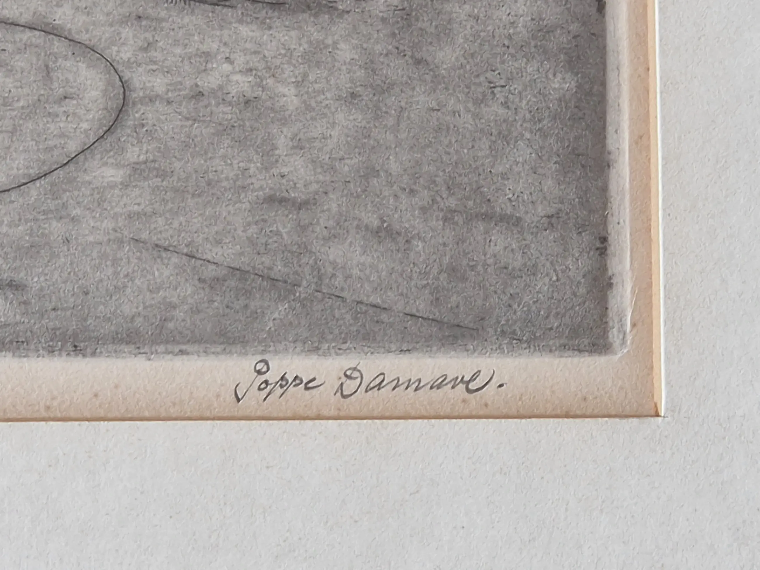 Poppe Damave - mooie jaren 50 Ets "de maaltijd" - in originele lijst - potlood-gesigneerd