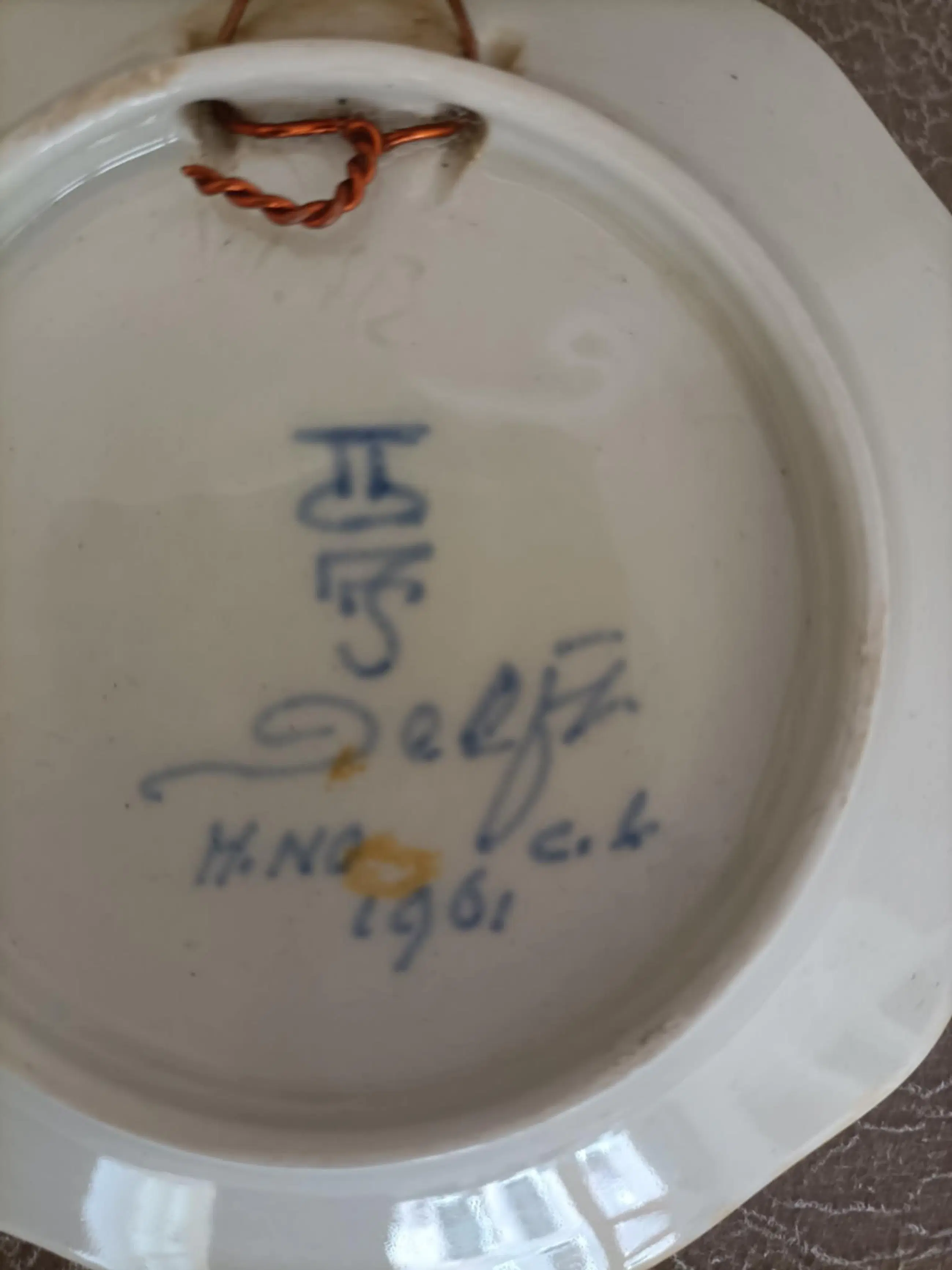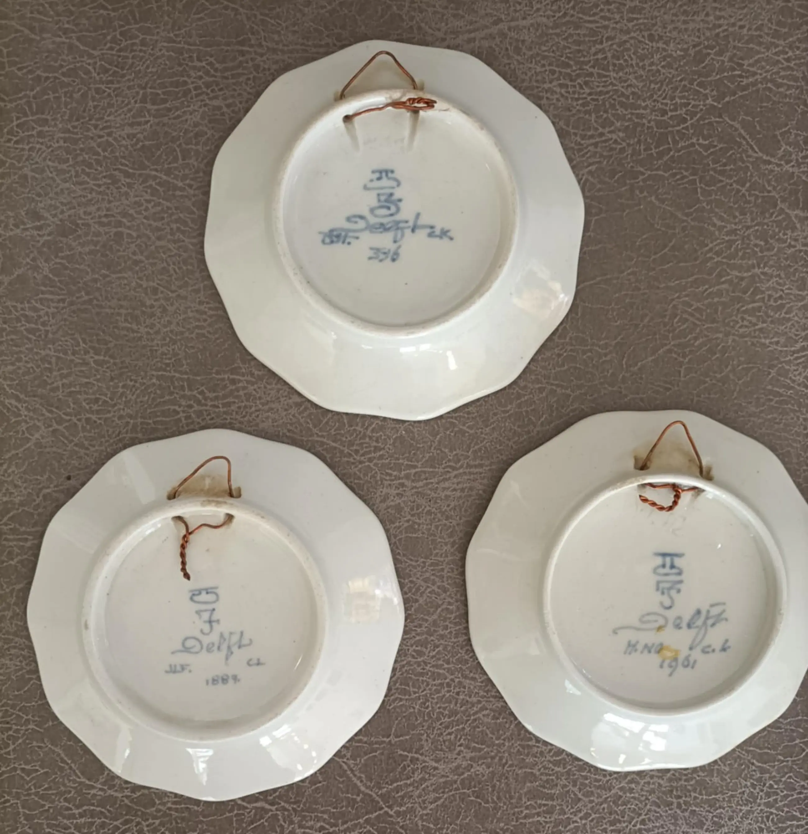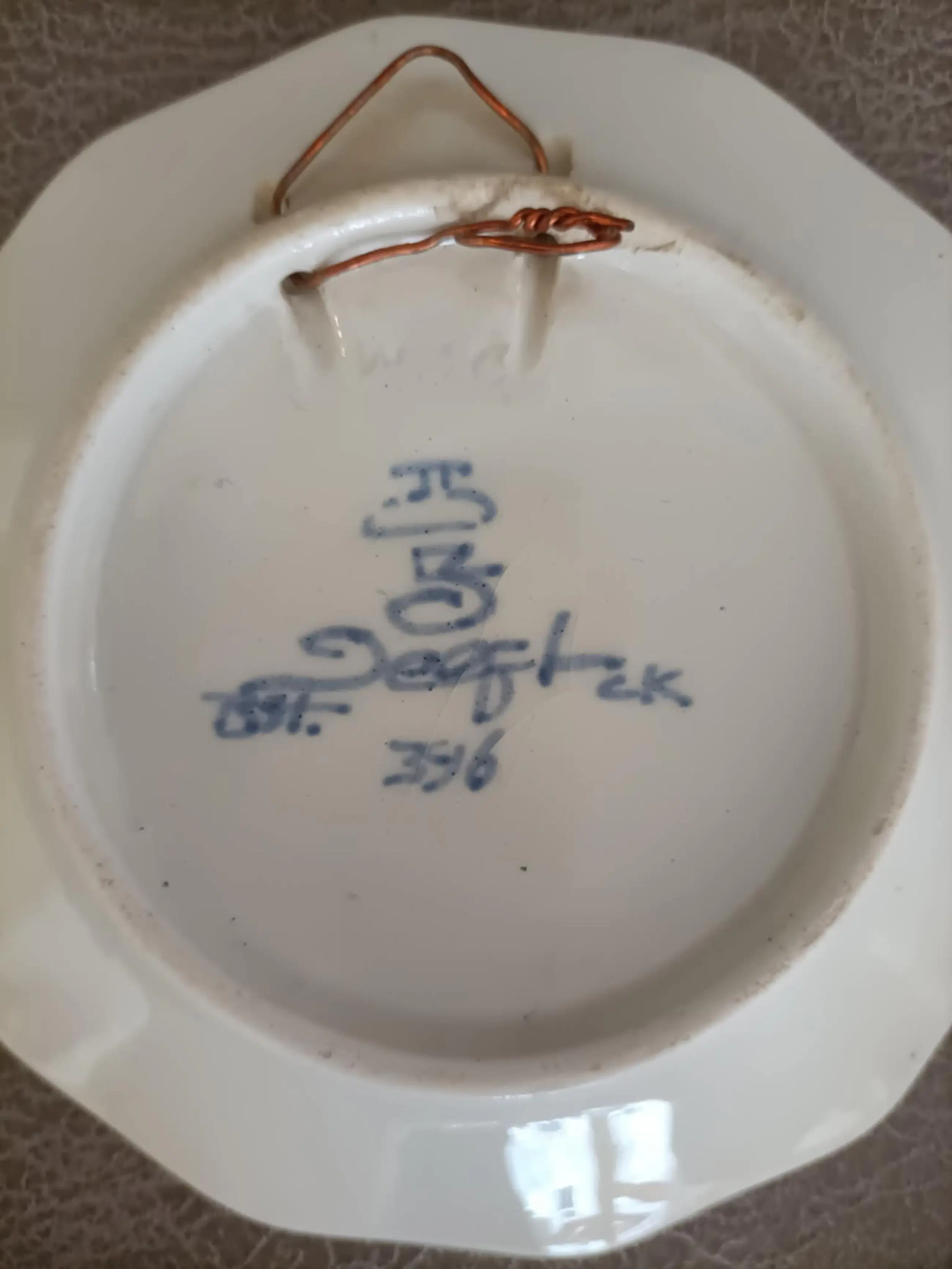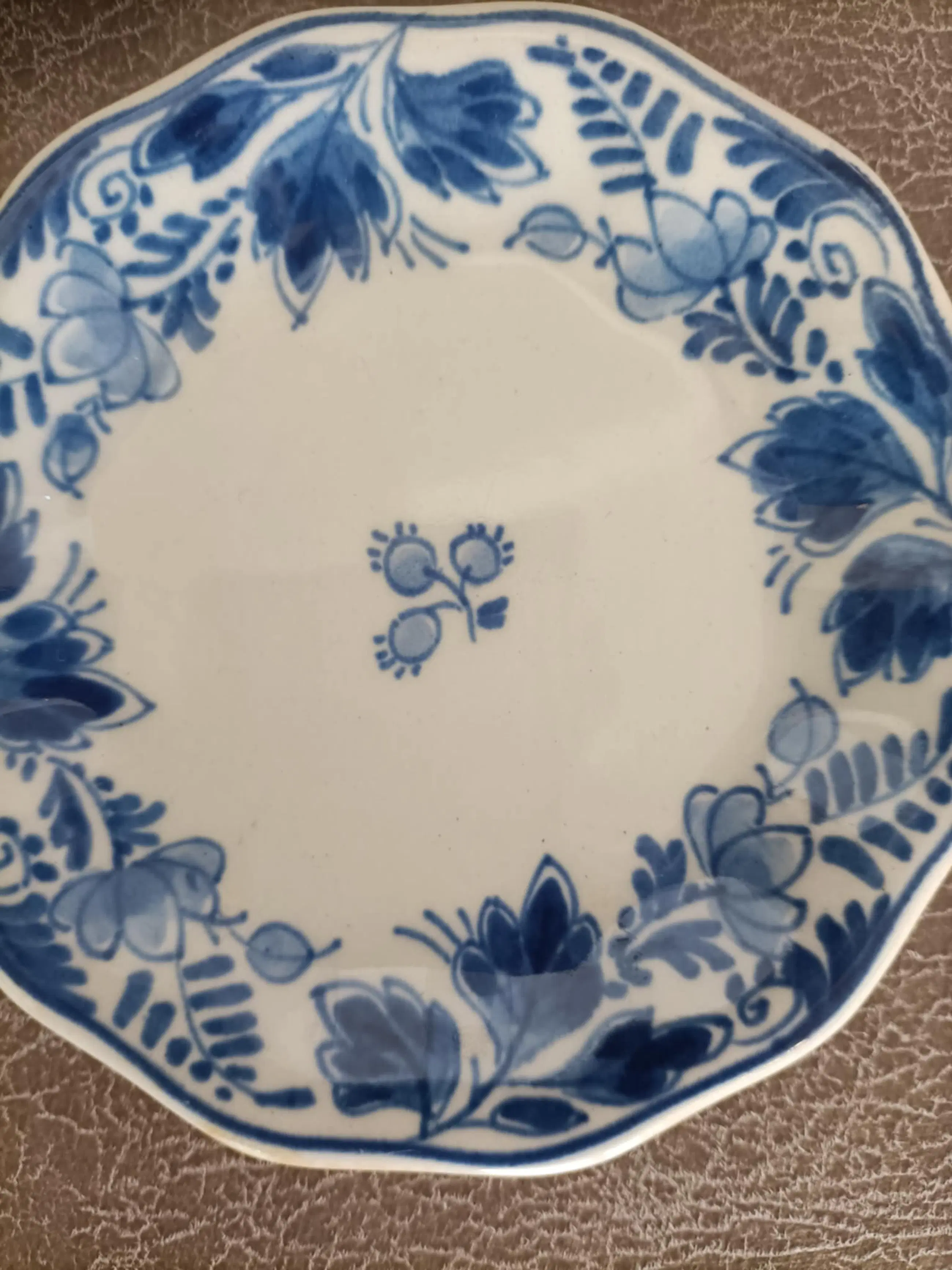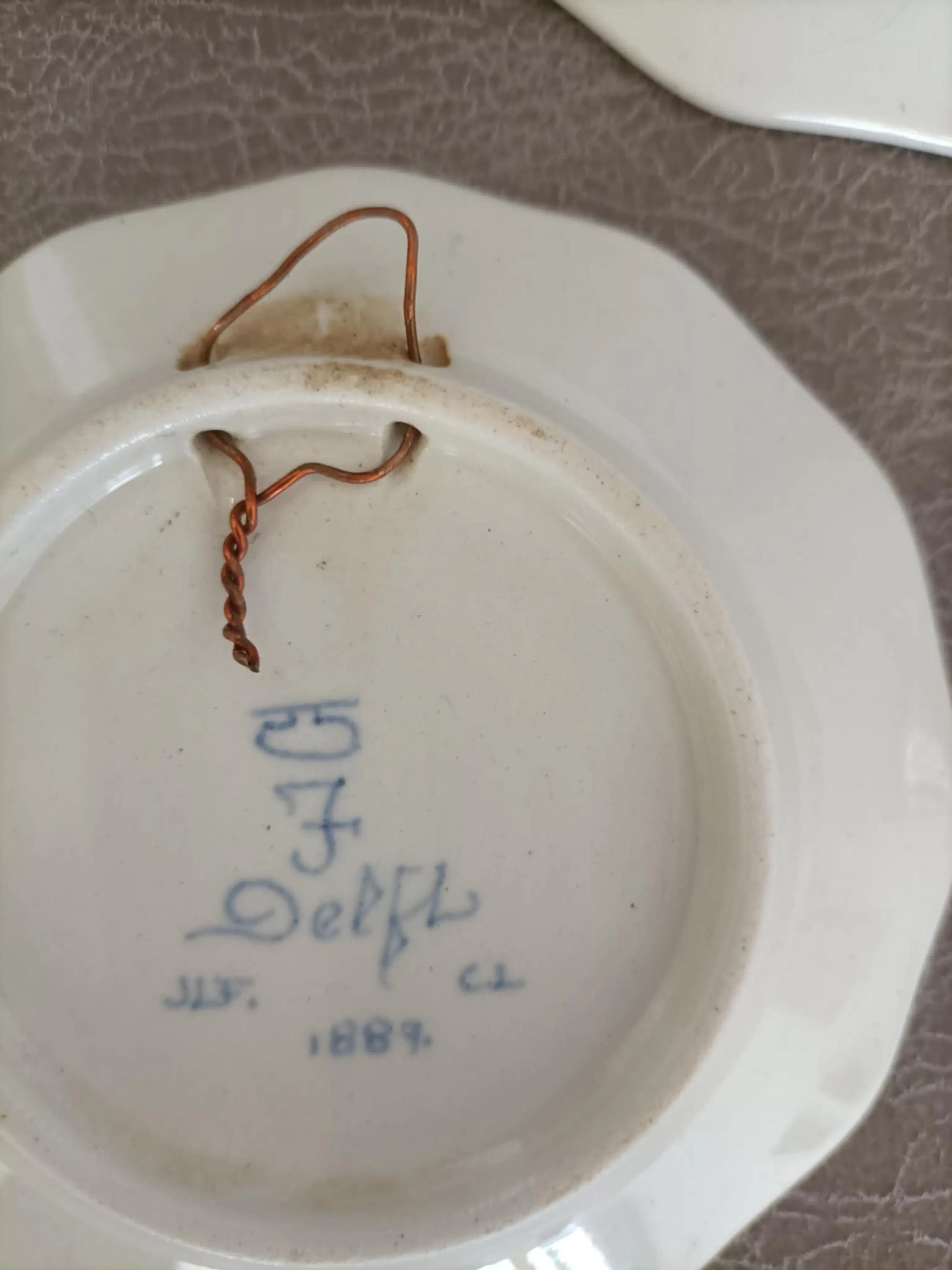 Op de achterzijde van deze borden is het merkteken van de Porceleyne Fles Delft met jaartallen 1887 en 1961. Het komt uit de erfenis van mijn oma/moeder, die beide in Delft geboren waren.
