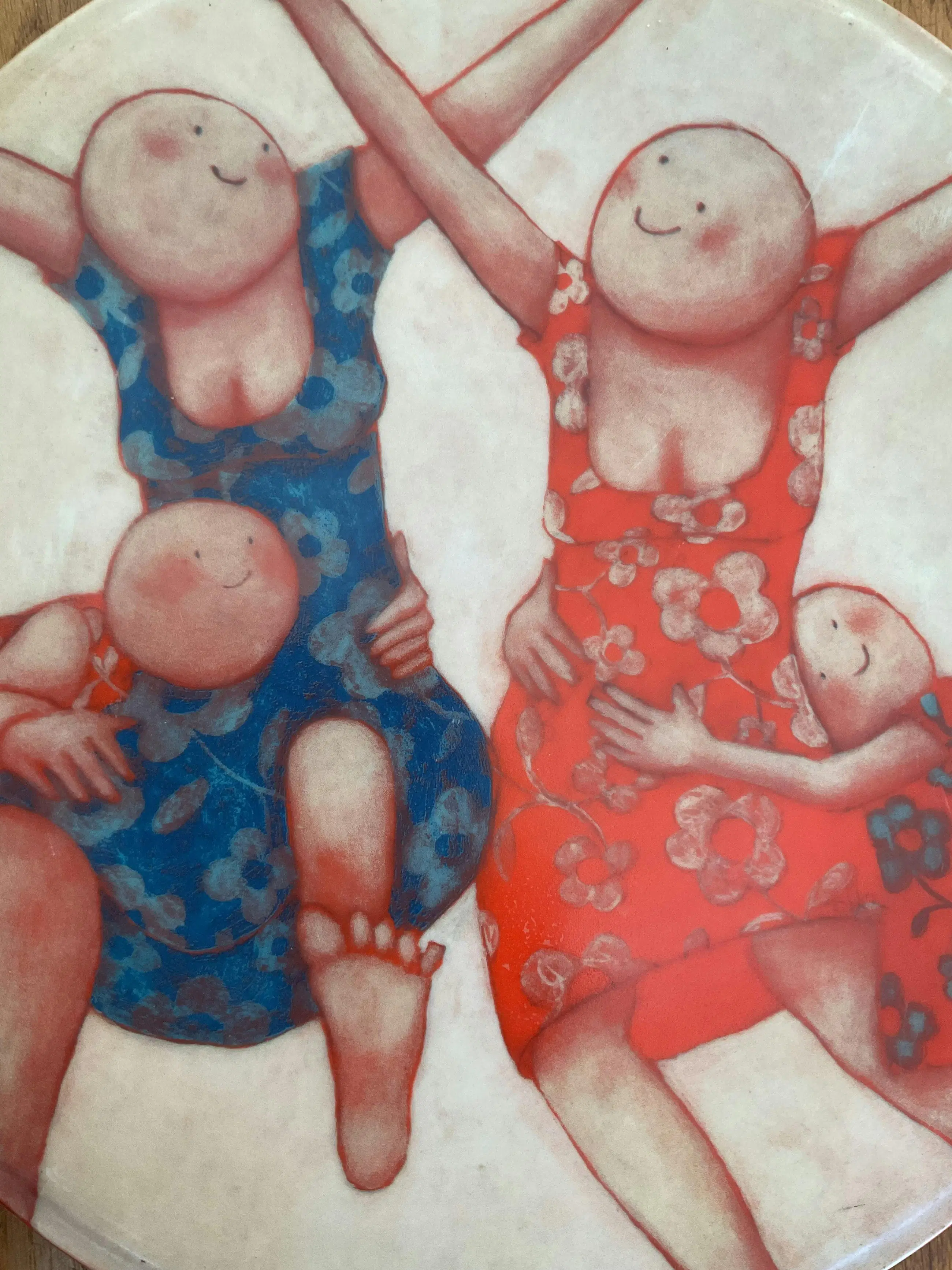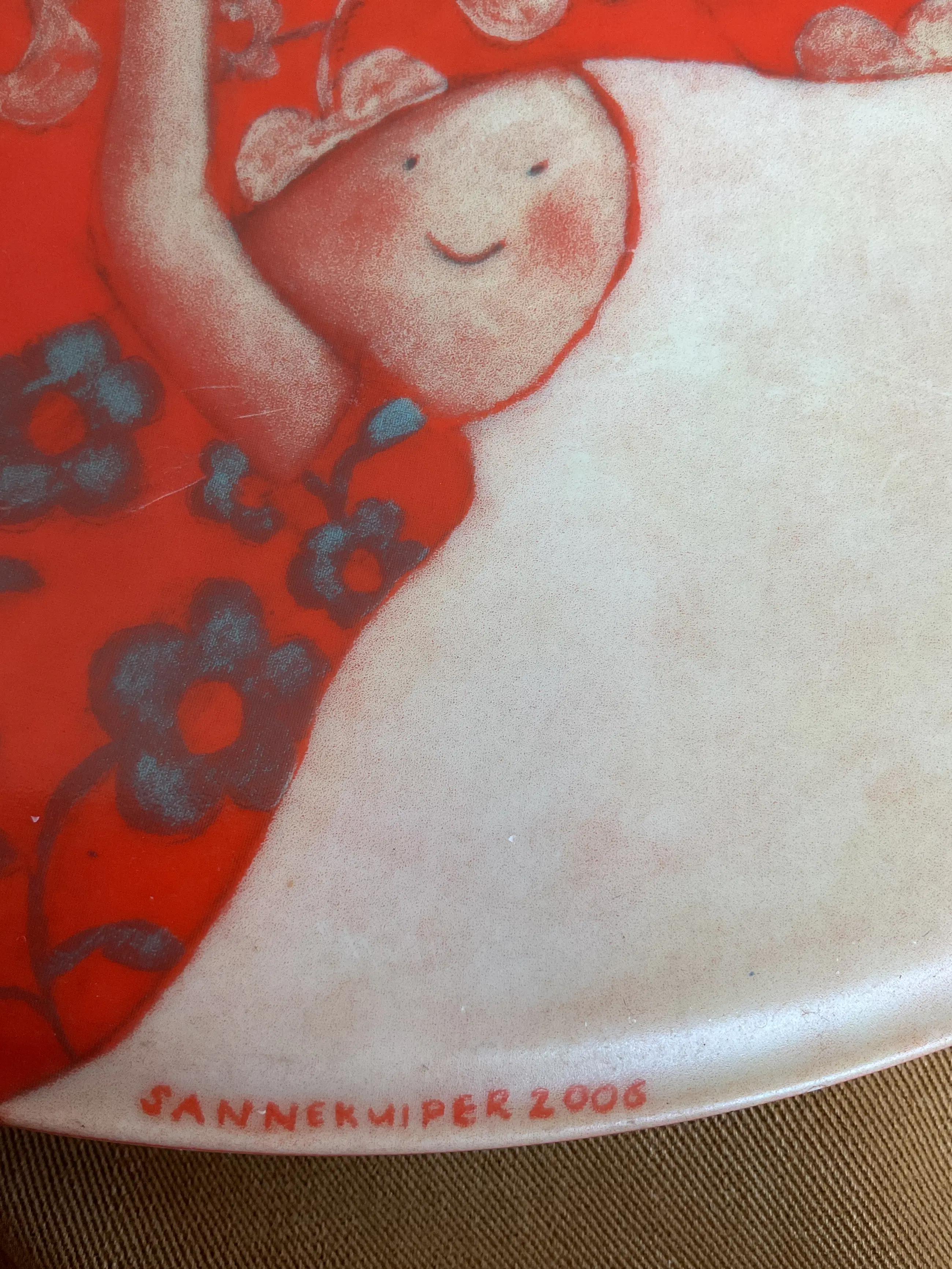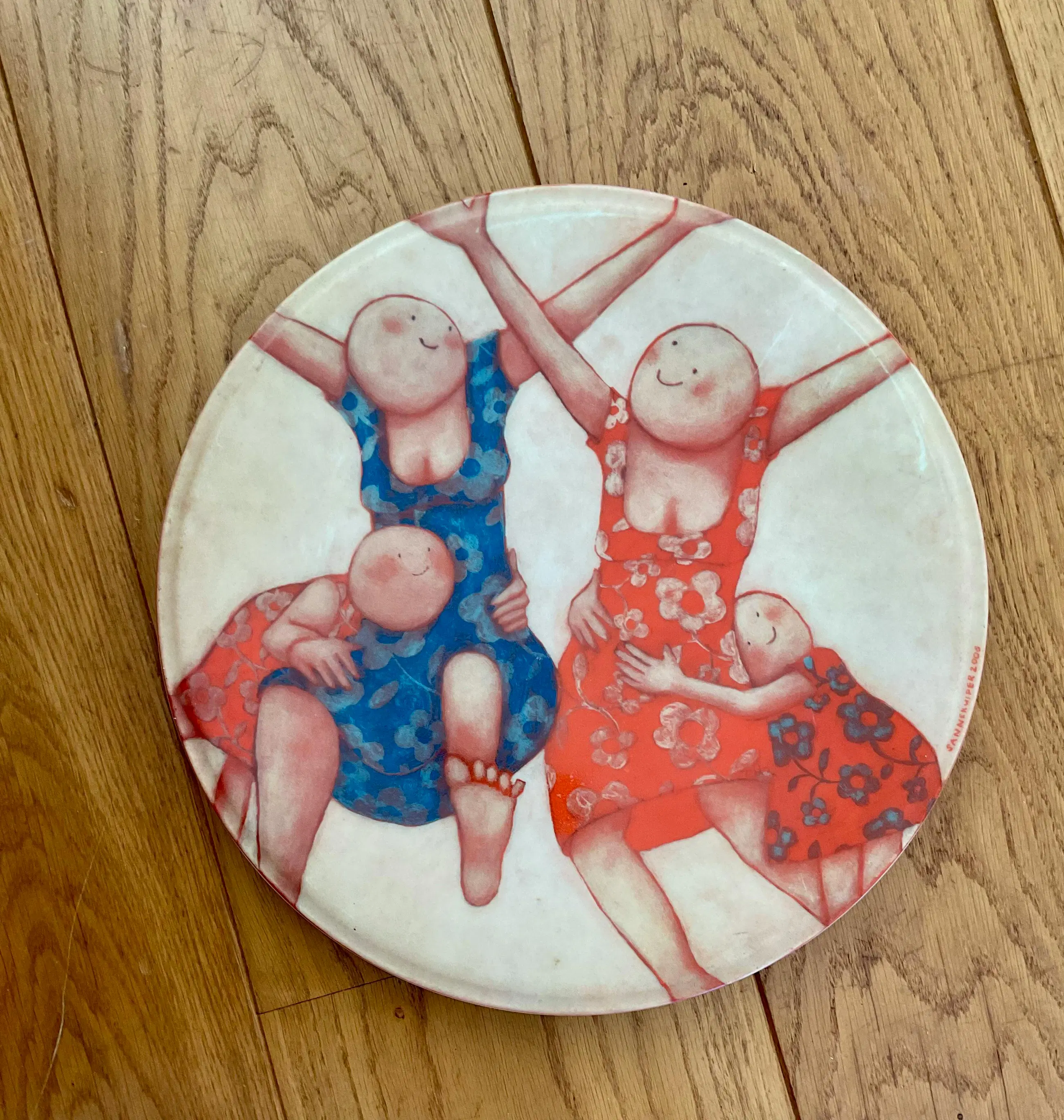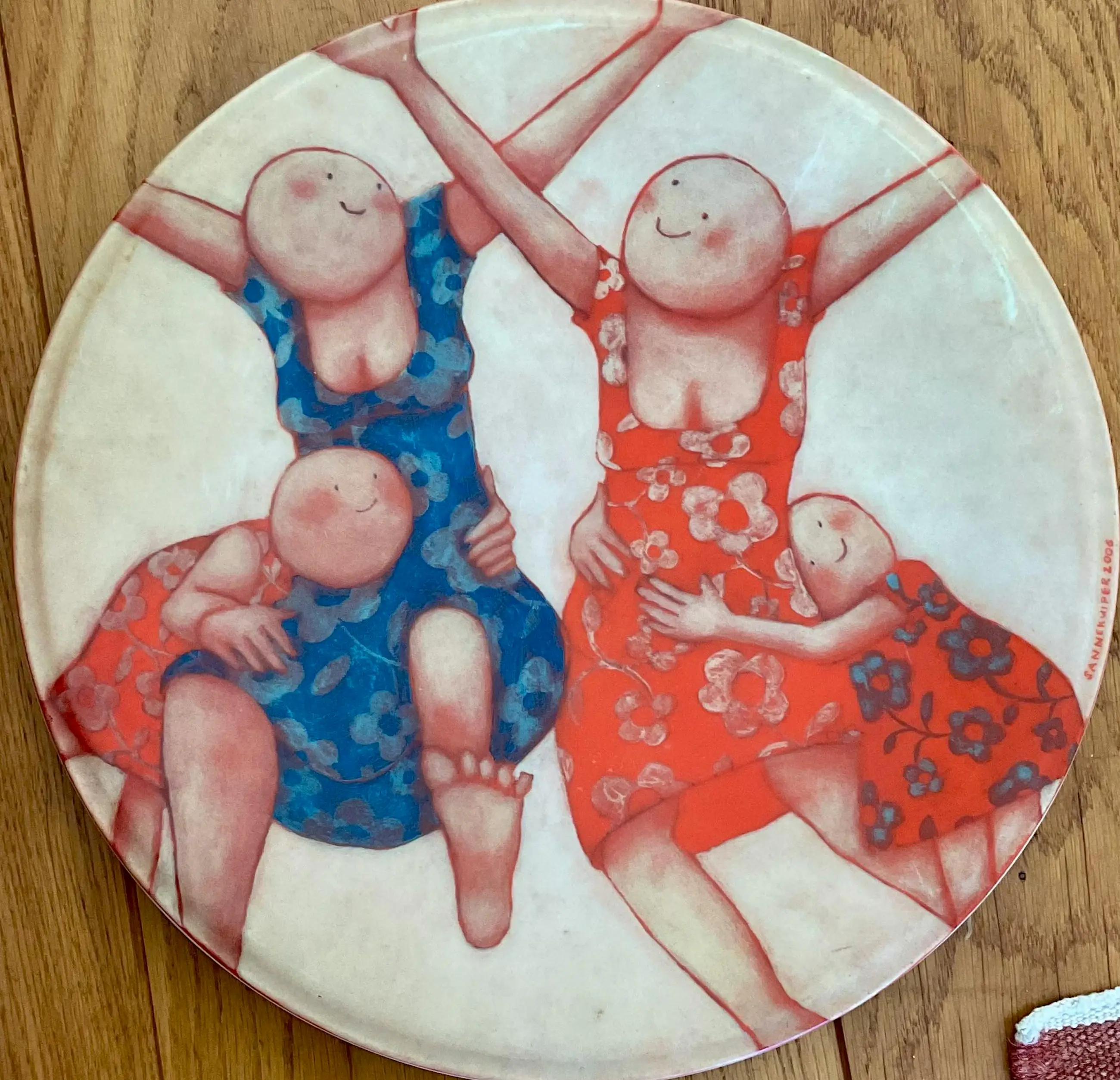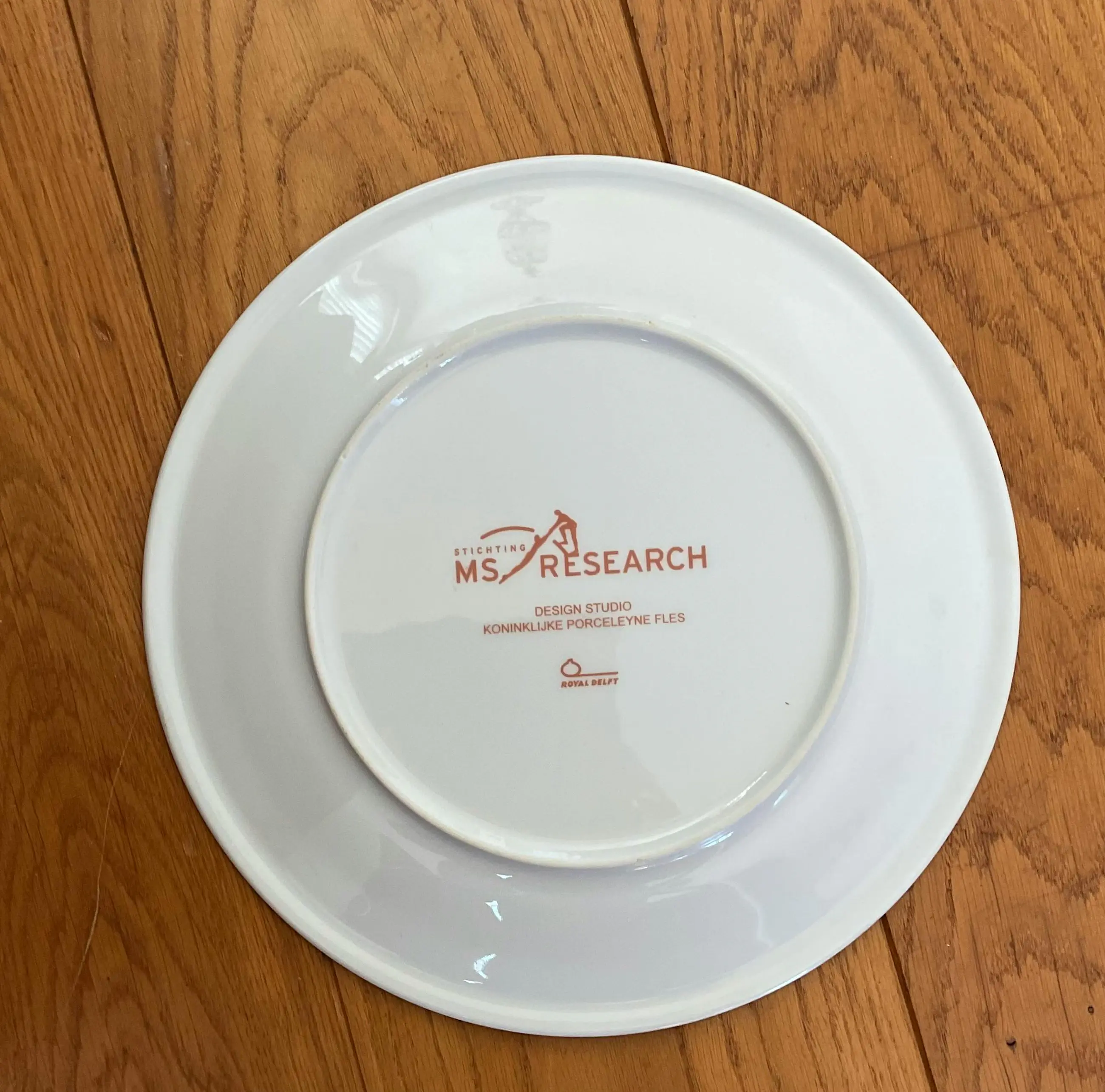 Vrolijk, mooi zwaar bord van Sanne Kuiper de studio de koninklijke Porceleyne Fles Vervaardigd in opdracht van MS Research Jaar 2006 Porselijn Doorsnee 31 cm Conditie prima Minimale oneffenheden Wordt aangetekend verzonden