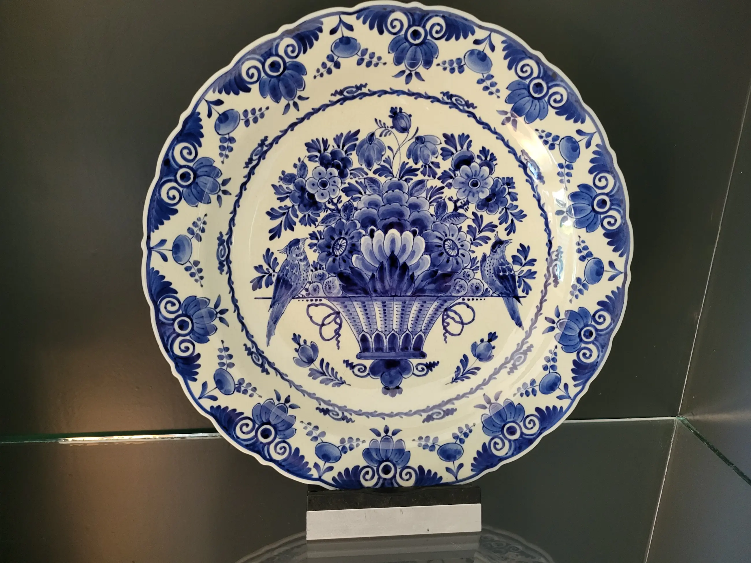 Porceleyne Fles - Dlefts blauw wandbord met bloemenmand