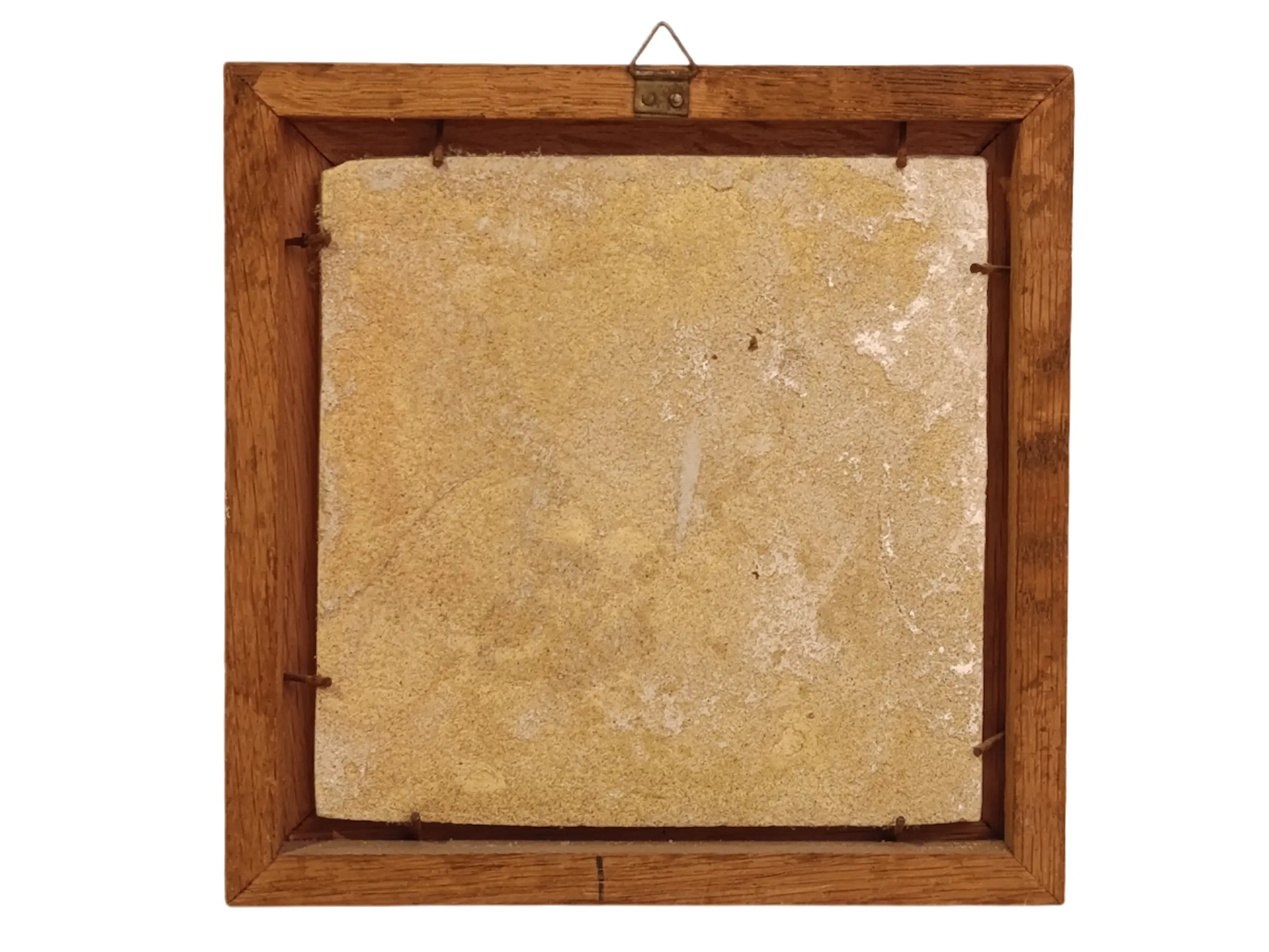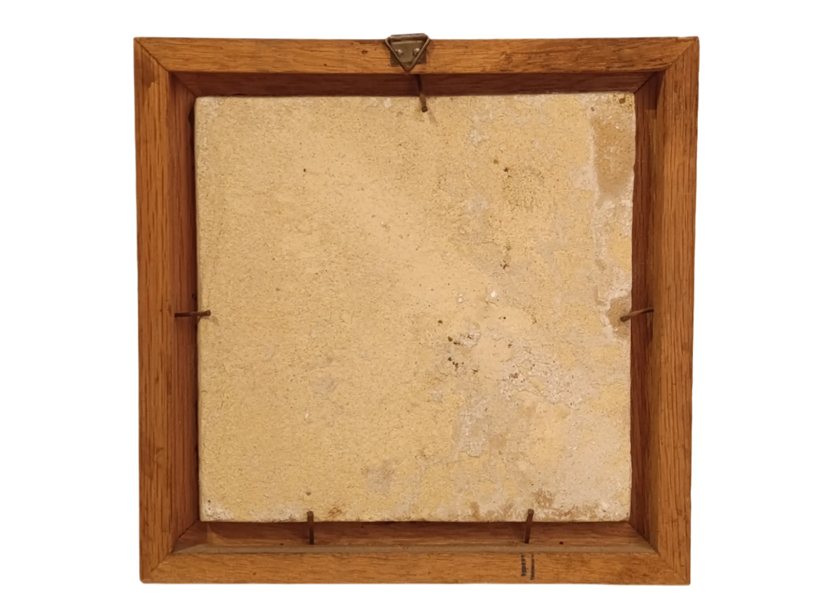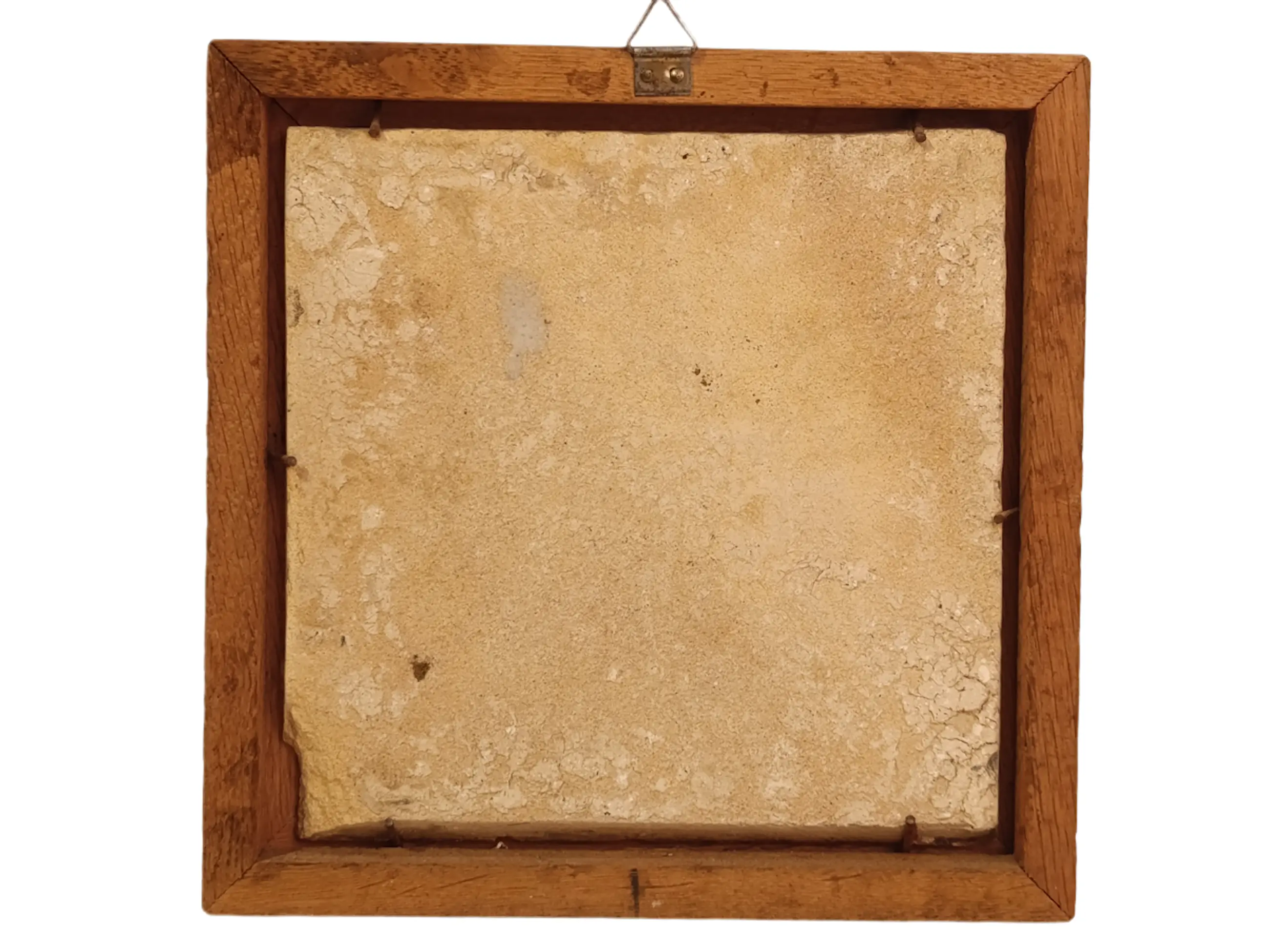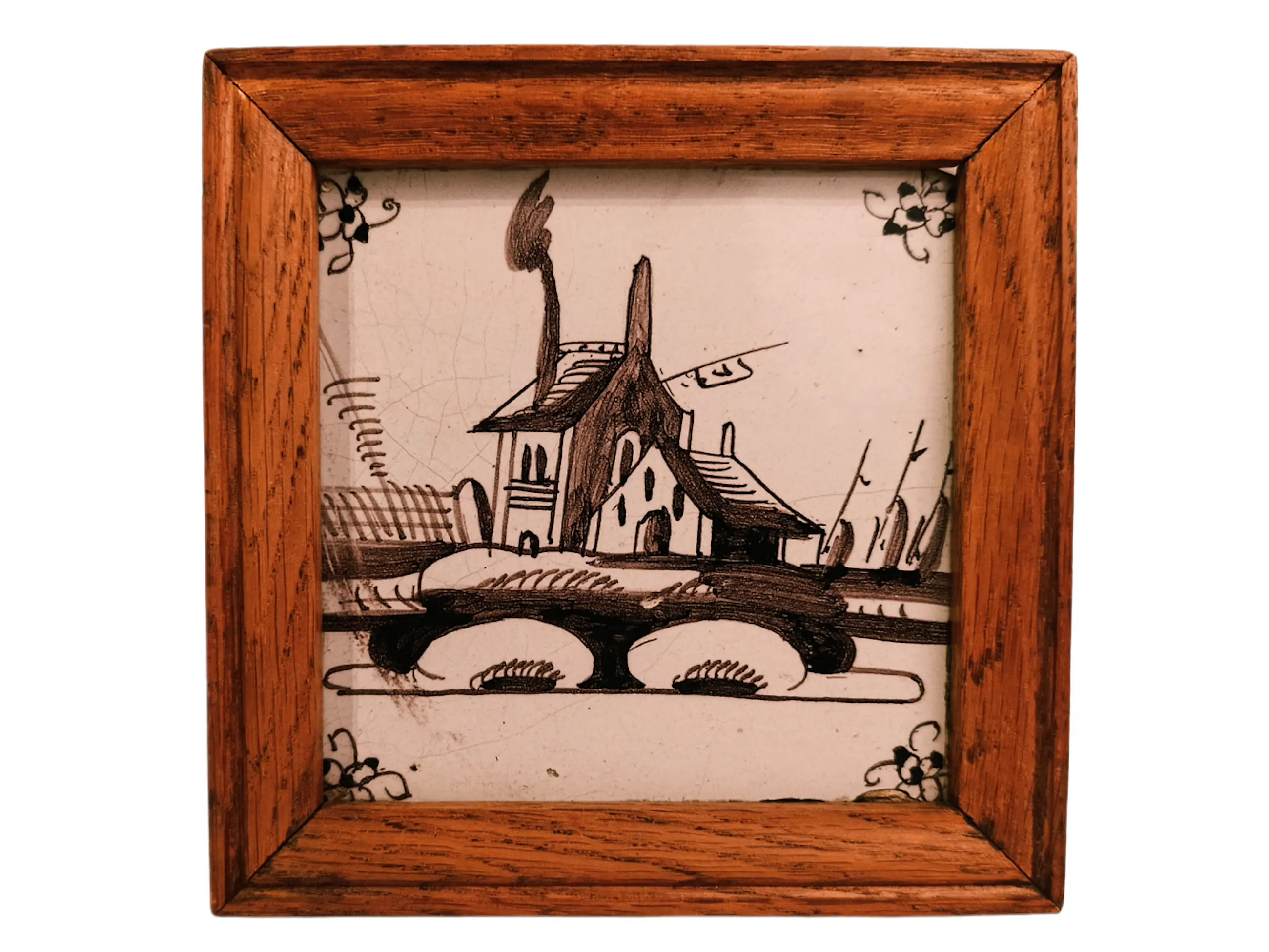 DELFT Antieke geglazuurde aardewerken tegels uit Delft. Mangaanversiering. In zeer goede staat. Natuurlijk hebben de eeuwen hun sporen achtergelaten. Geen restauratie. De glans is behouden gebleven. Prachtig ingelijst en klaar om op te hangen. Afmetingen zonder lijst: 13/13/1 cm