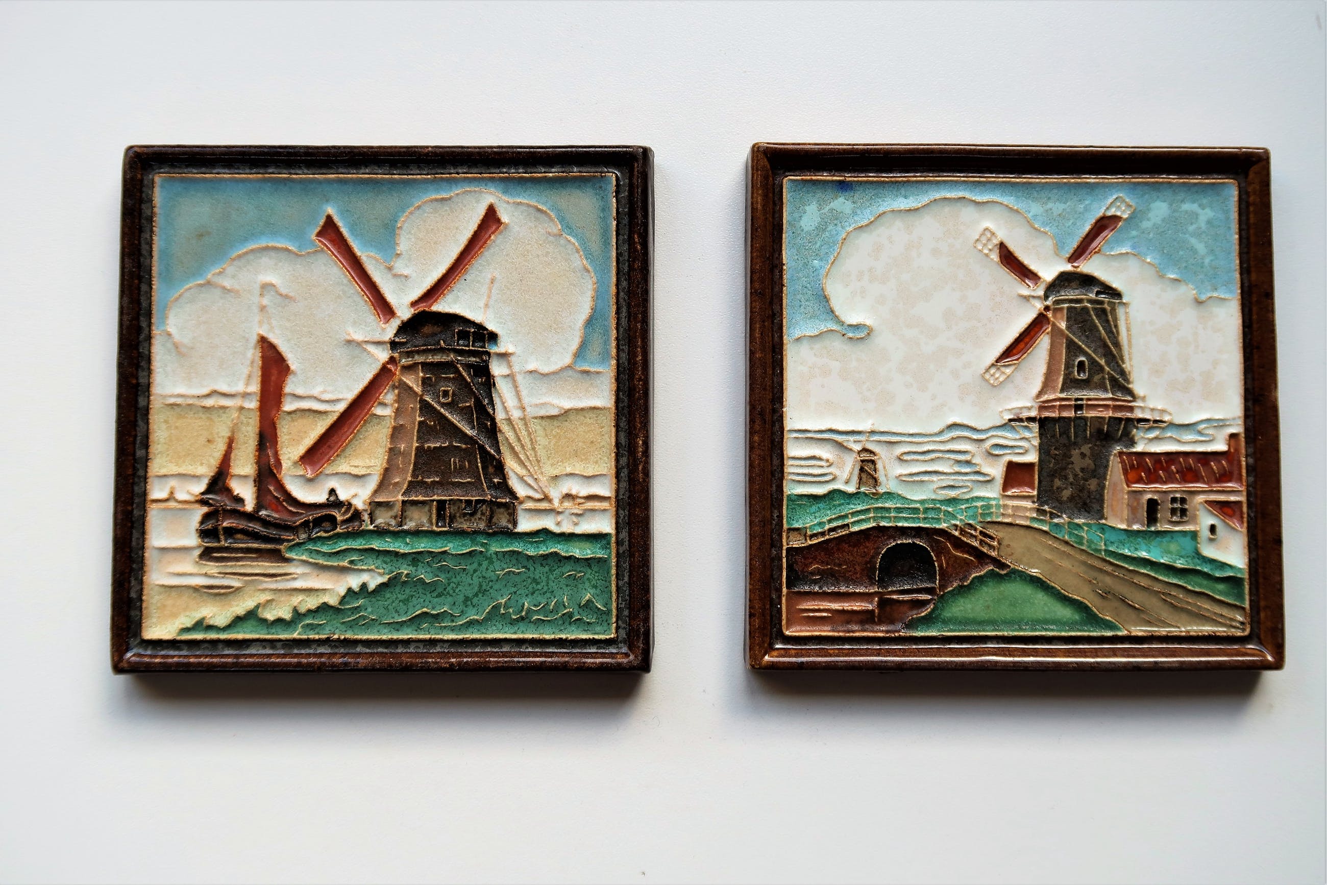 Twee zéér mooie Cloissoné tegels- Molen - Windmills- Serie