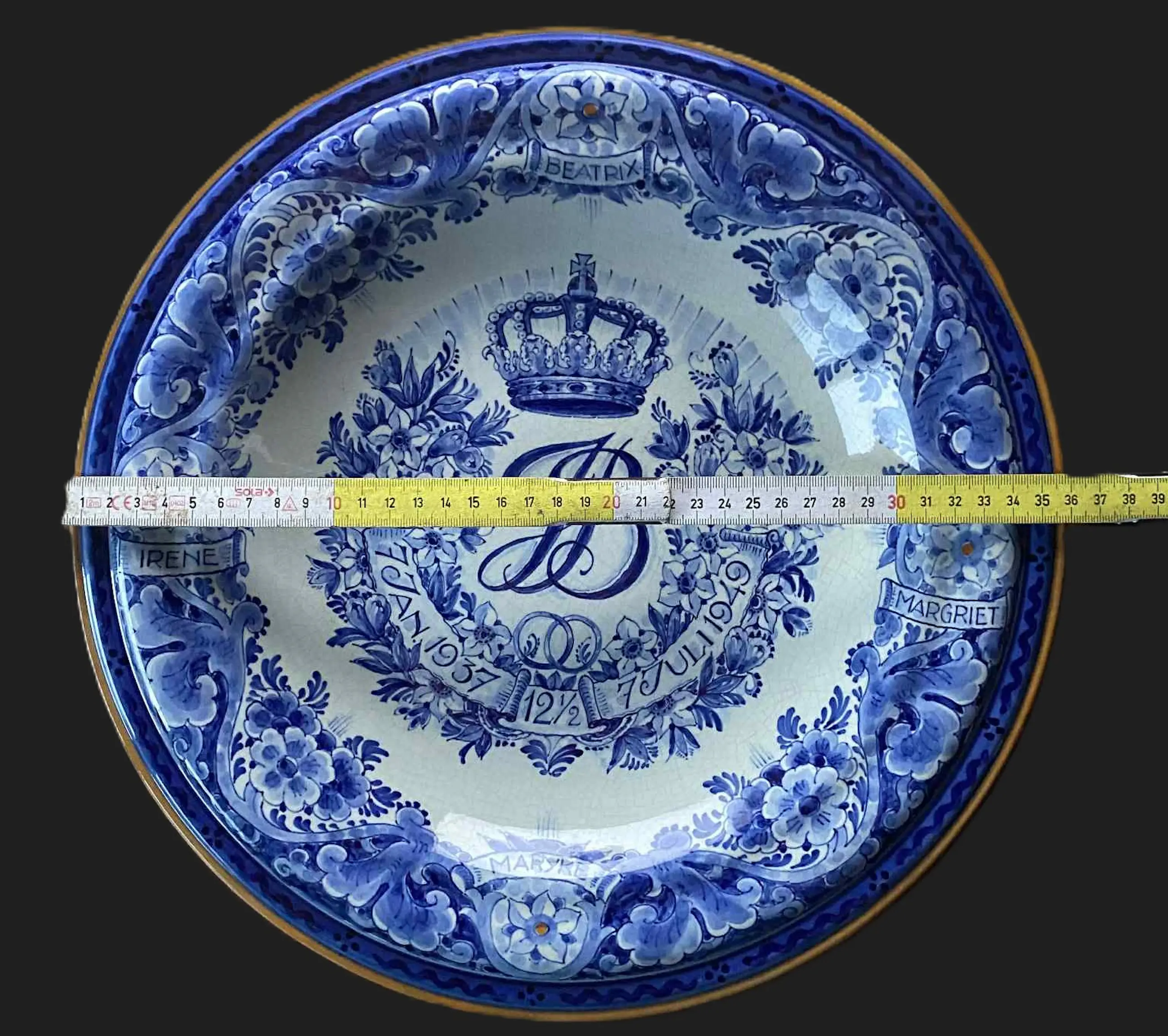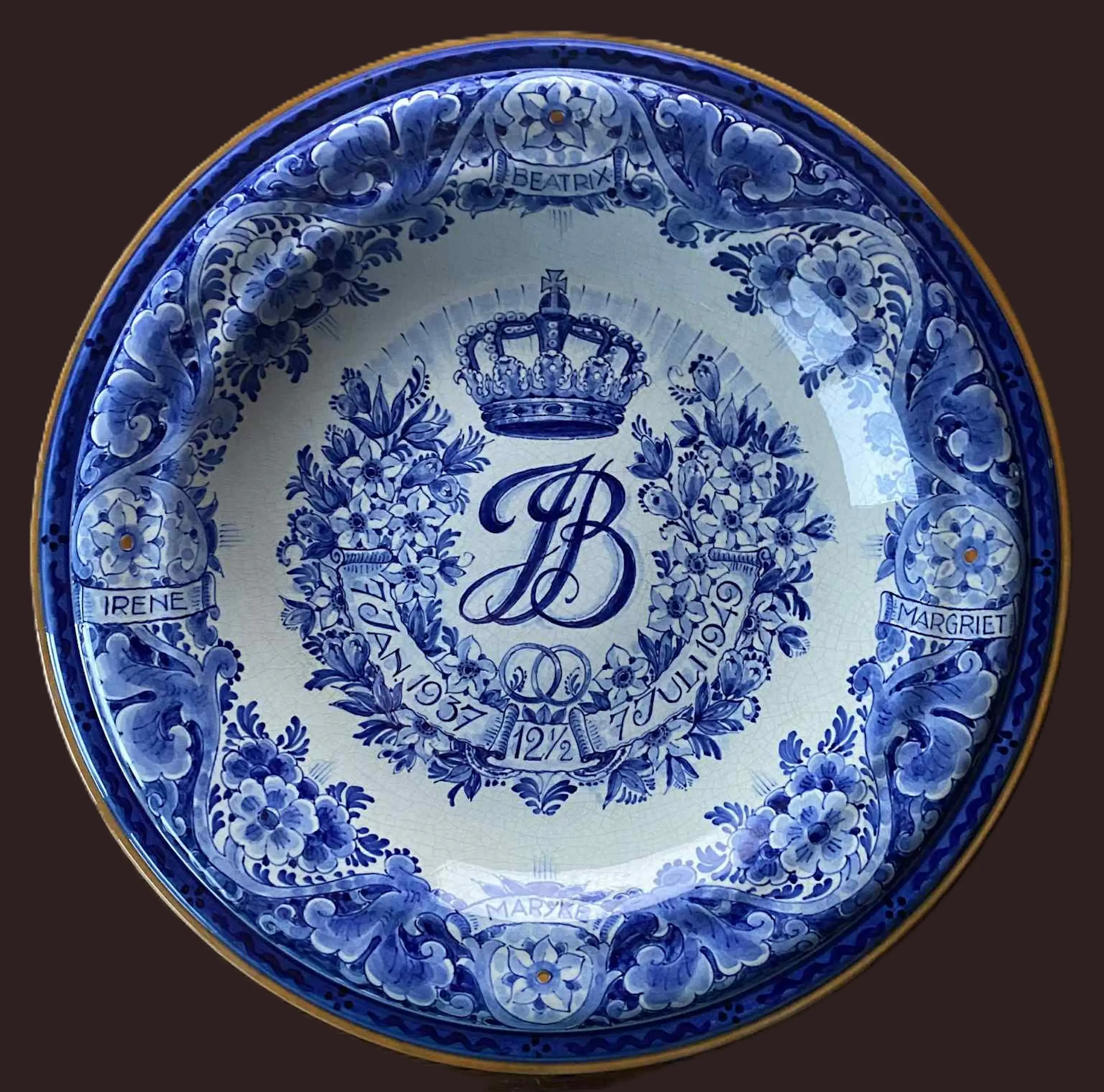 Porceleyne Fles - herdenkingsschotel 12,5 jaar huwelijk Bernhard en Juliana
